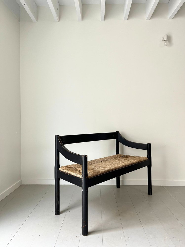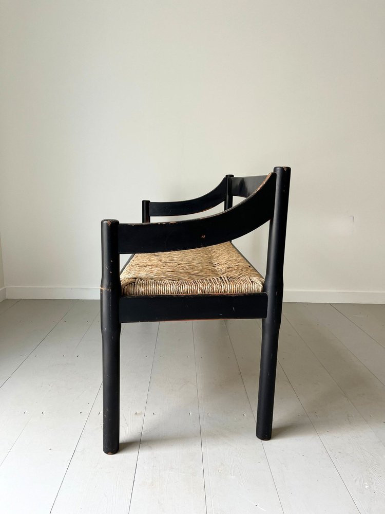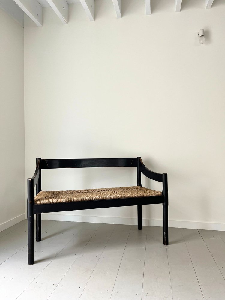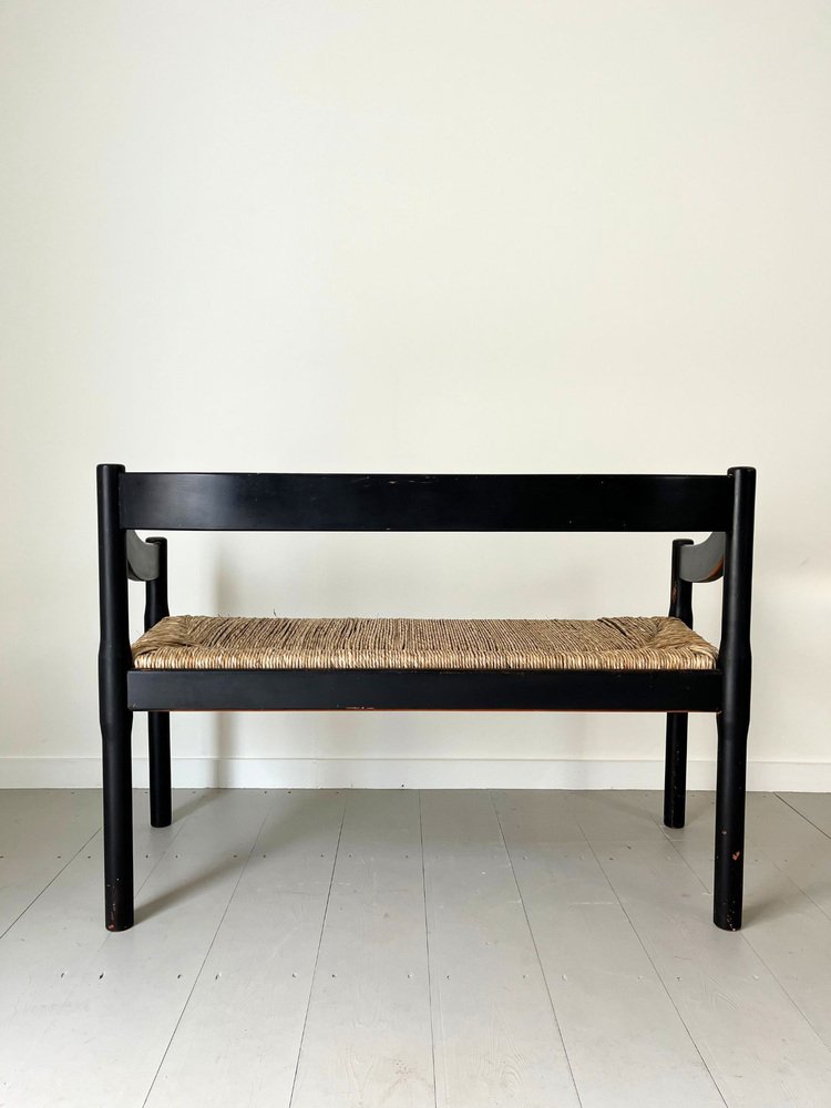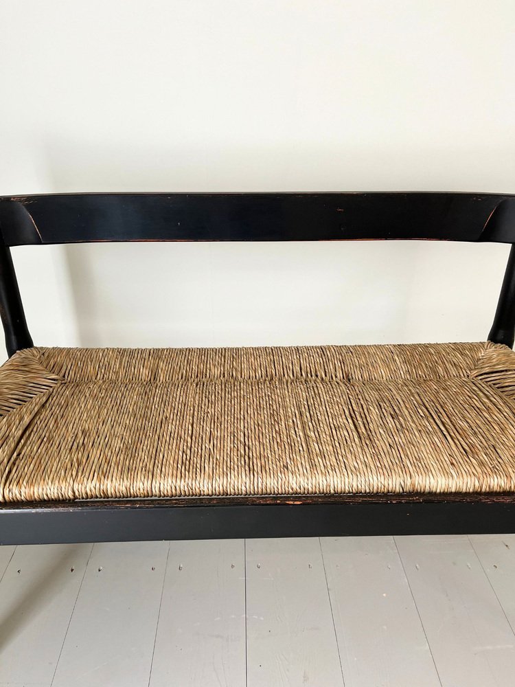 Mid-Century Italian Carimate Bench in Black with Rush Seat by Vico Magistretti for Cassina, 1960s