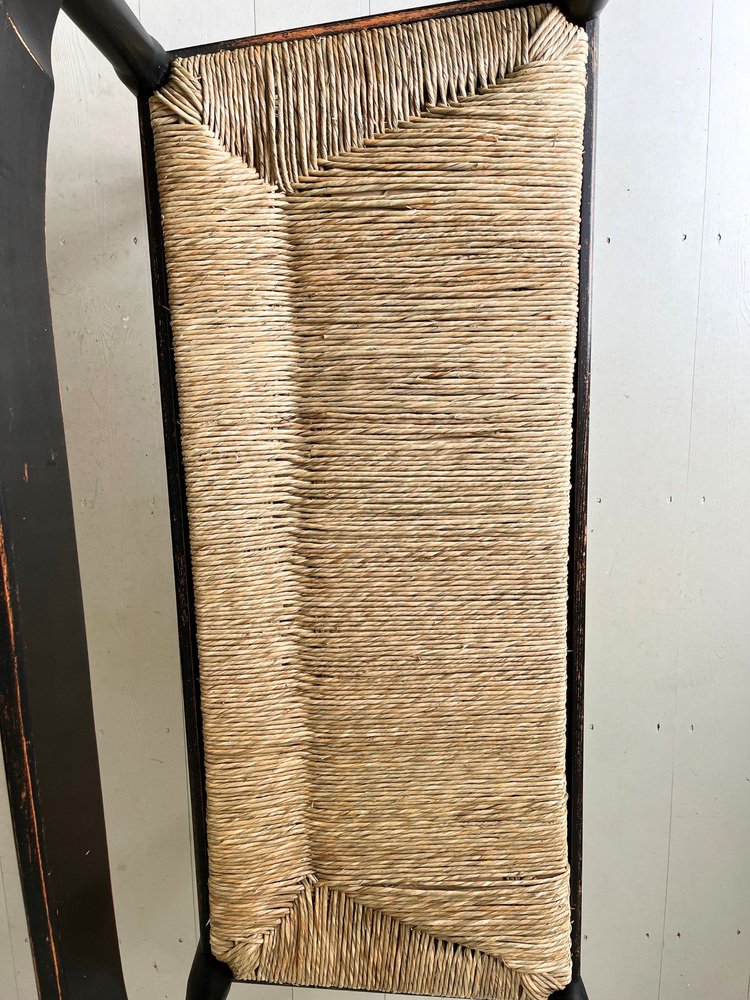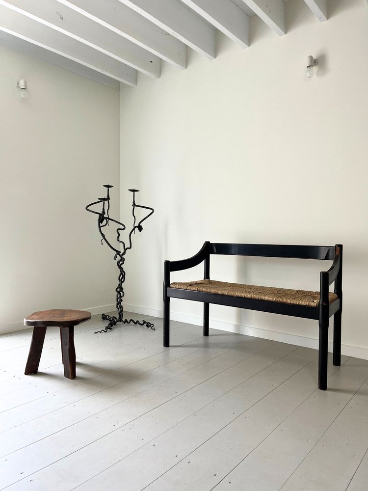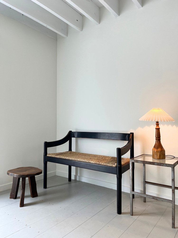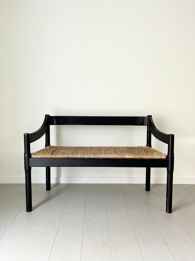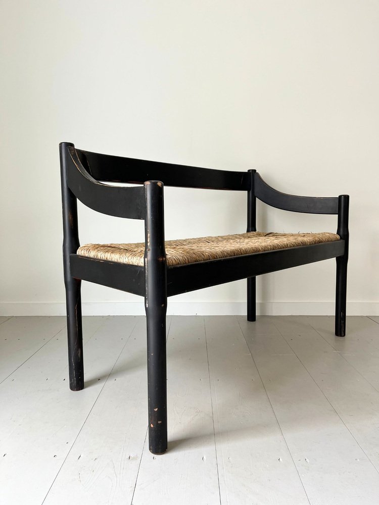 Mid-Century Italian Carimate Bench in Black with Rush Seat by Vico Magistretti for Cassina, 1960s