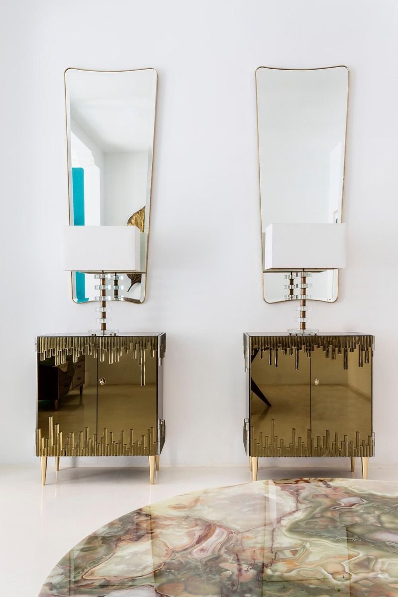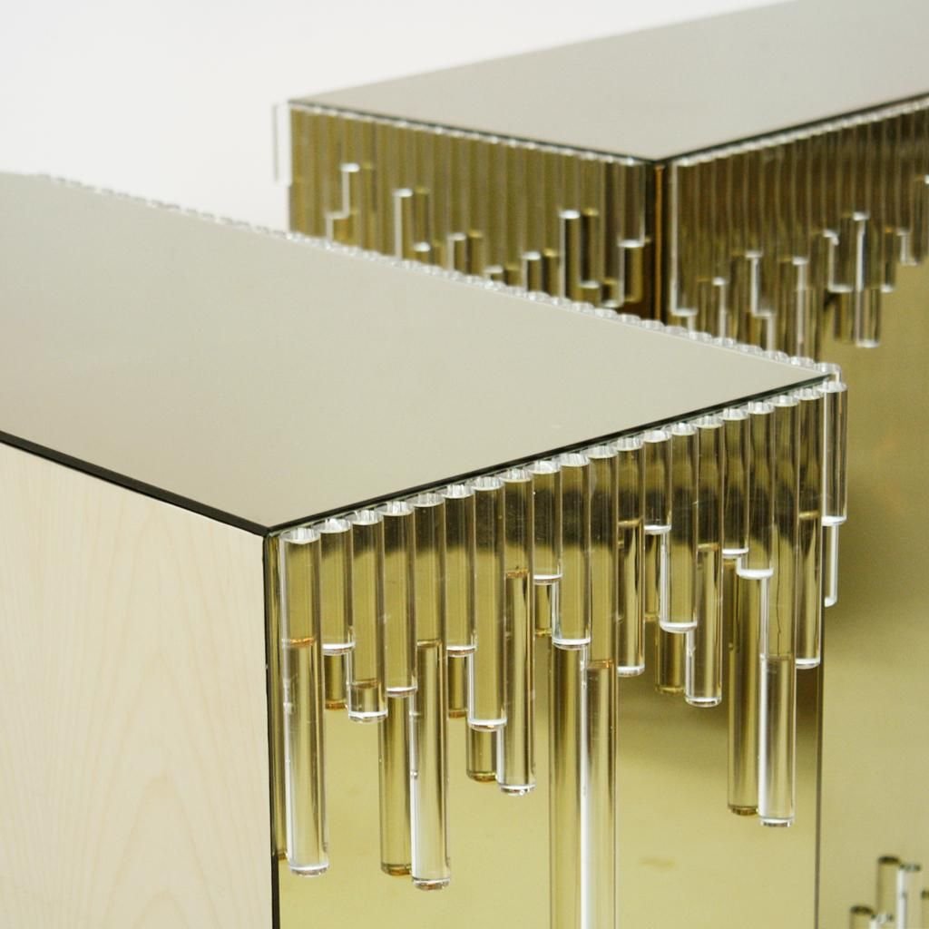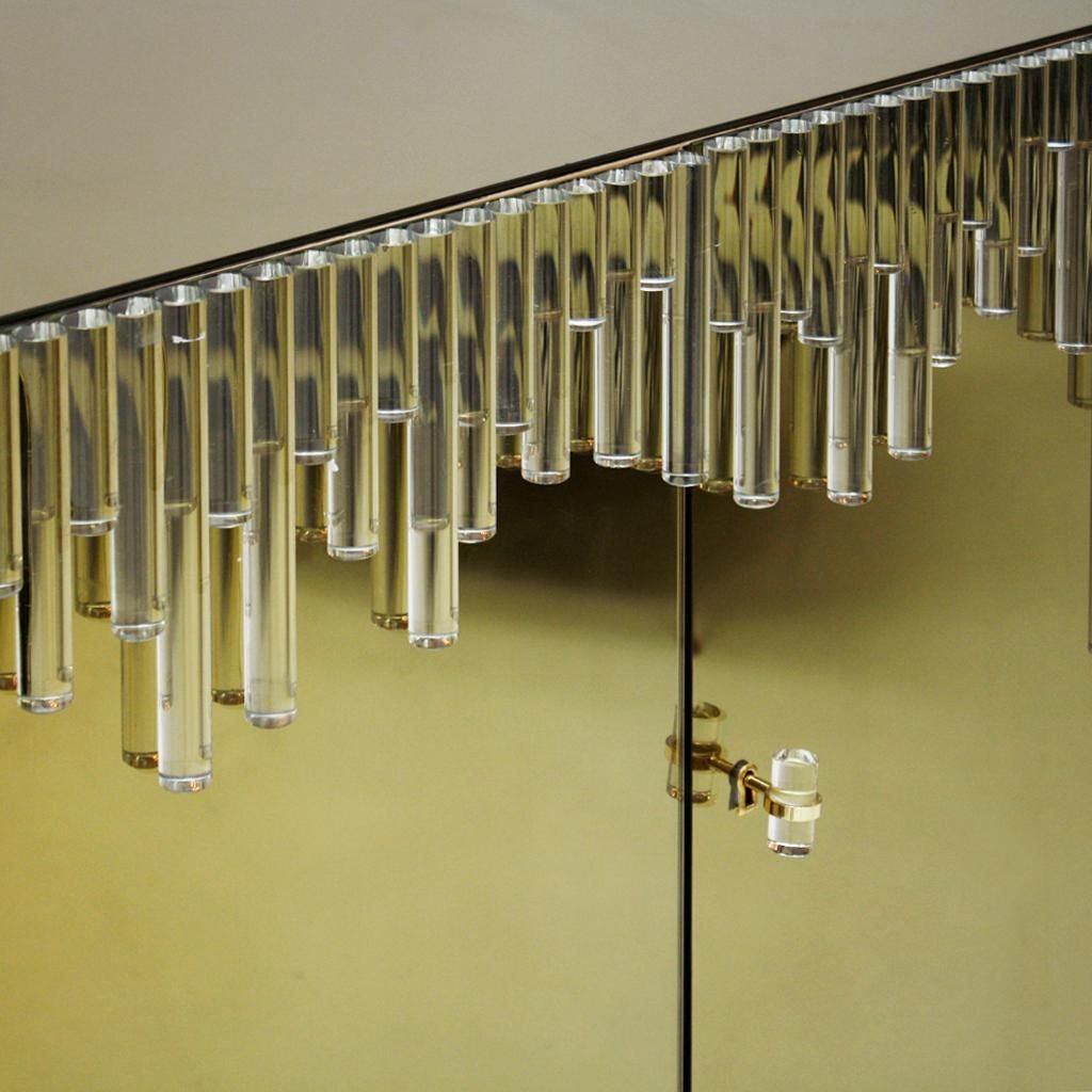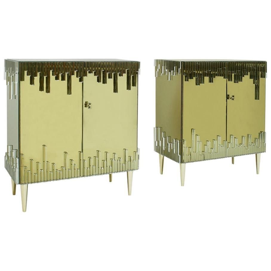 Mid-Century Italian Modern Style Glass and Golden Cabinets, Set of 2