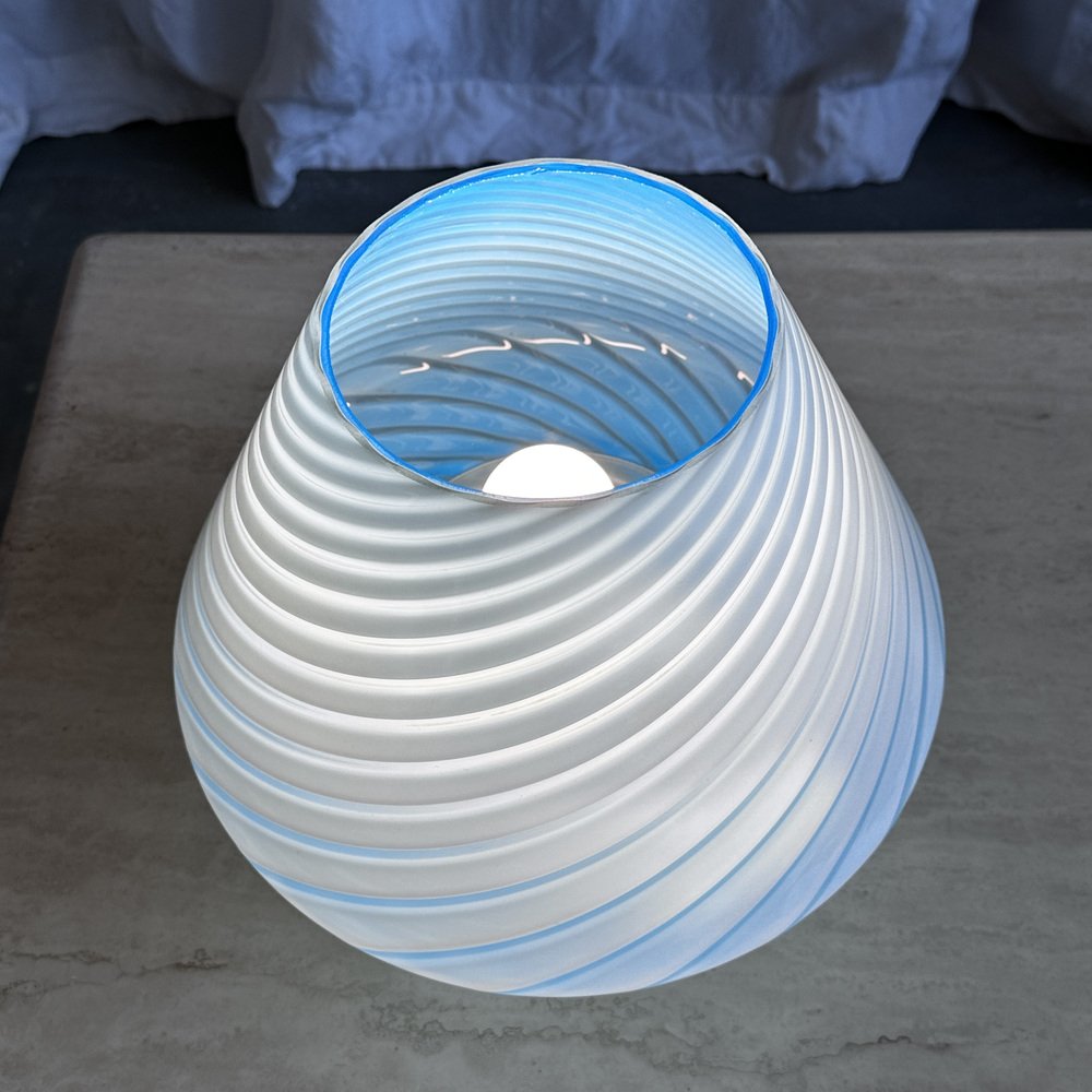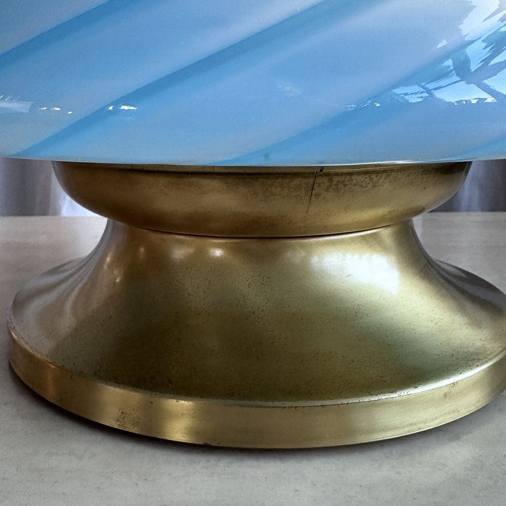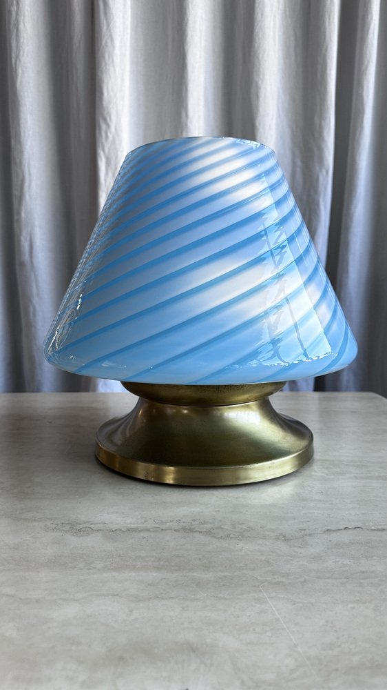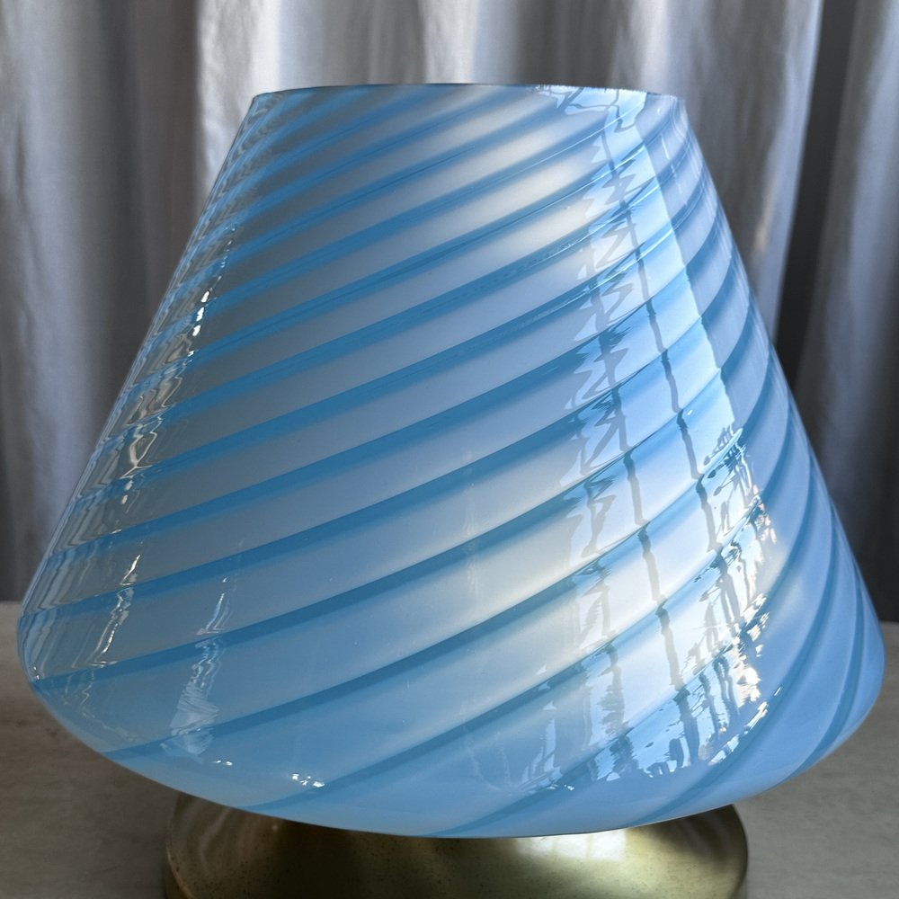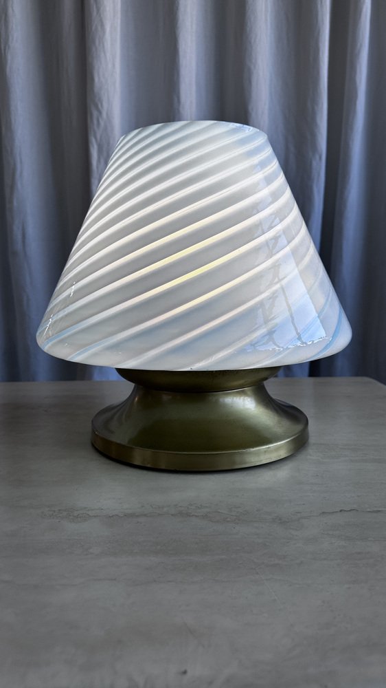 Mid-Century Italian Murano Glass Swirl Mushroom Table Lamp with Brass Base, 1970s