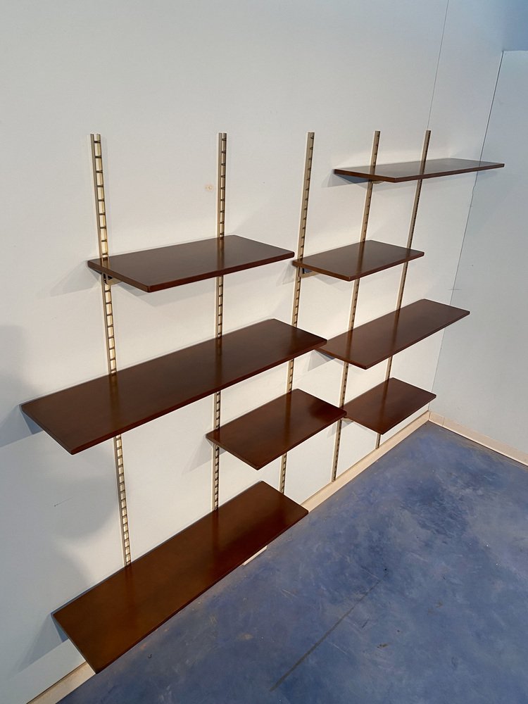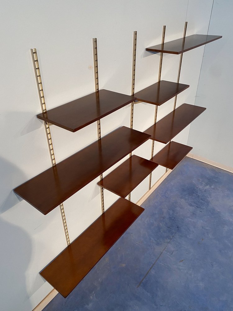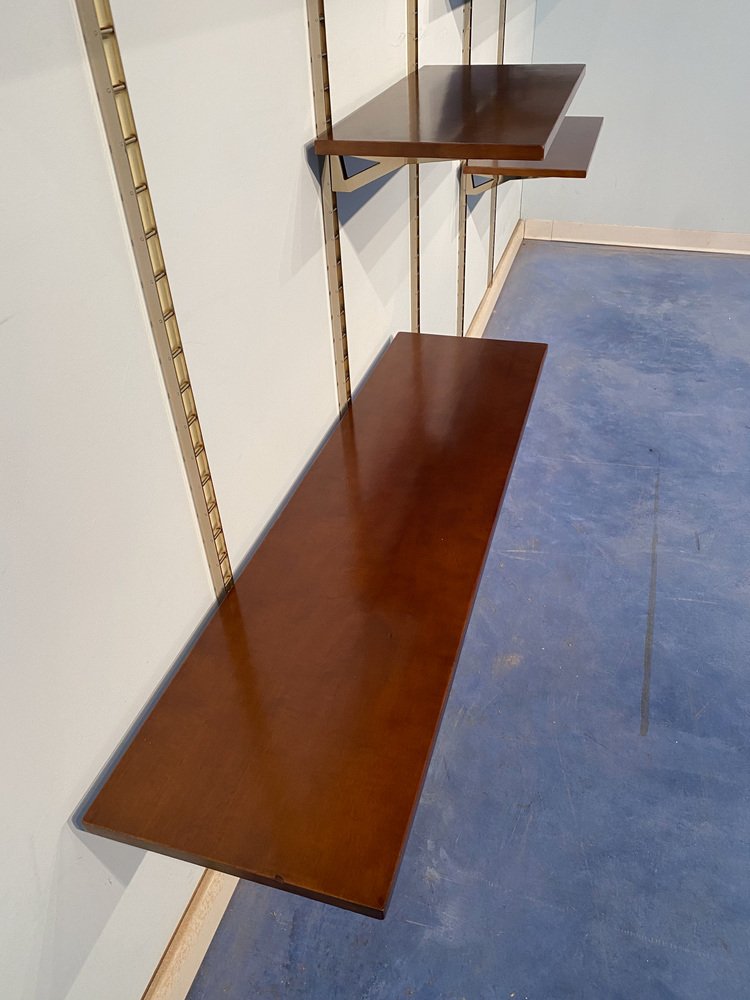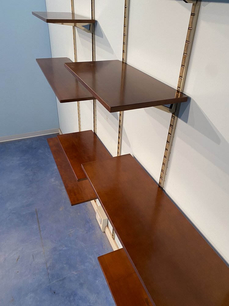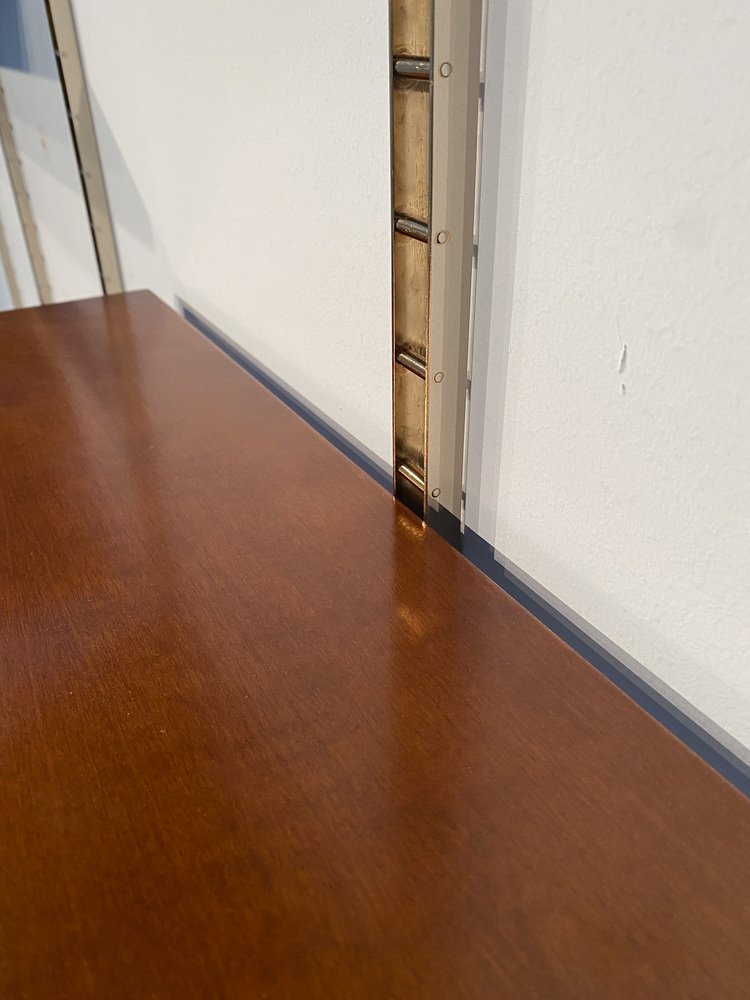 Mid-Century Italian Suspended Wall Unit Boockase in Walnut & Gilded Metal, 1960