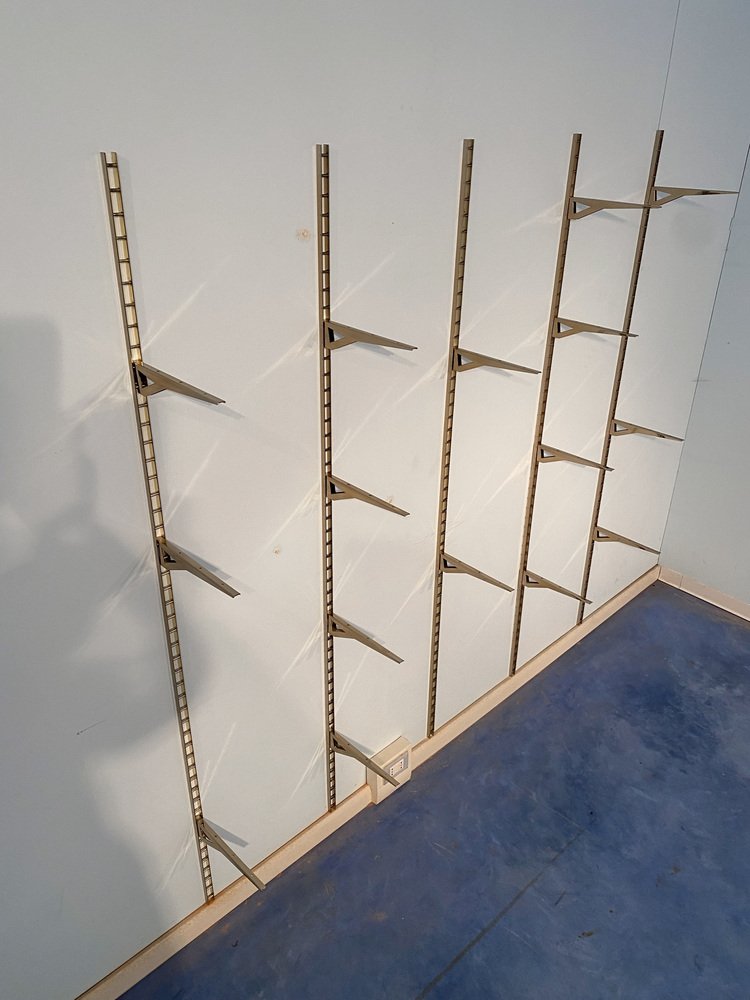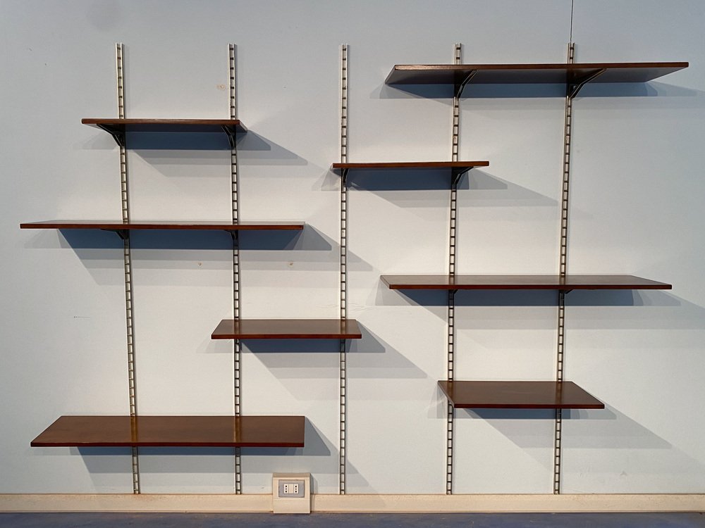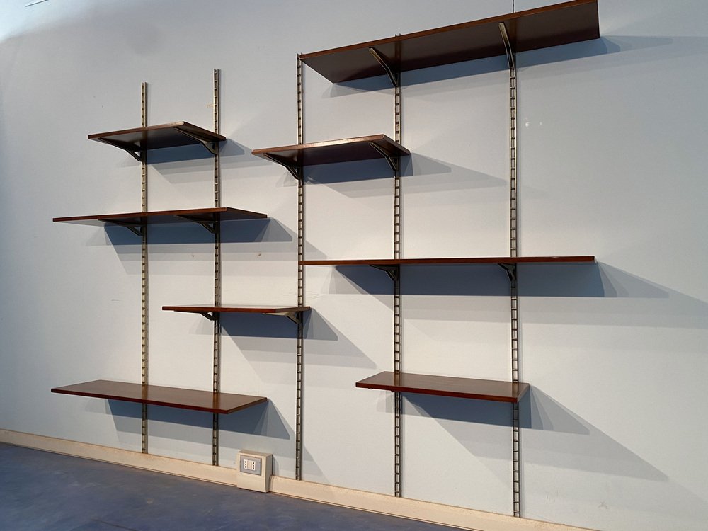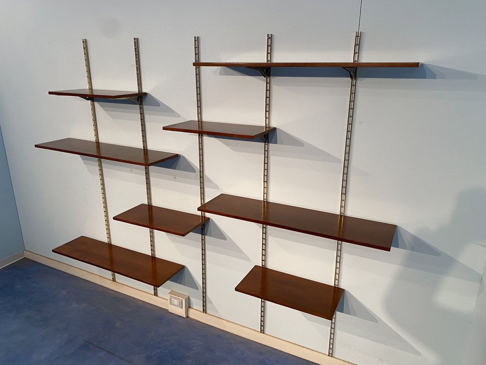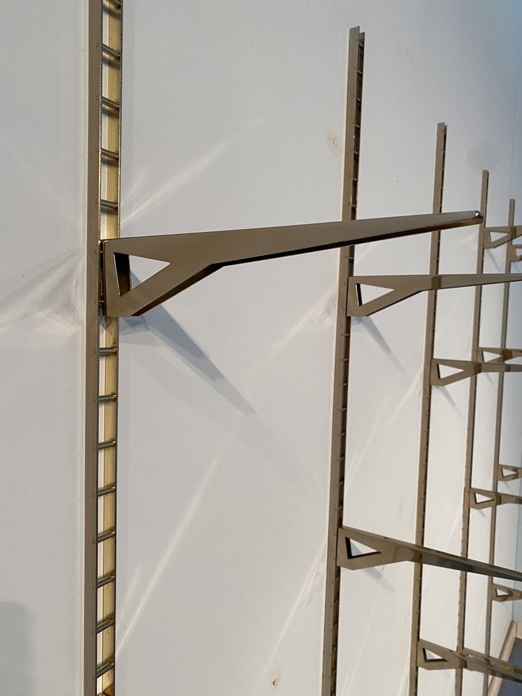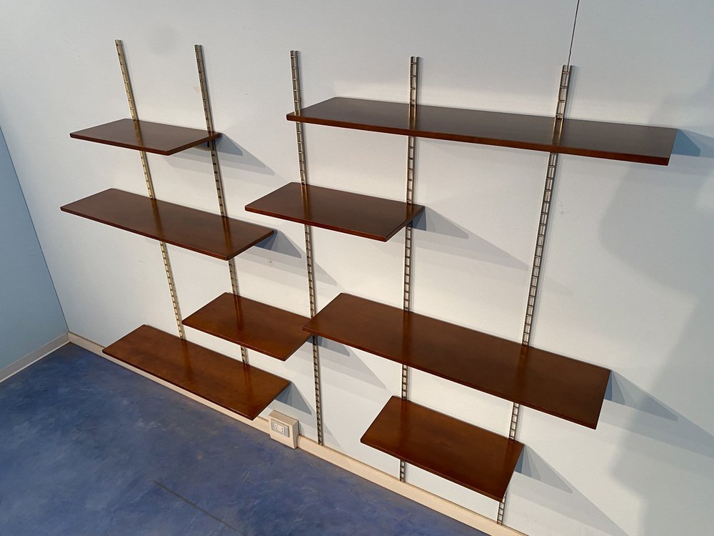 Mid-Century Italian Suspended Wall Unit Boockase in Walnut & Gilded Metal, 1960