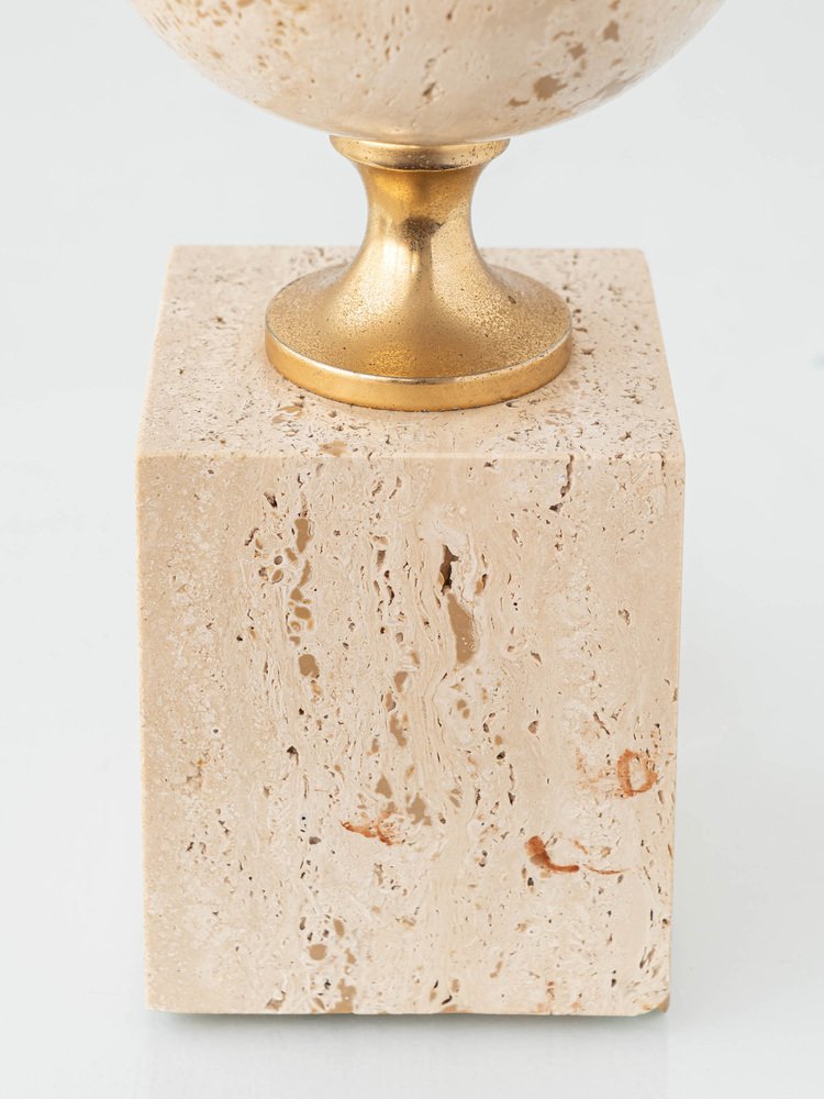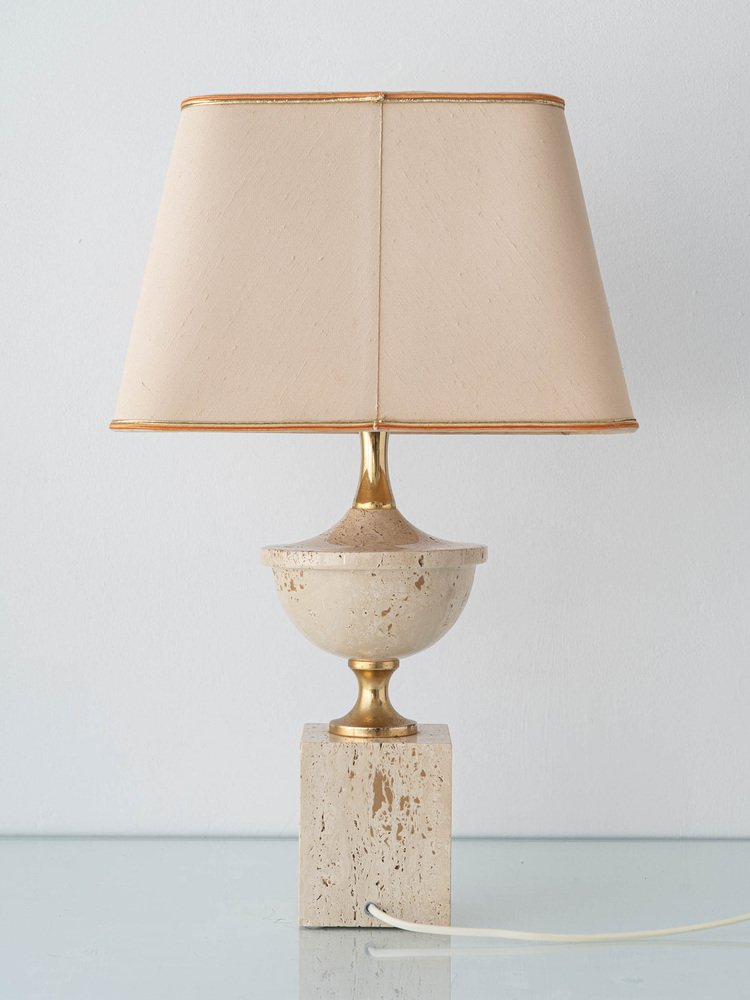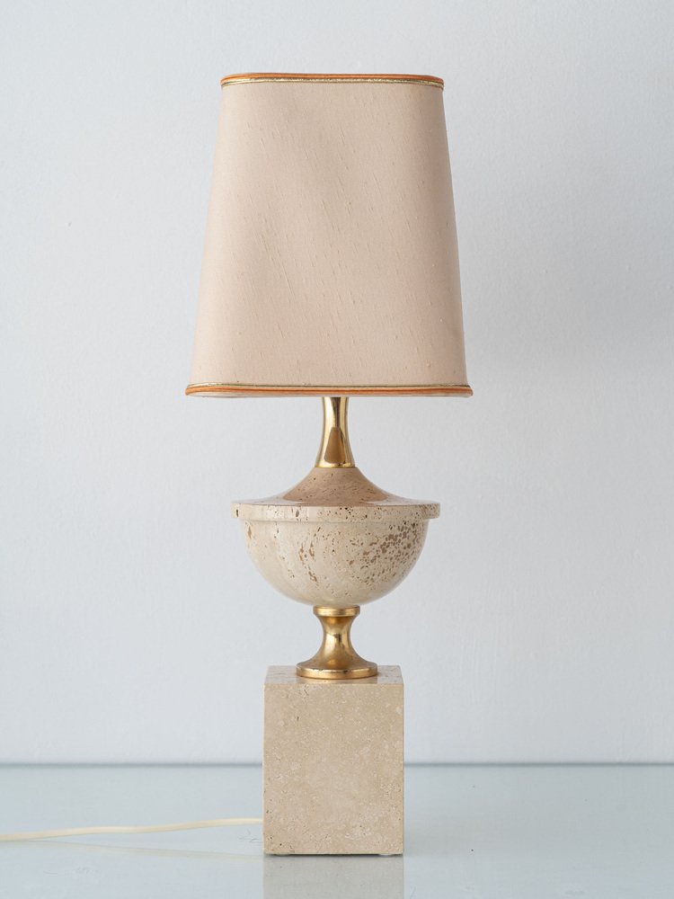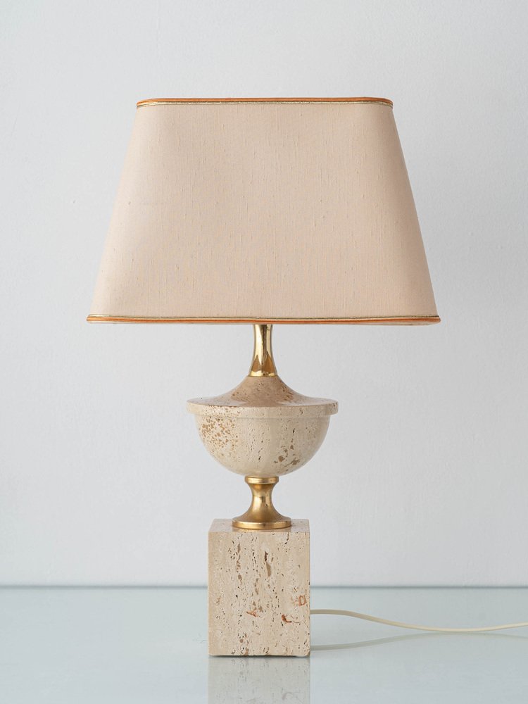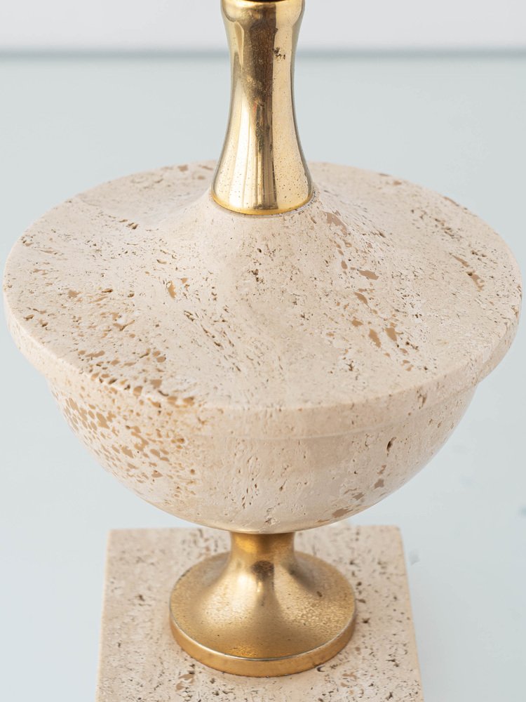 Mid-Century Italian Travertine and Brass Table Lamp attributed to Philippe Barbier, 1970s