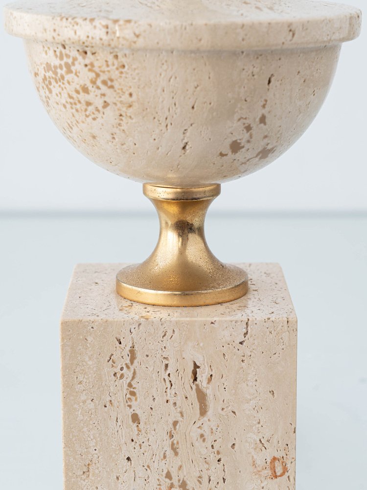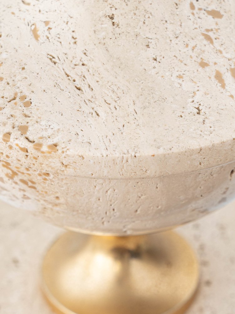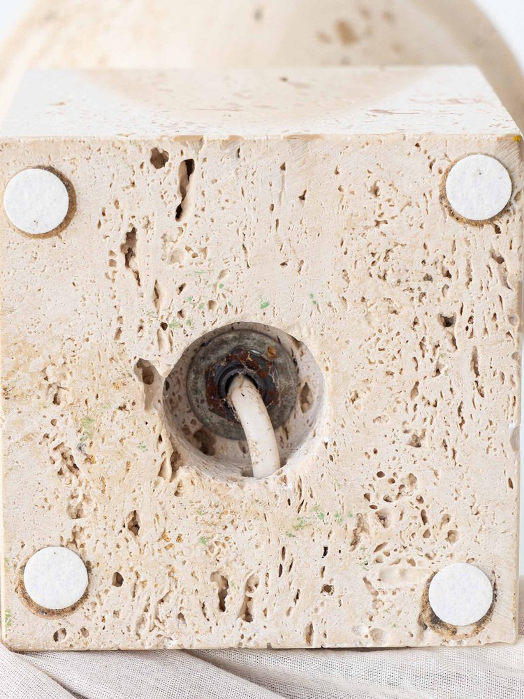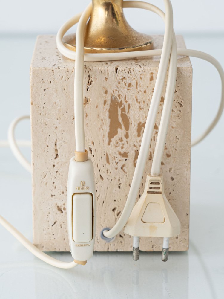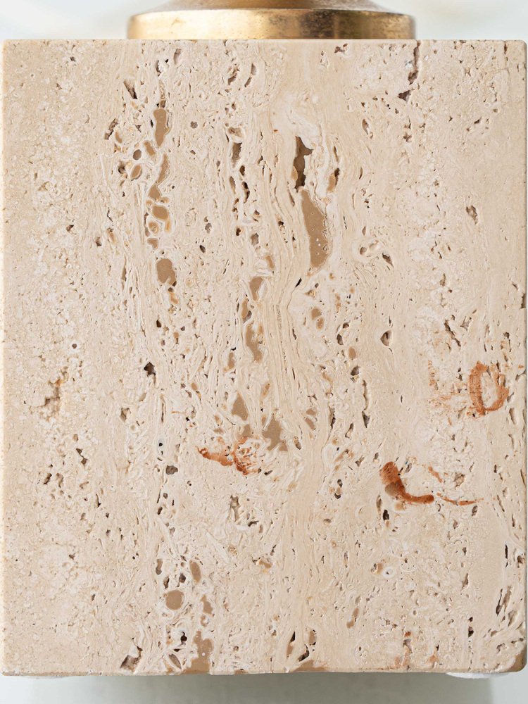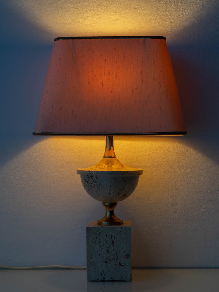 Mid-Century Italian Travertine and Brass Table Lamp attributed to Philippe Barbier, 1970s