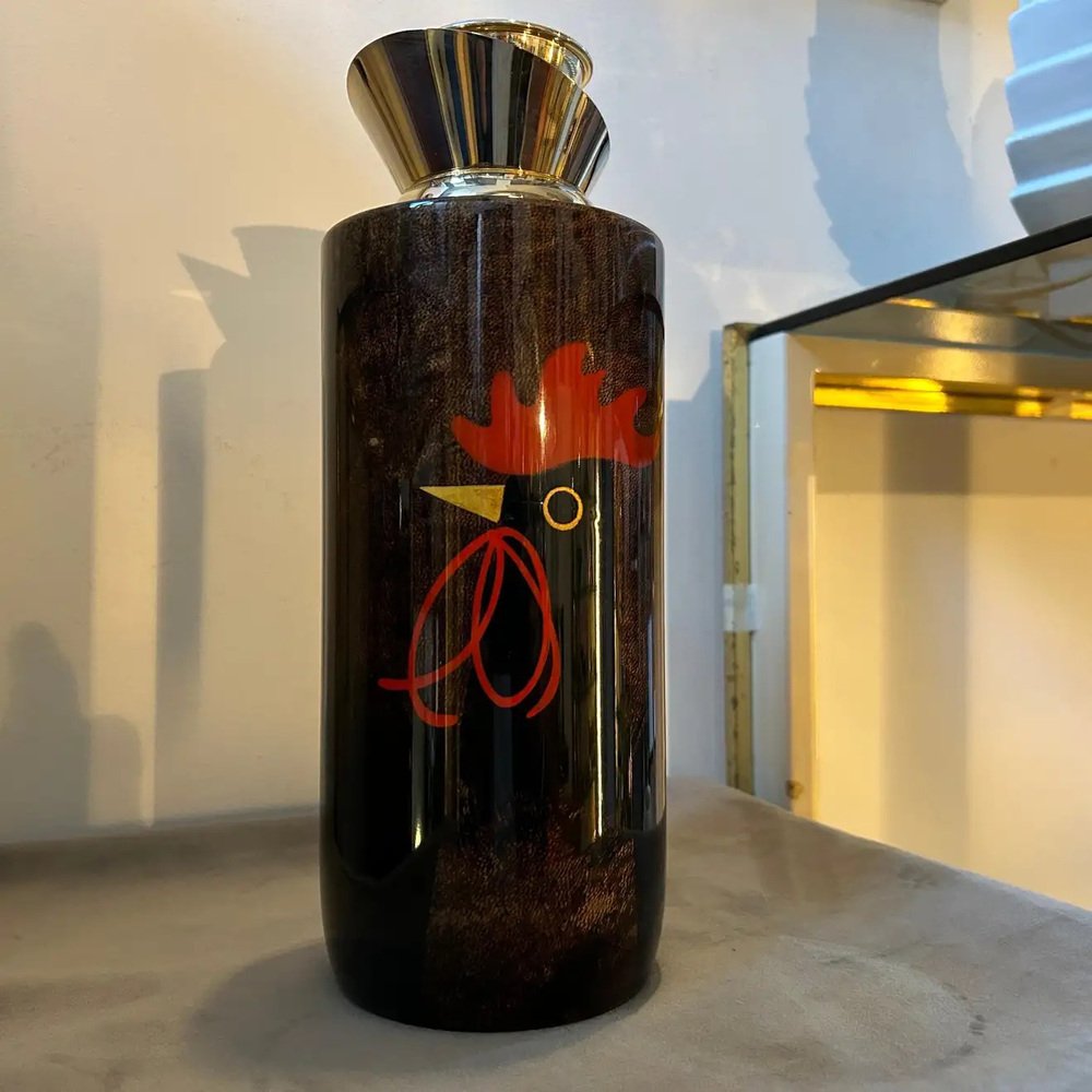 Mid-Century Modern Brass and Brown Goatskin Thermos Carafe by Aldo Tura, 1950s