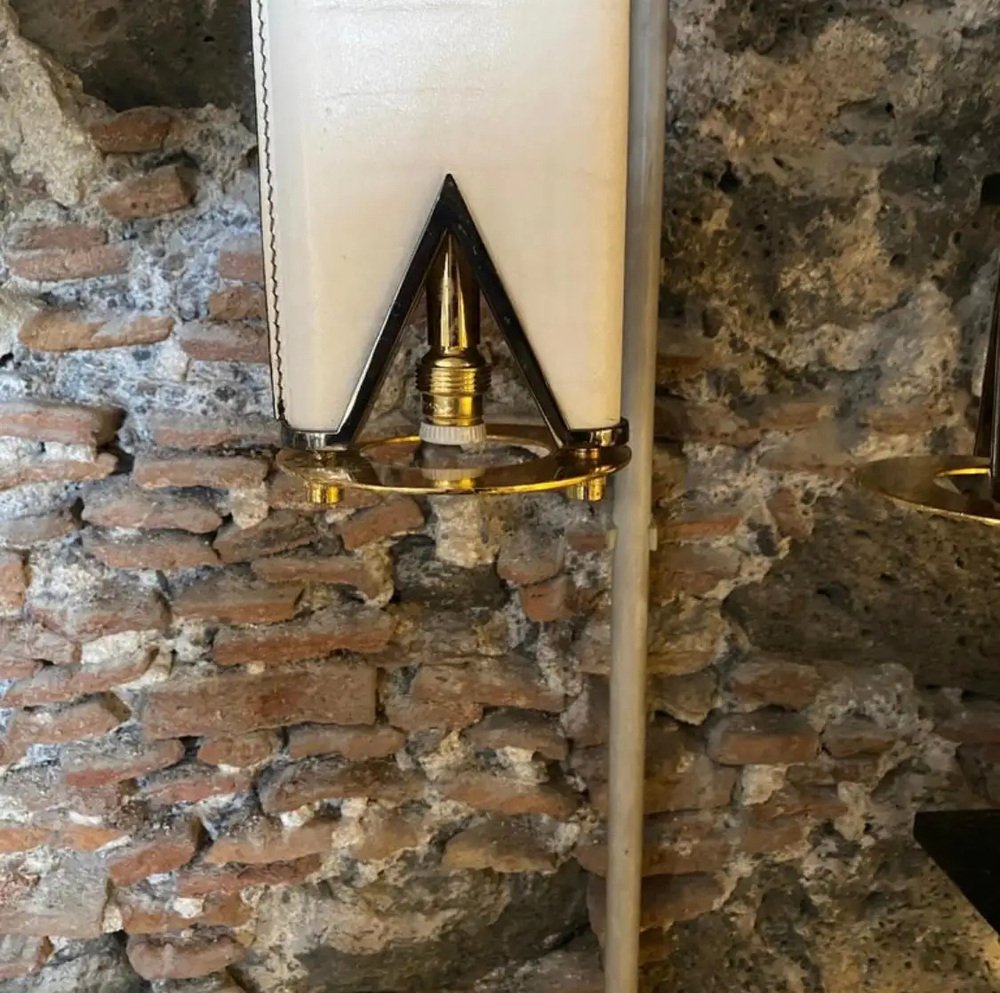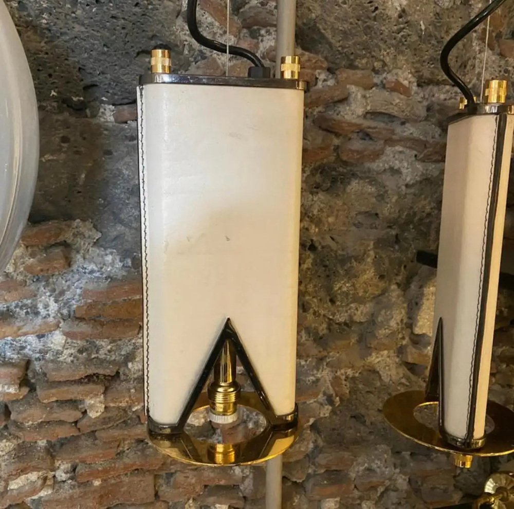 Mid-Century Modern Brass and Skin Double Ceiling Light, Italy, 1980s
