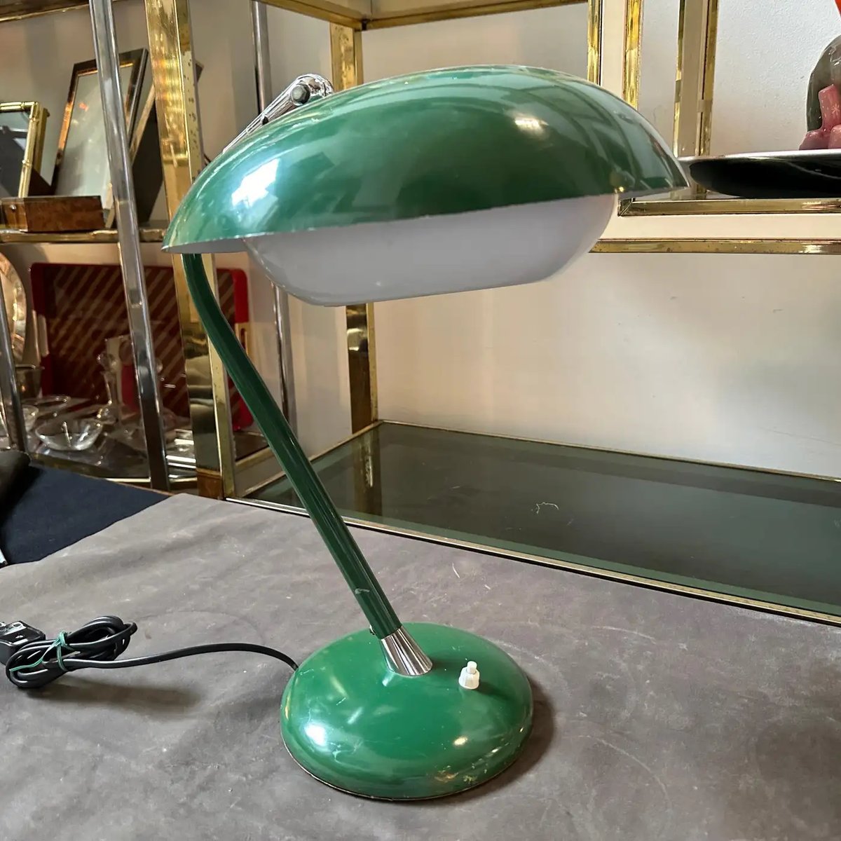 Mid-Century Modern Green Painted Metal Table Lamp in the style of Gio Pointi, 1960s