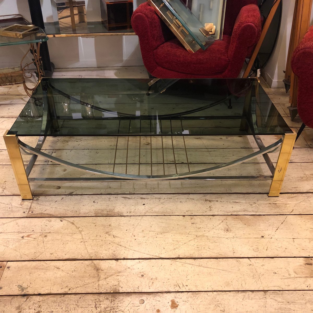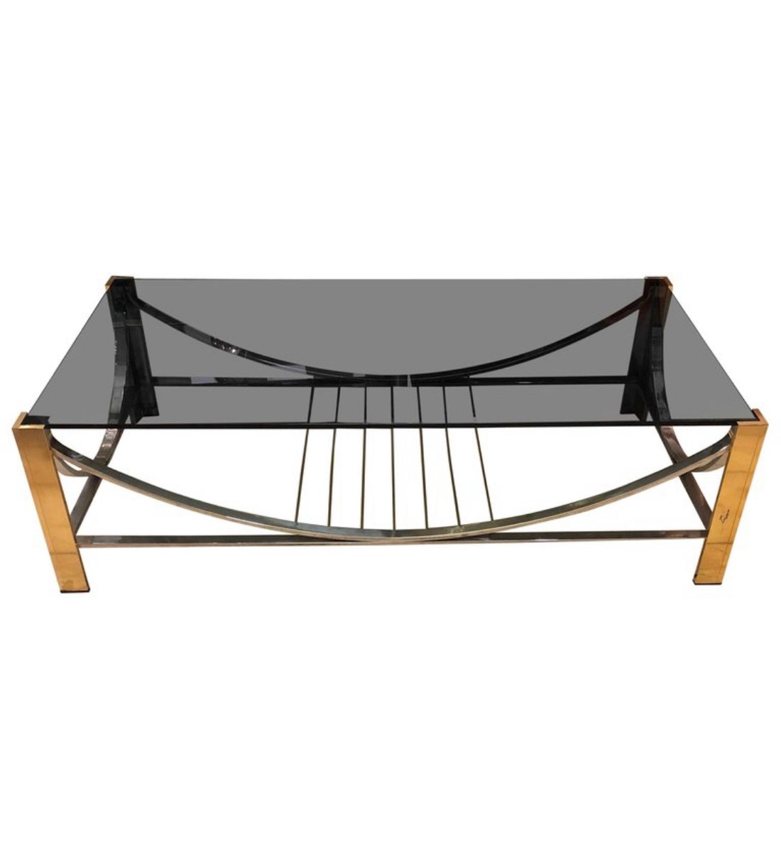 Mid-Century Modern Italian Brass, Steel, and Smoked Glass Coffee Table, 1970s