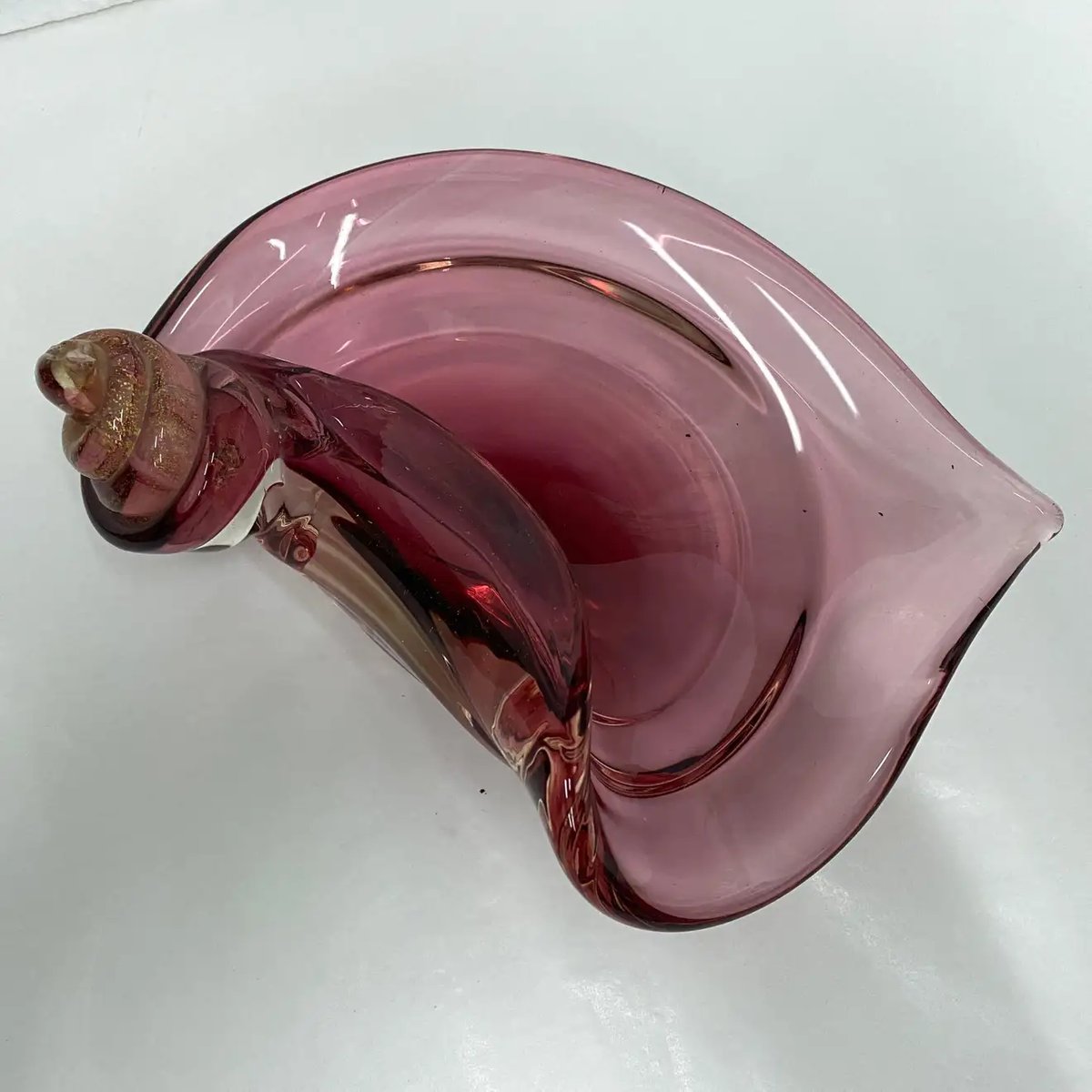 During the 1930s, Ercole began experimenting with heavier, more sculptural glass forms that feature uneven surfaces and handles. Comprising large, cylindrical elements decorated with crystal pyramids, Ercole’s Rostrato series (1938) is among the most beloved and copied Barovier collection from this period. Onward through his tenure, which ended in 1972, Ercole would continue to innovate and explore, jaunting through such novel styles as the complex, polychrome abstractions of the Oriente series (ca. 1940s) of vases and bowls; the serpentine Spiral patterns (ca. 1950s); the pebbly textured Barbarico line (ca. 1950s) made from oxides placed on glass; and the Pezatto series (ca. 1950s and 1960s), which often used strongly contrasting mosaic pieces.