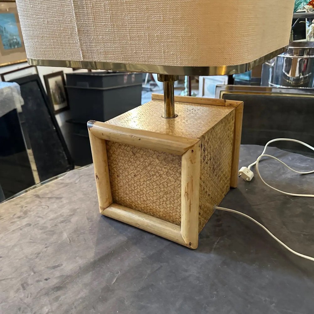 Mid-Century Modern Italian Square Table Lamp in Bamboo and Brass, 1970s