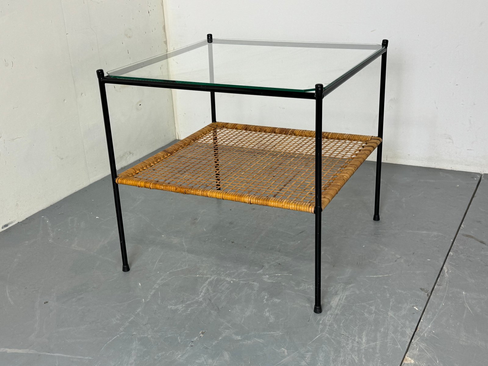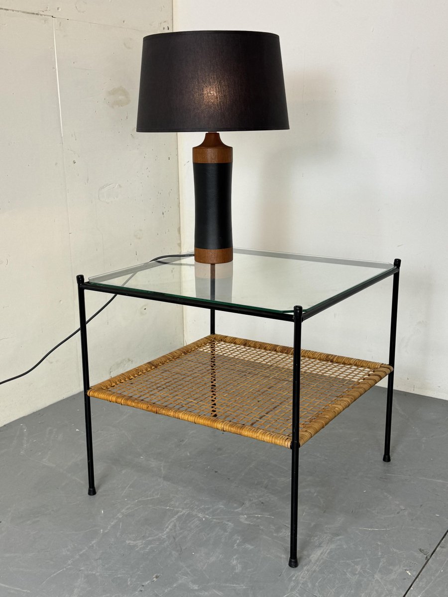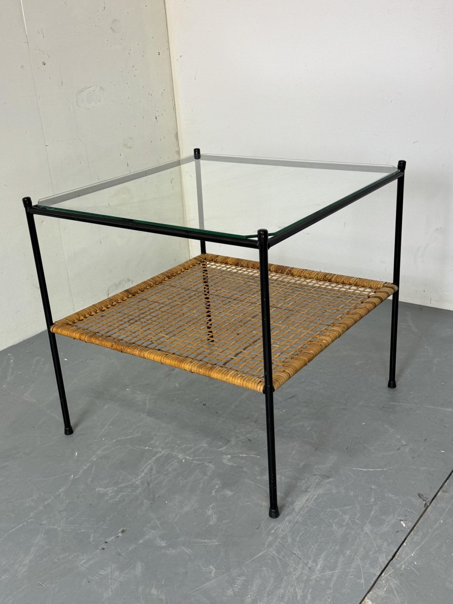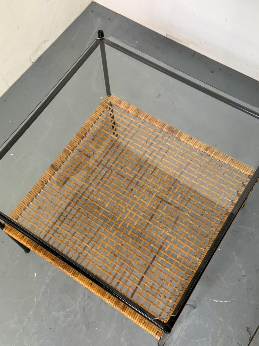 Mid-Century Modern Rattan and Glass Coffee Table by Dirk Van Sliedregt for Gebroeders Jonkers Noordwolde, 1950s