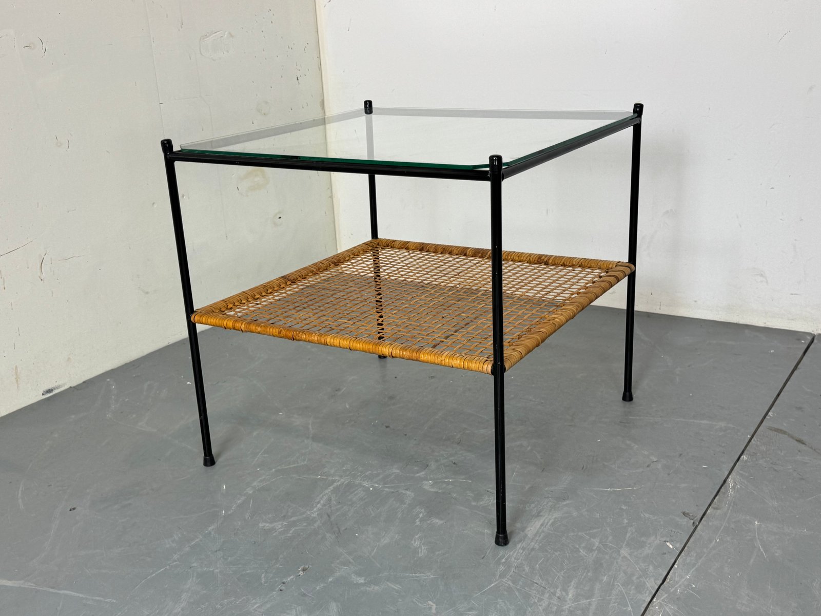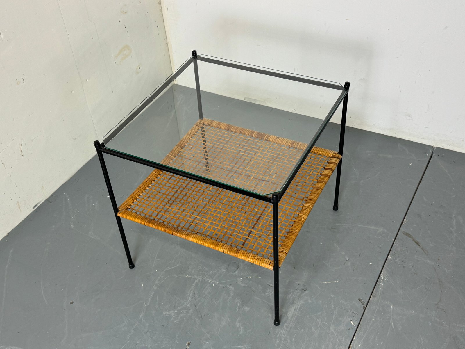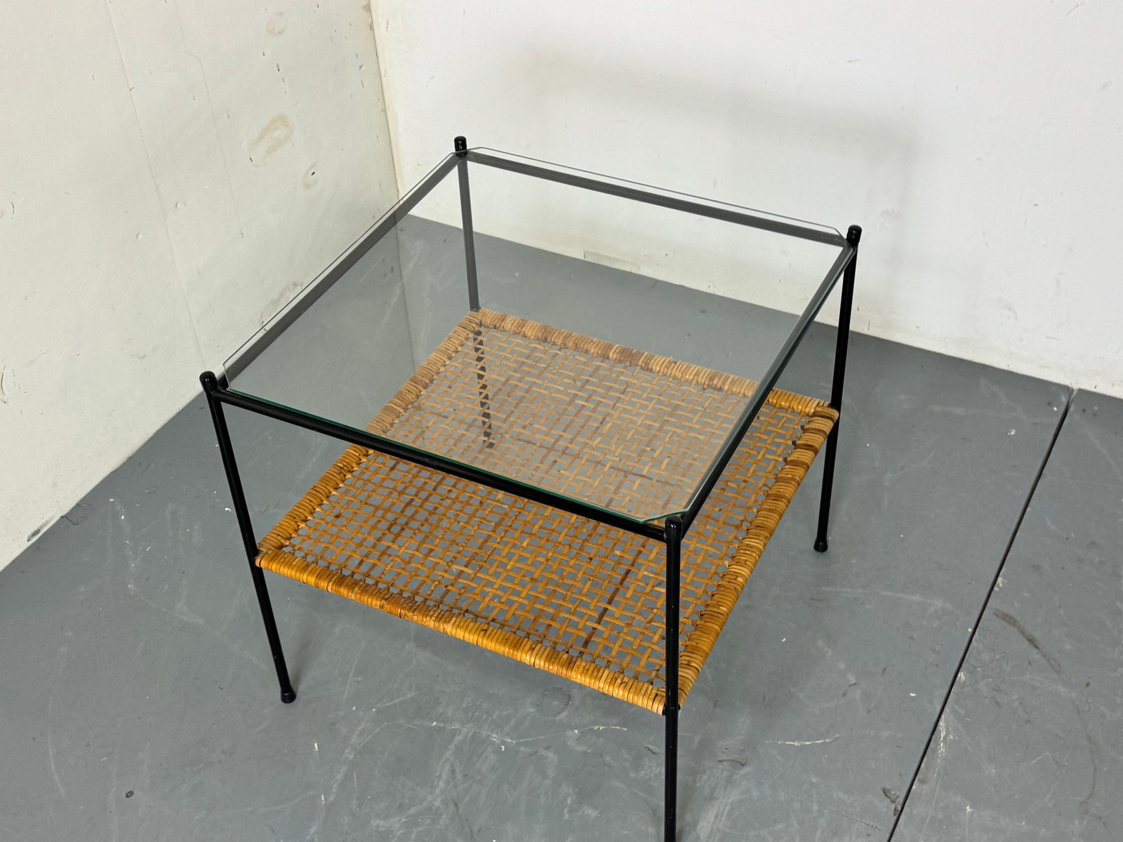 Mid-Century Modern Rattan and Glass Coffee Table by Dirk Van Sliedregt for Gebroeders Jonkers Noordwolde, 1950s