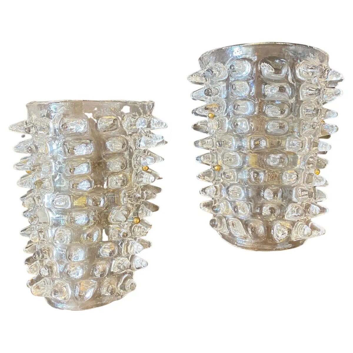 Mid-Century Modern Rostrato Murano Glass Wall Sconces, 1980s, Set of 2