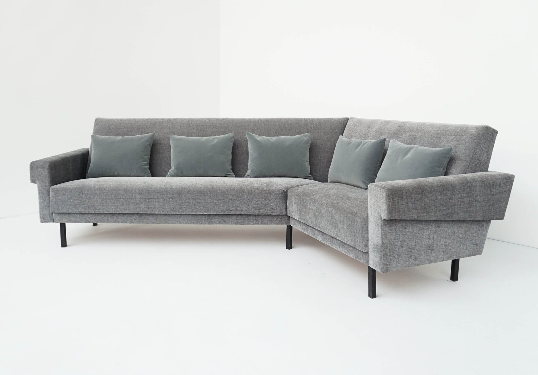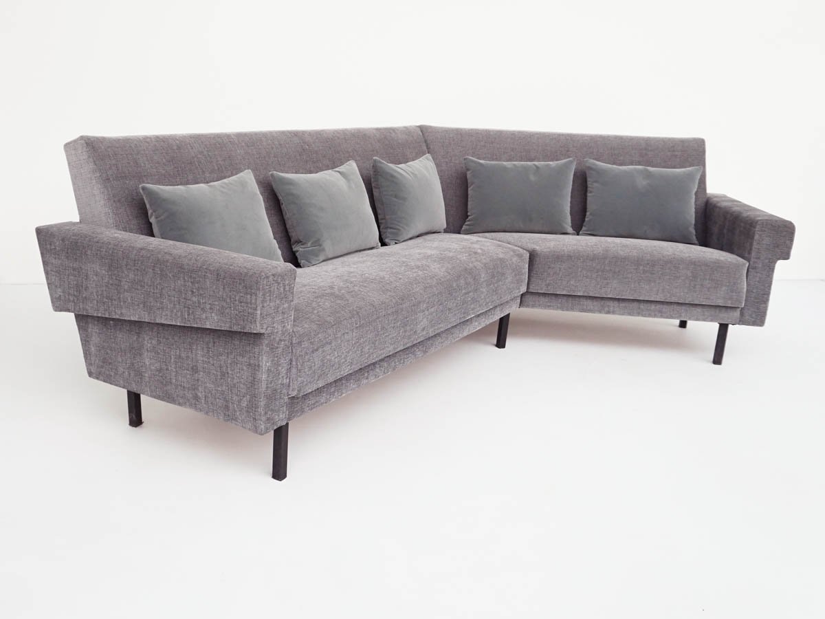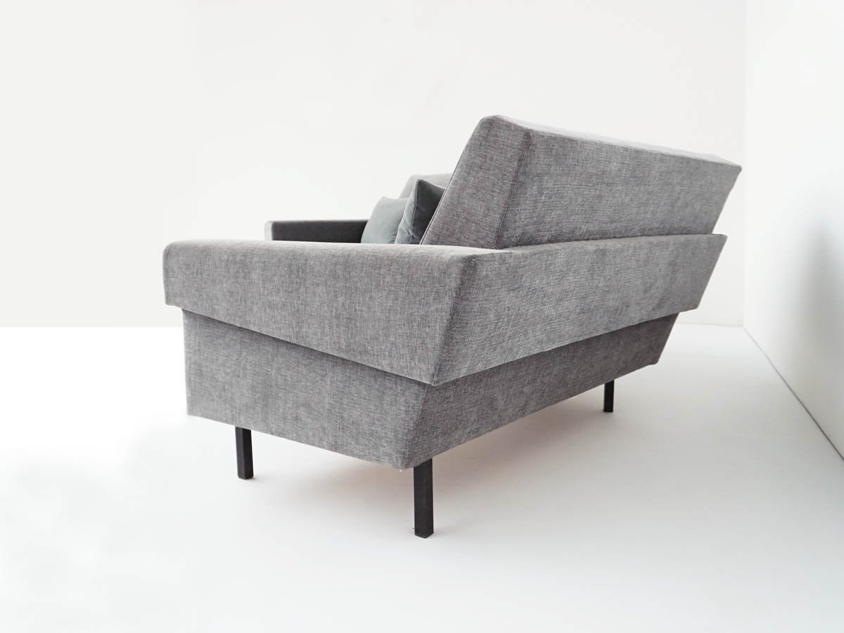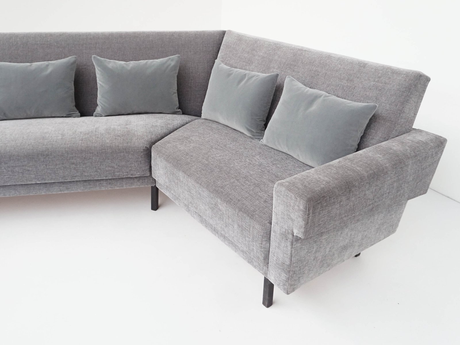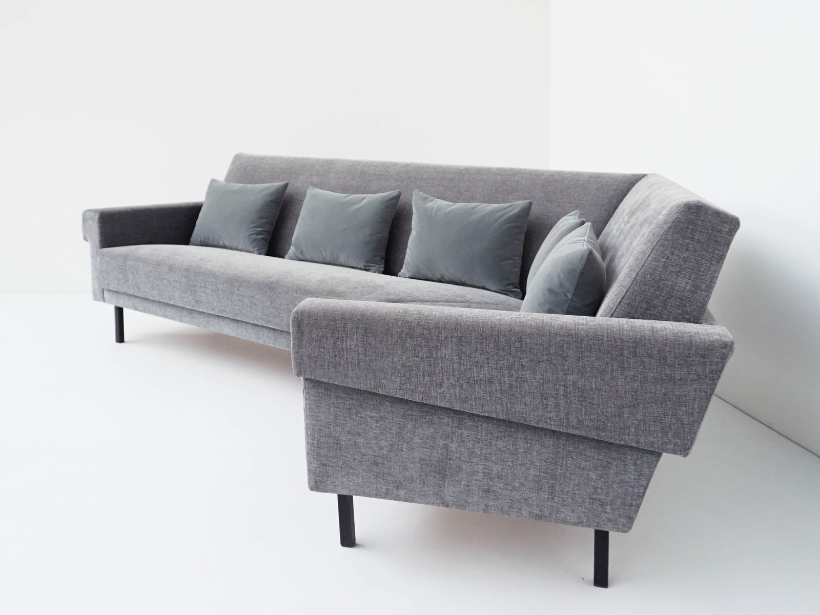 Mid-Century Modern Sofa in Lead-Gray Fabric with Feather and Velvet Cushions in the style of George Nelson for Knoll Inc. / Knoll International, 1968
