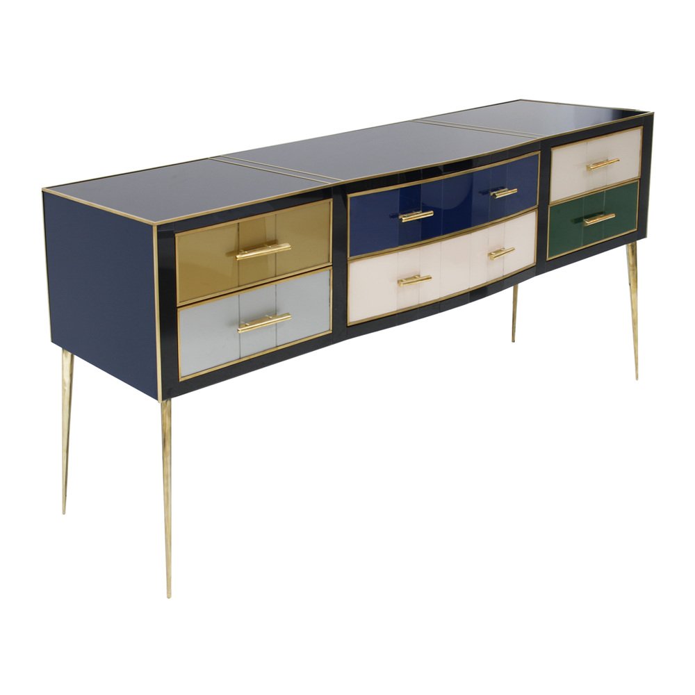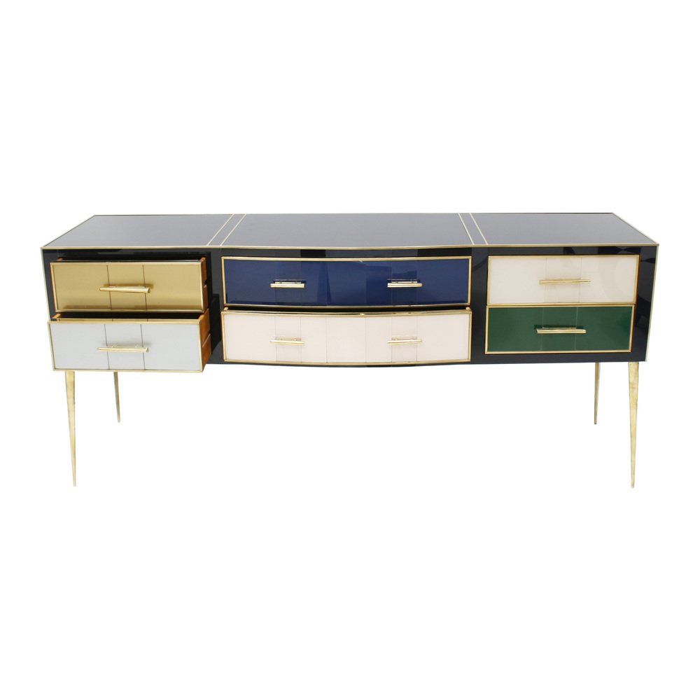 Mid-Century Modern Solid Wood and Colored Glass Sideboard, Italy