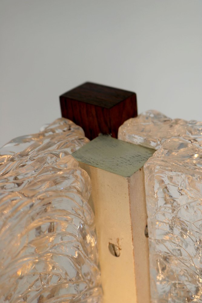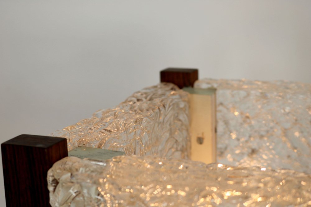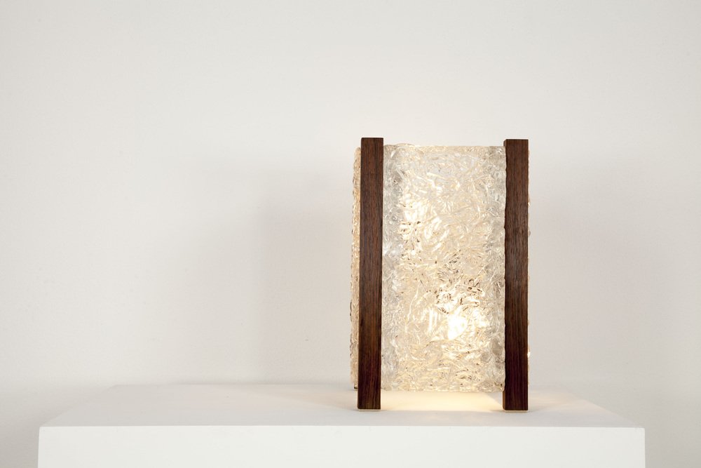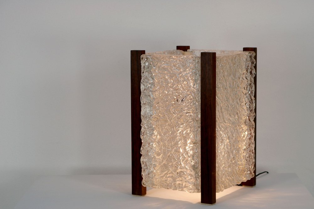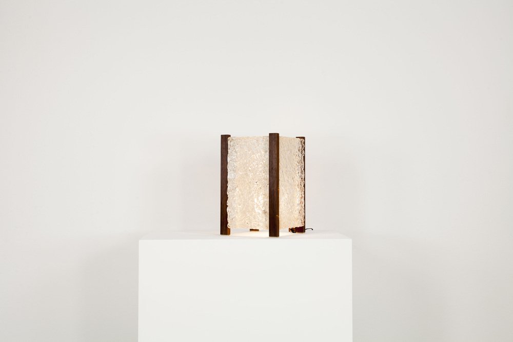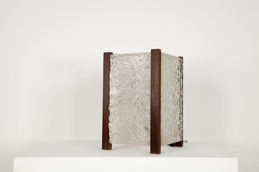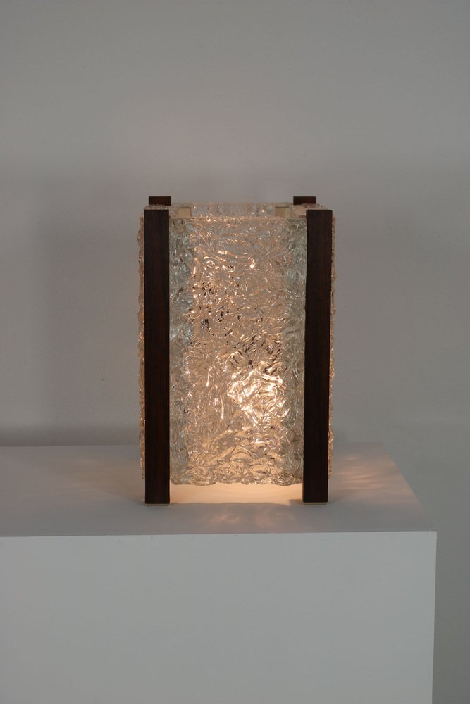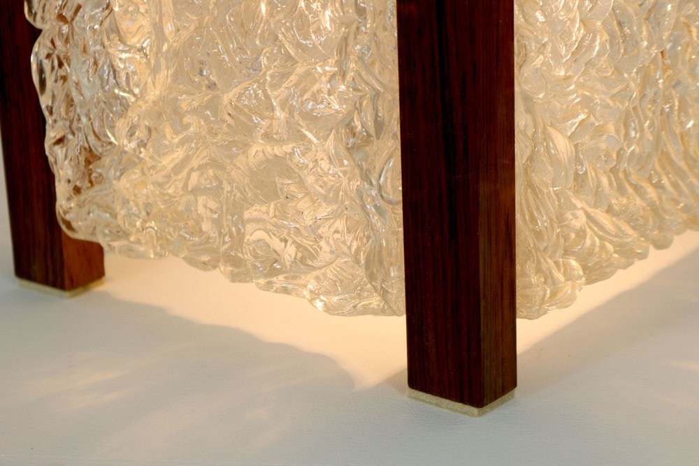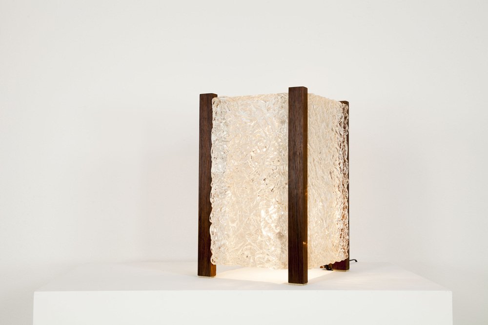 Mid-Century Modern Table Lamp with Thick Structured Acrylic Glass & Rosewood Frame, 1970