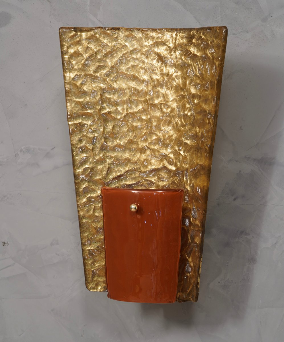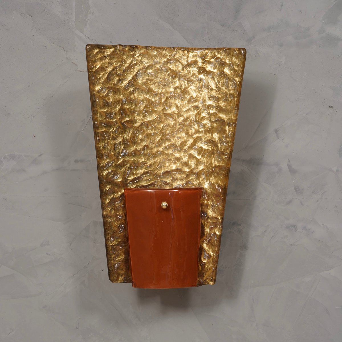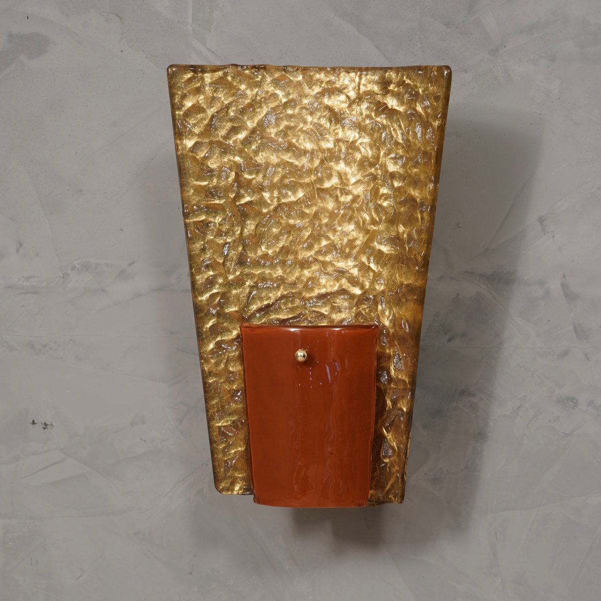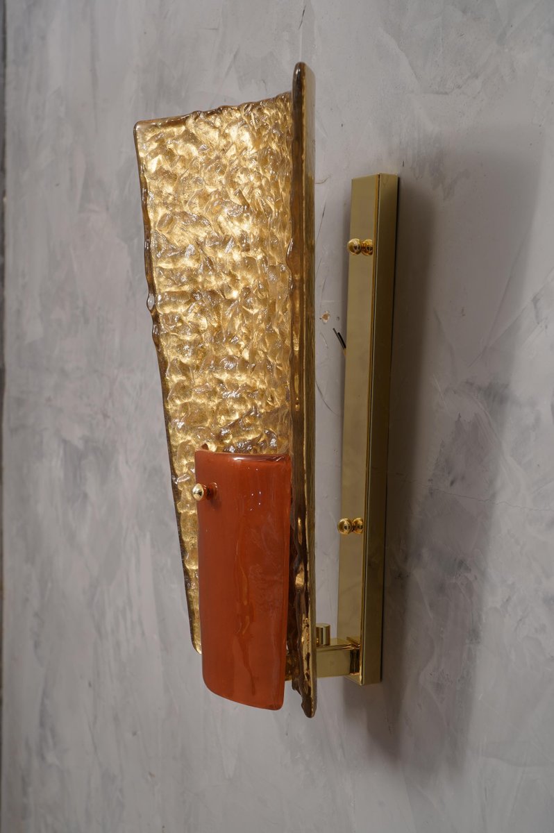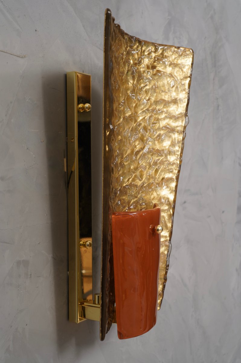 Mid-Century Murano Glass and Brass Wall Light, 1980s