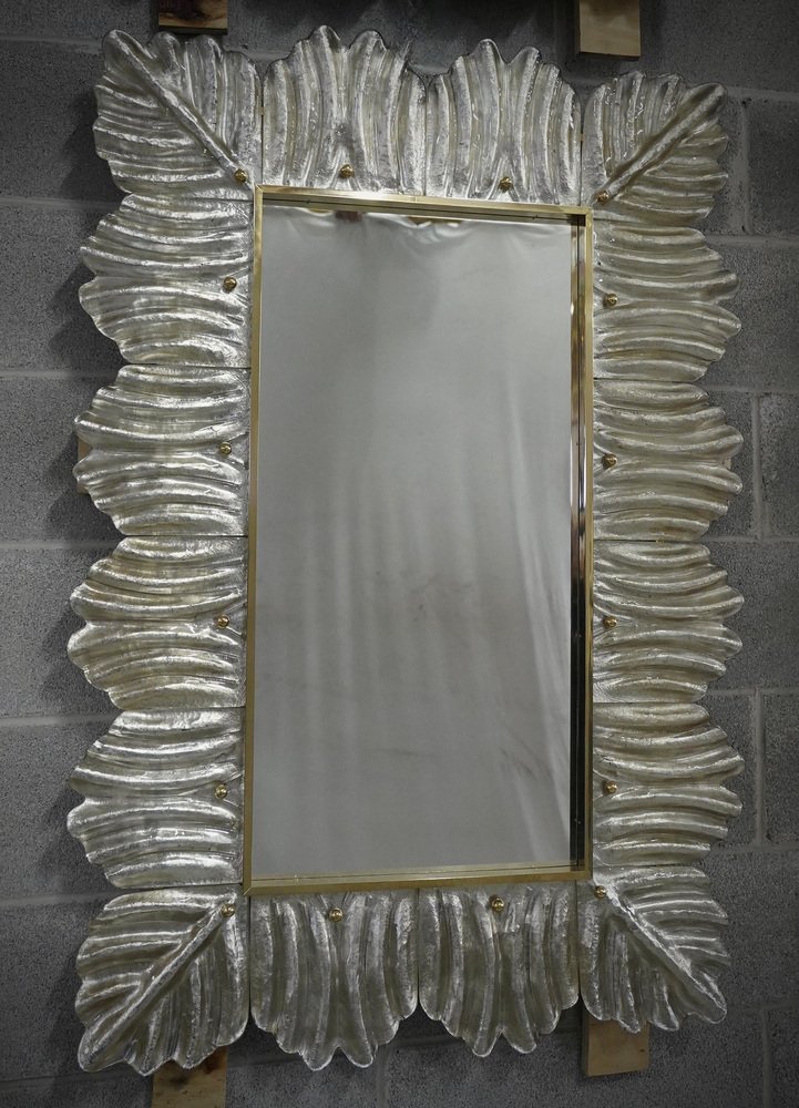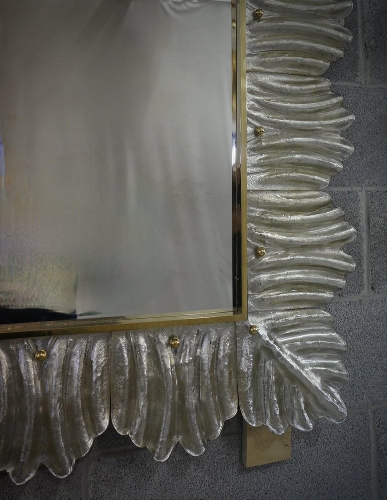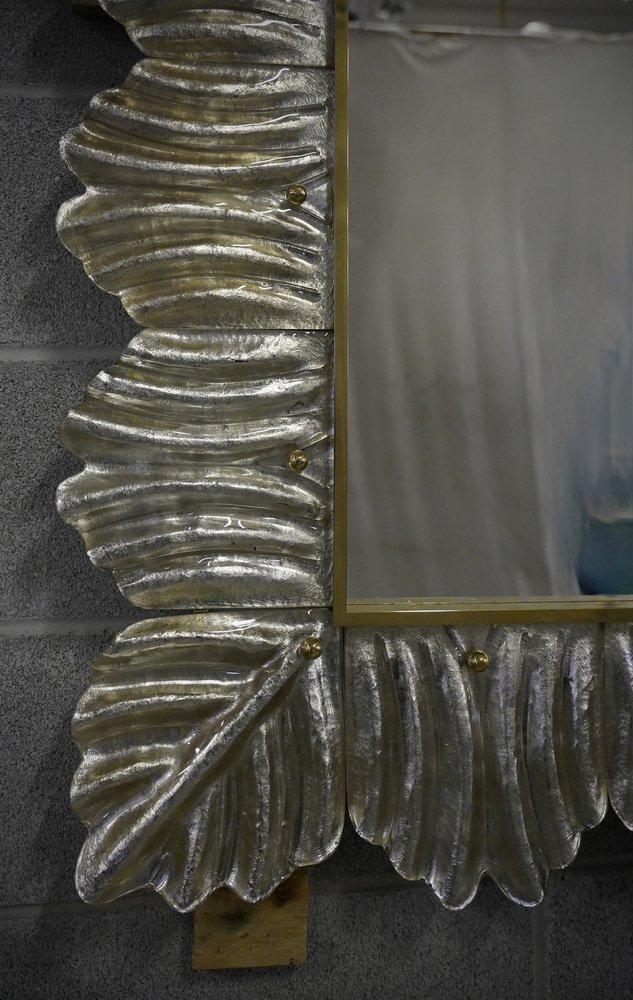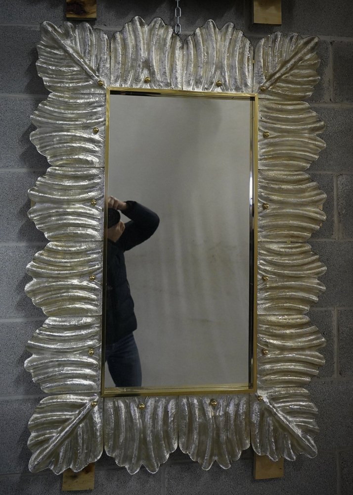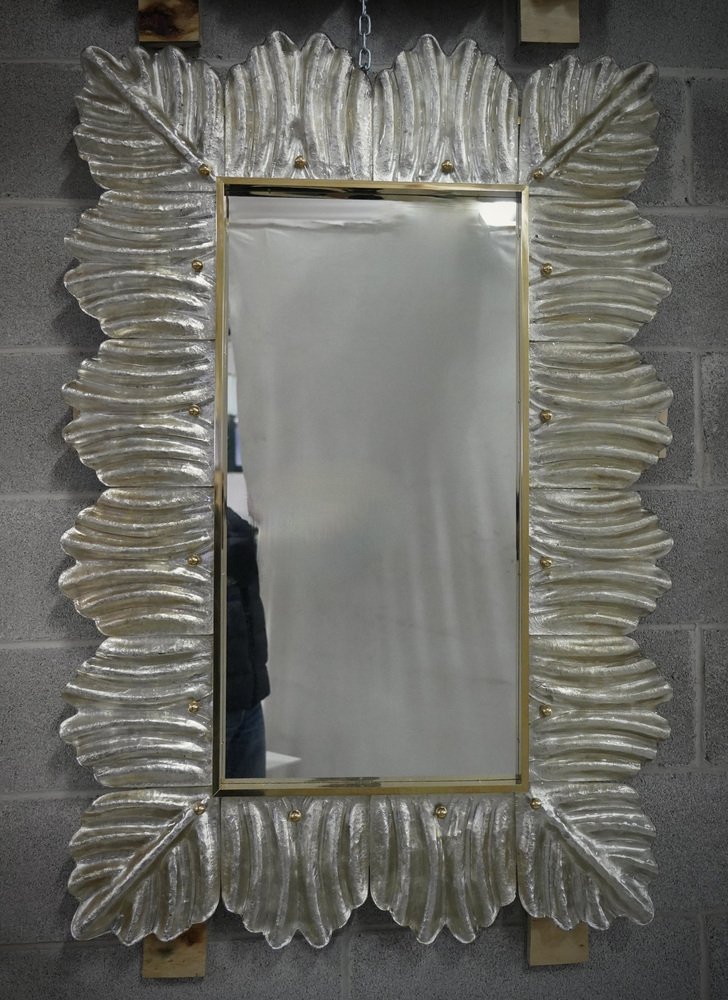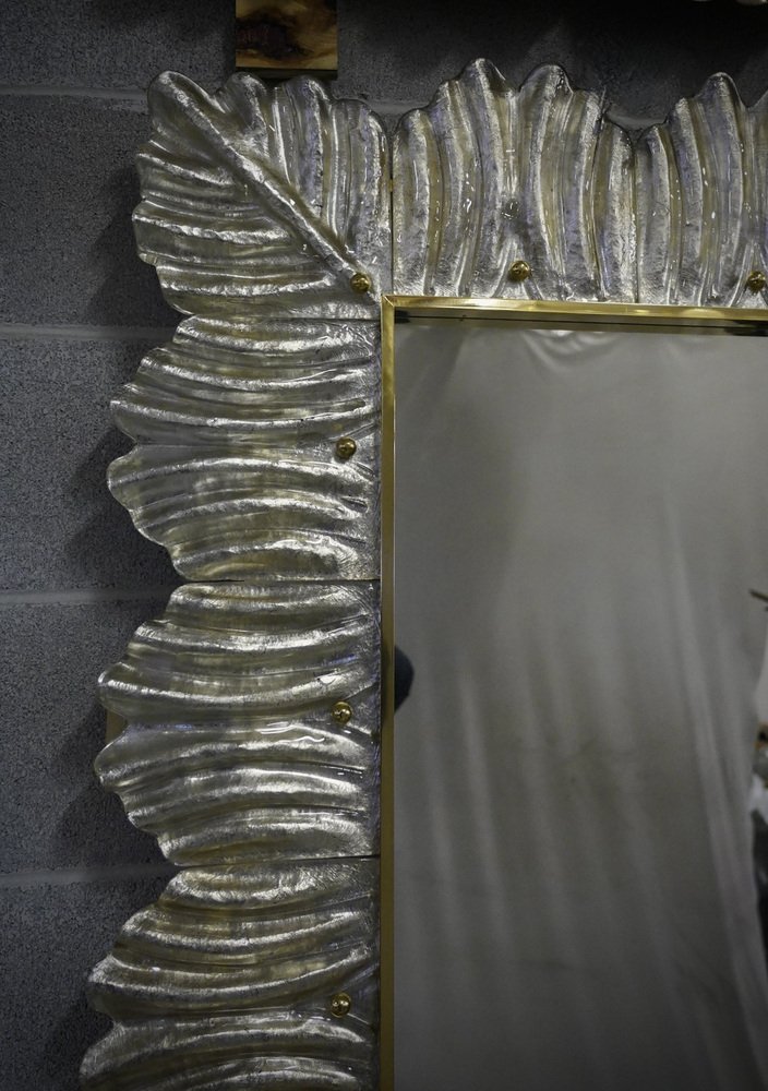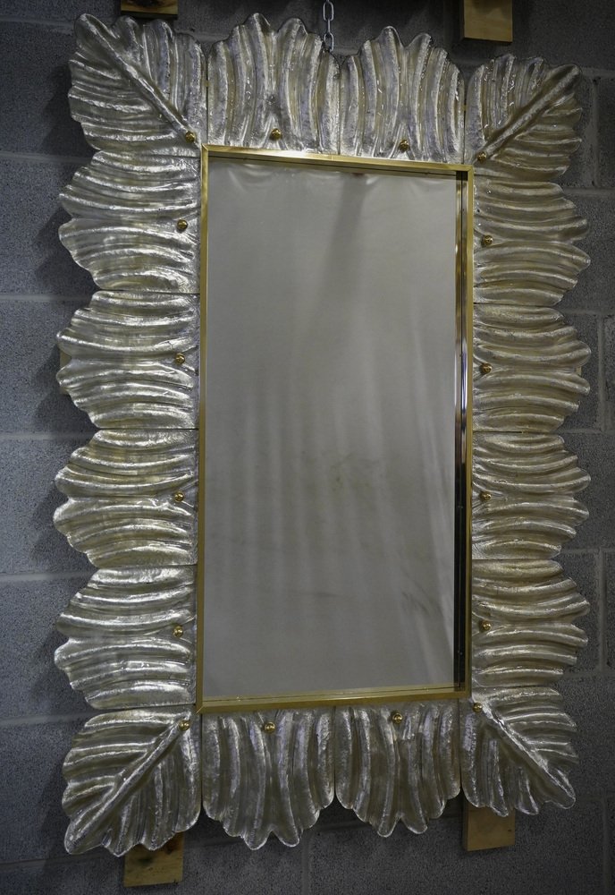 Mid-Century Murano Silver Color Glass and Brass Wall Mirror
