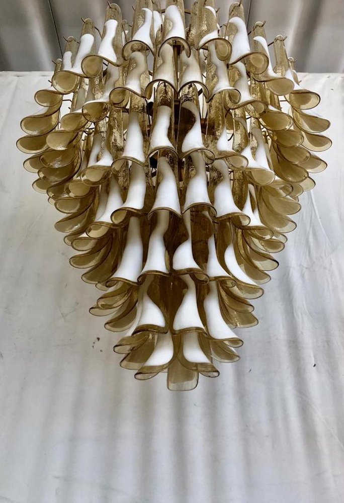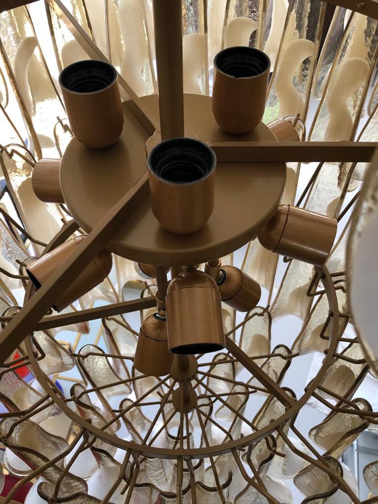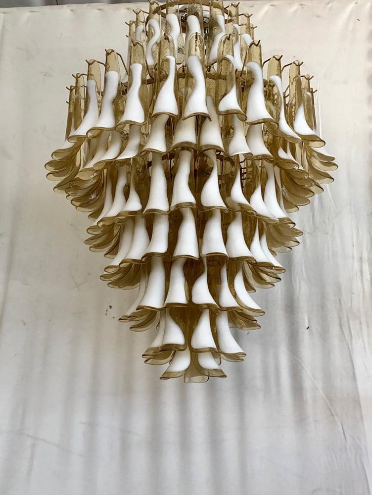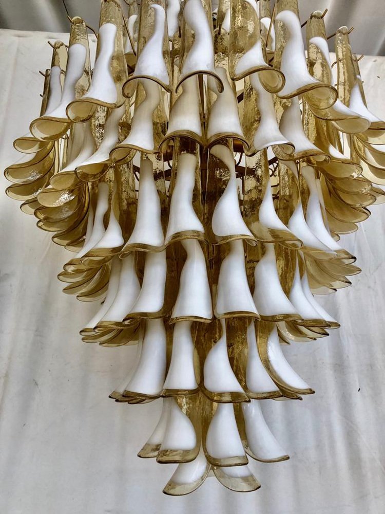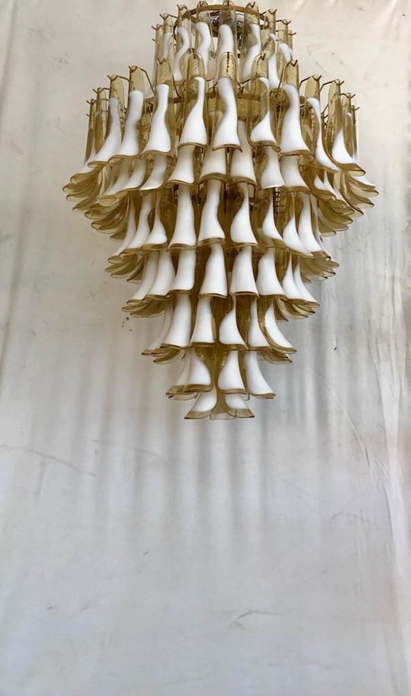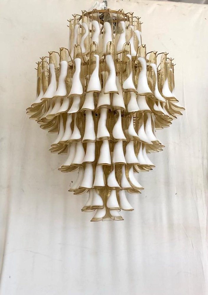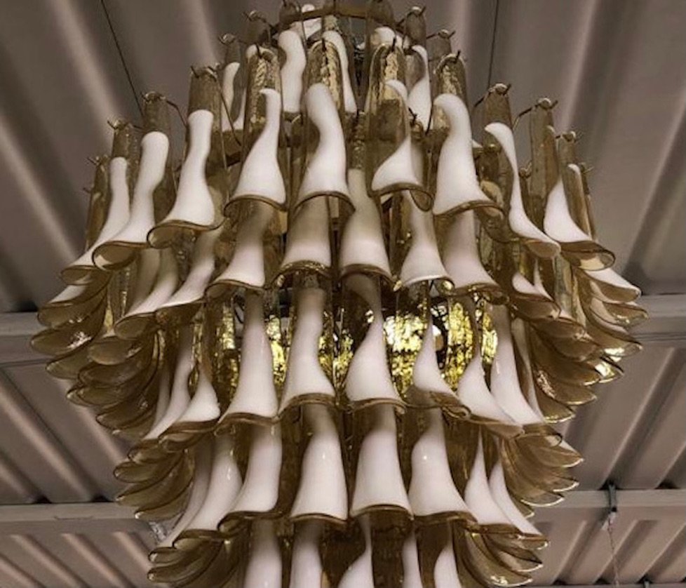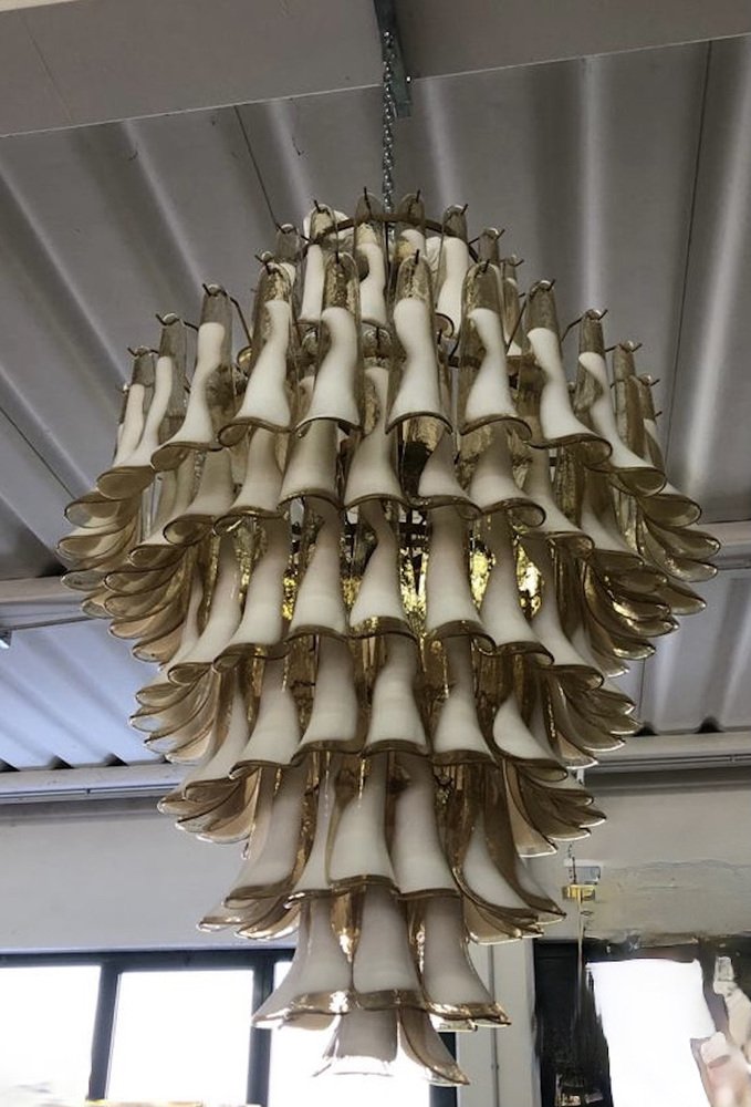 Mid-Century Round Chandelier in White Murano Glass, 2000s