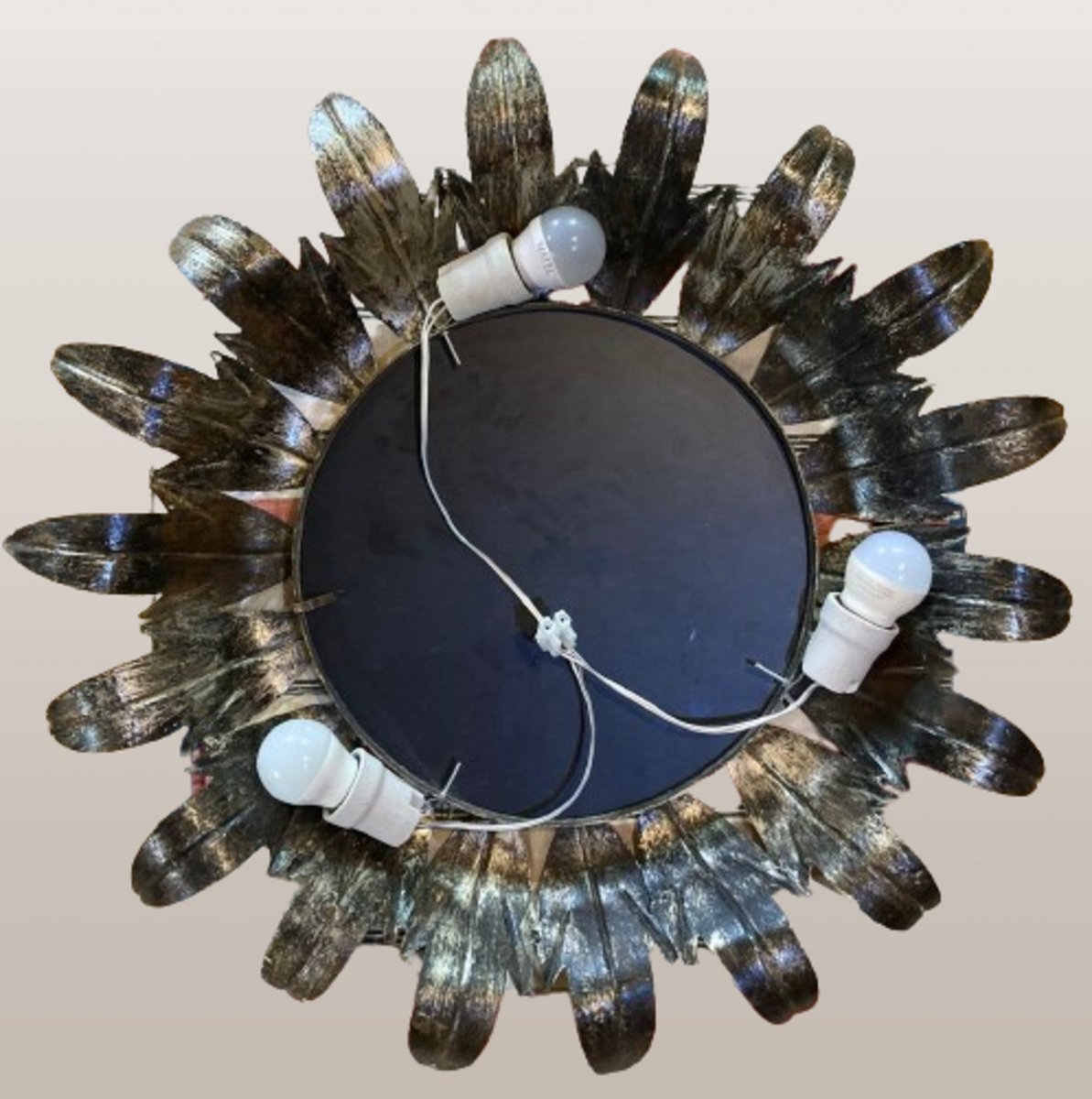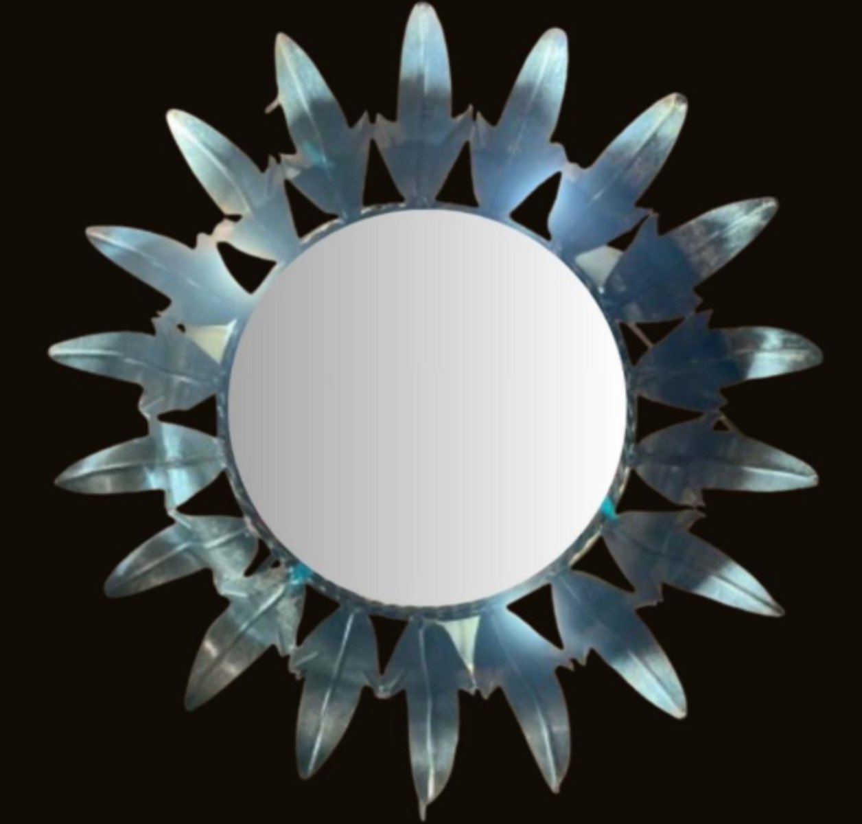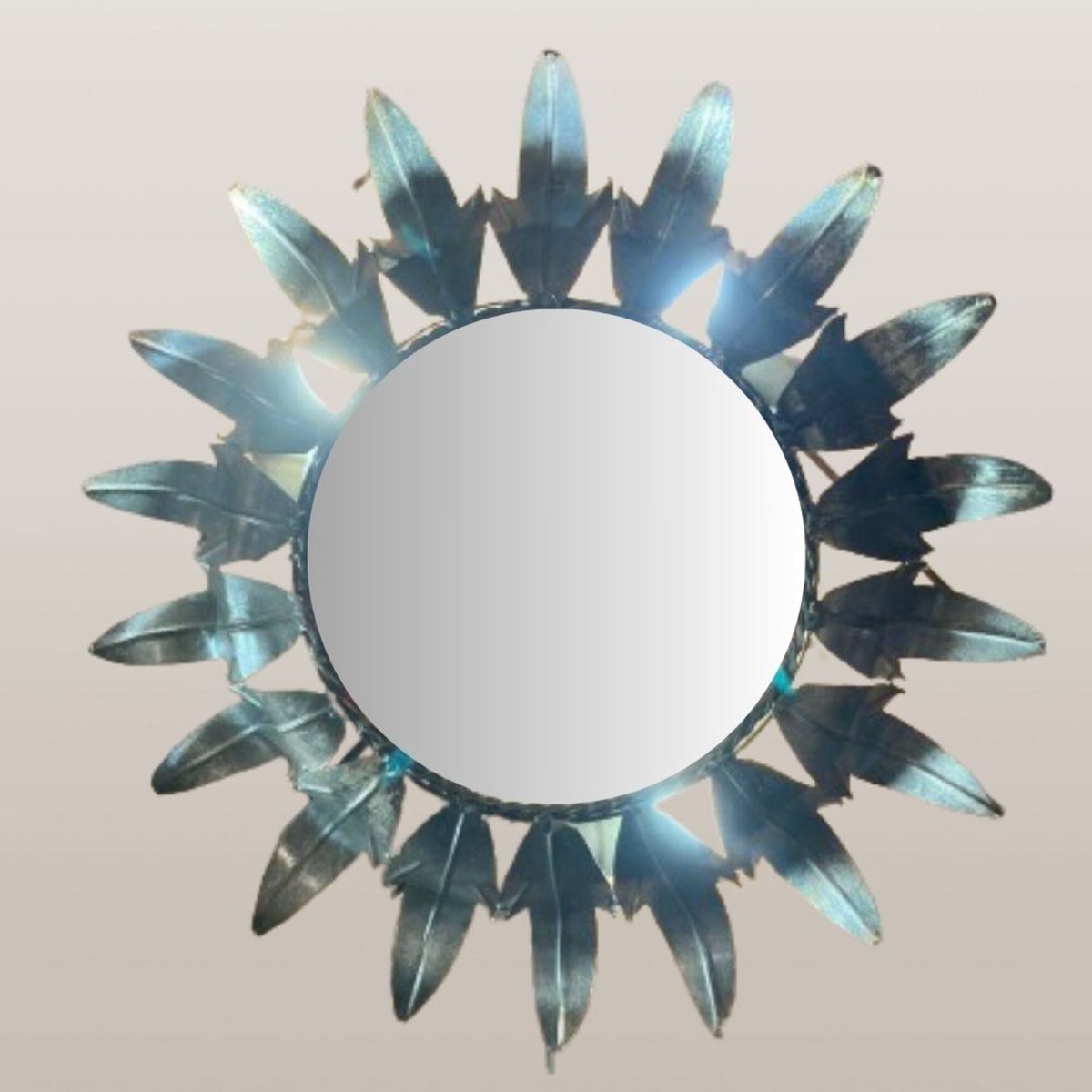 Mid-Century Round Wrought Iron Sheet Sun-Shaped Wall Mirror, 1950s