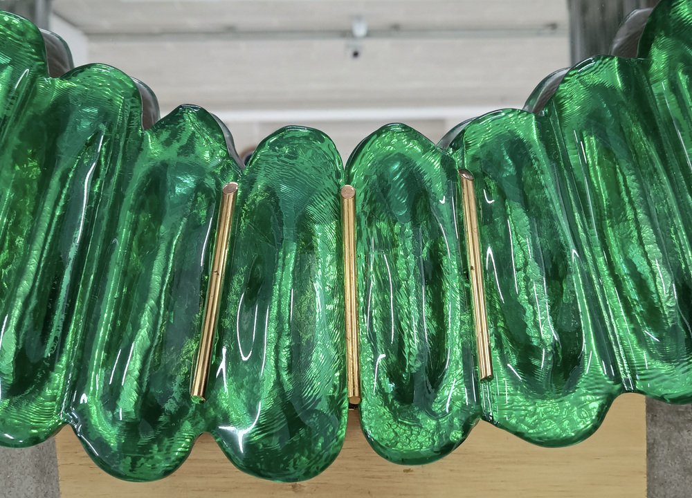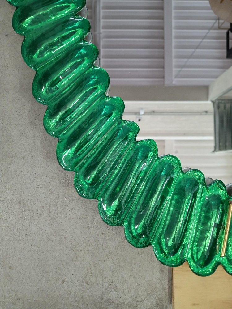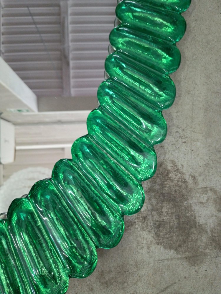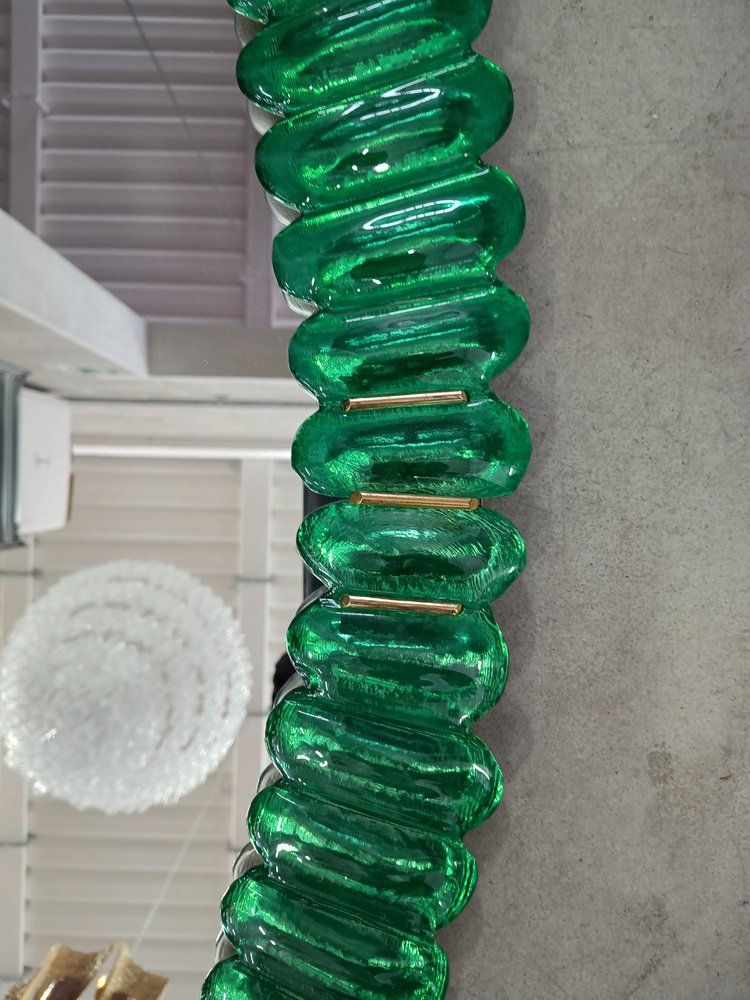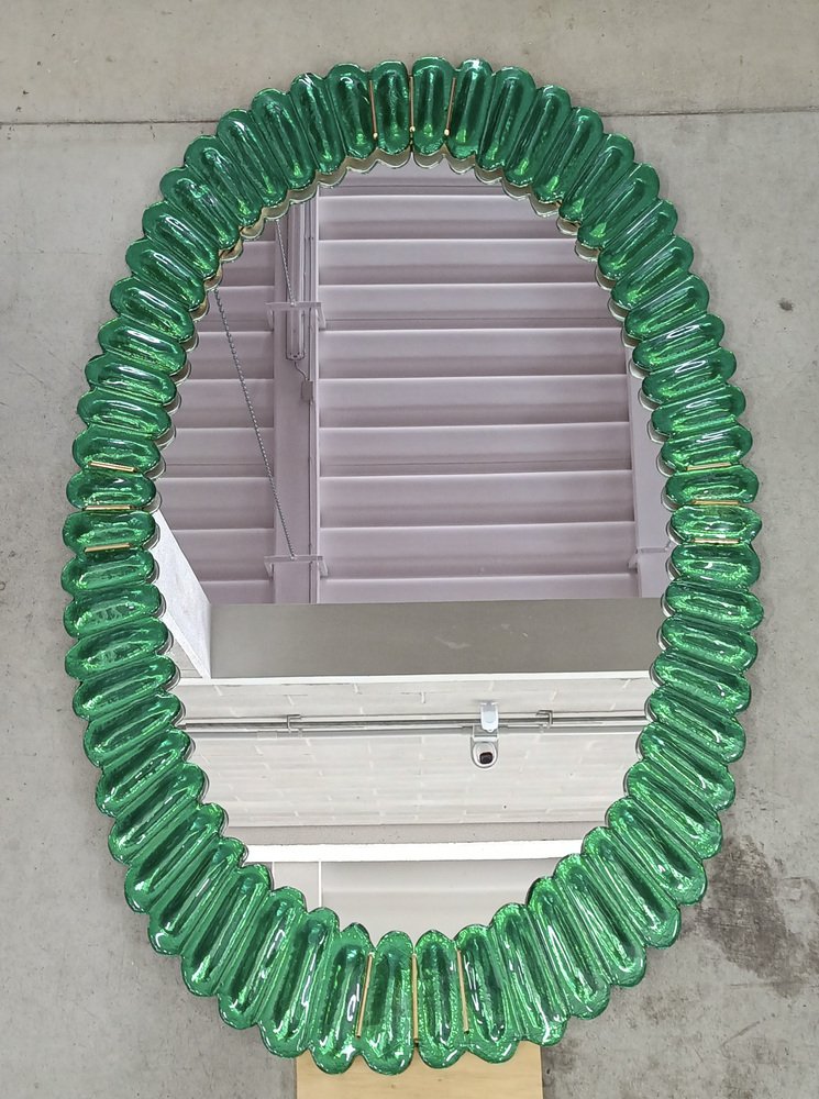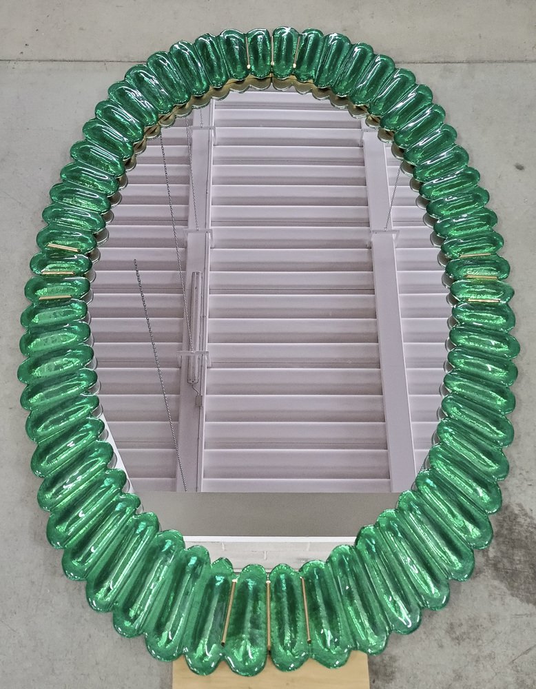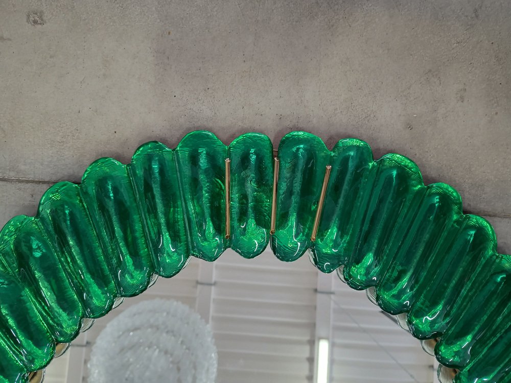 Mid-Century Style Italian Oval Mirror in Murano Glass and Brass, 2000