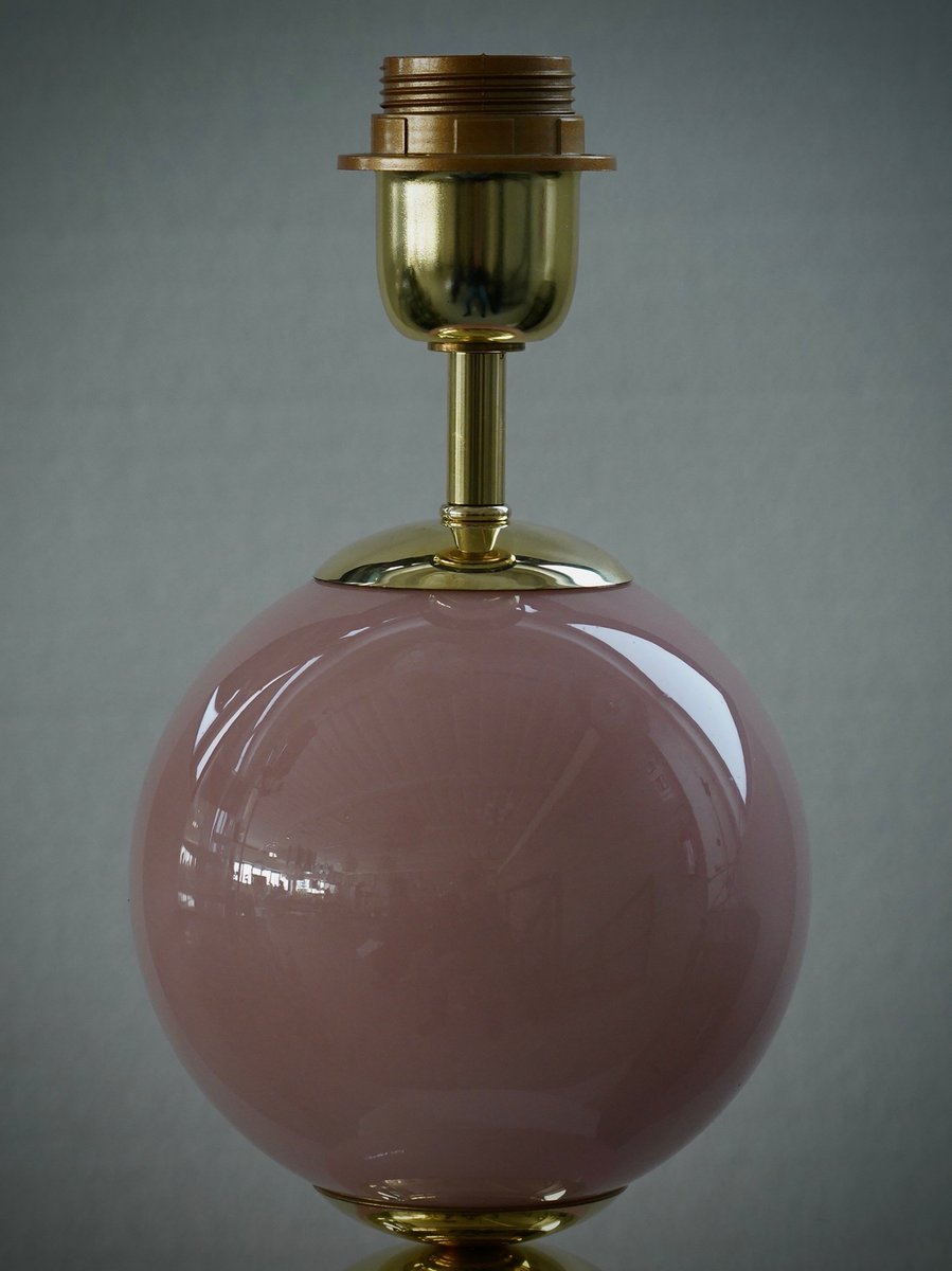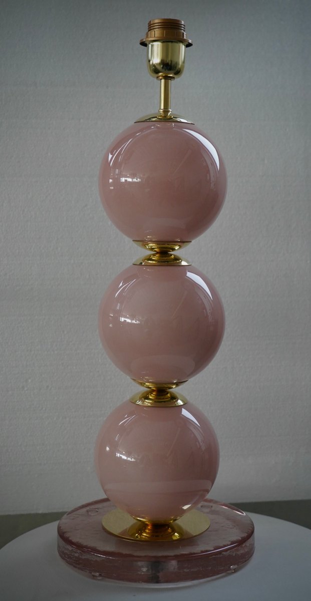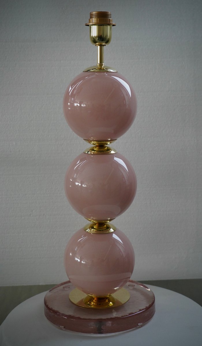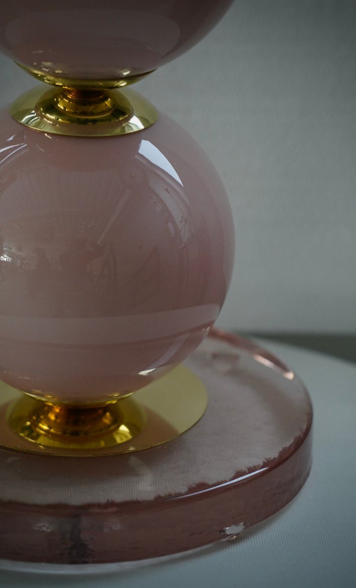 Mid-Century Style Pink Blown Murano Glass and Brass Table Lamp, 2000