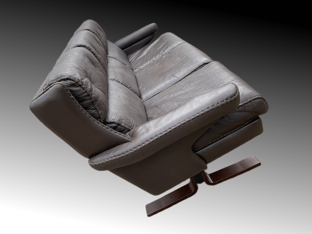 Norell is often praised for pioneering “conceptual” furniture, because he employed traditional materials—leather, turned wood, bentwood, and metal, for example—in unexpected forms, often with lyrical results. His designs have an affinity with those of Danish designer Kaare Klint (1888-1954), who, a generation before, brought time-honored, vernacular forms into modernist expression. In fact, Klint’s iconic Safari Chair (1933) inspired Norell to create the Sirocco Safari Chair (1964), which is lightweight, collapsible, and held together by leather support straps instead of glue or screws. Norell’s wood-framed Inka Armchair, Indra Sofa, and Ilona Sofa (design dates unverified) are likewise held together by leather.
