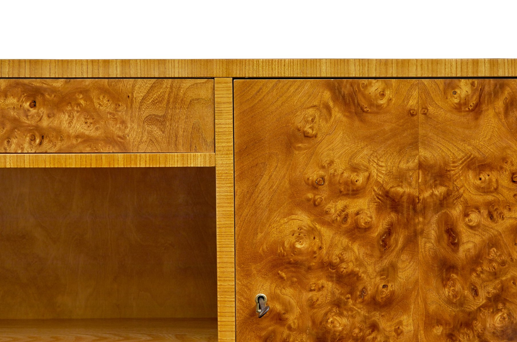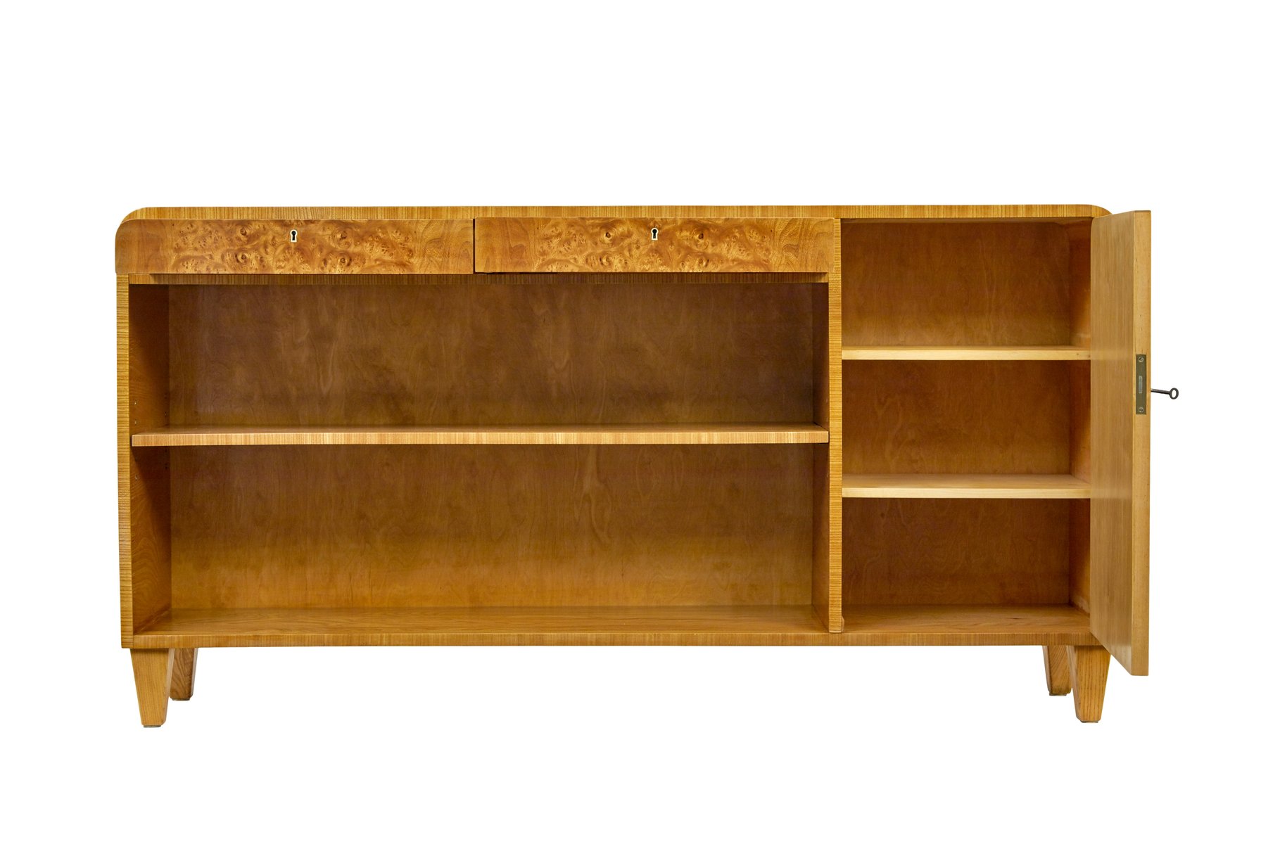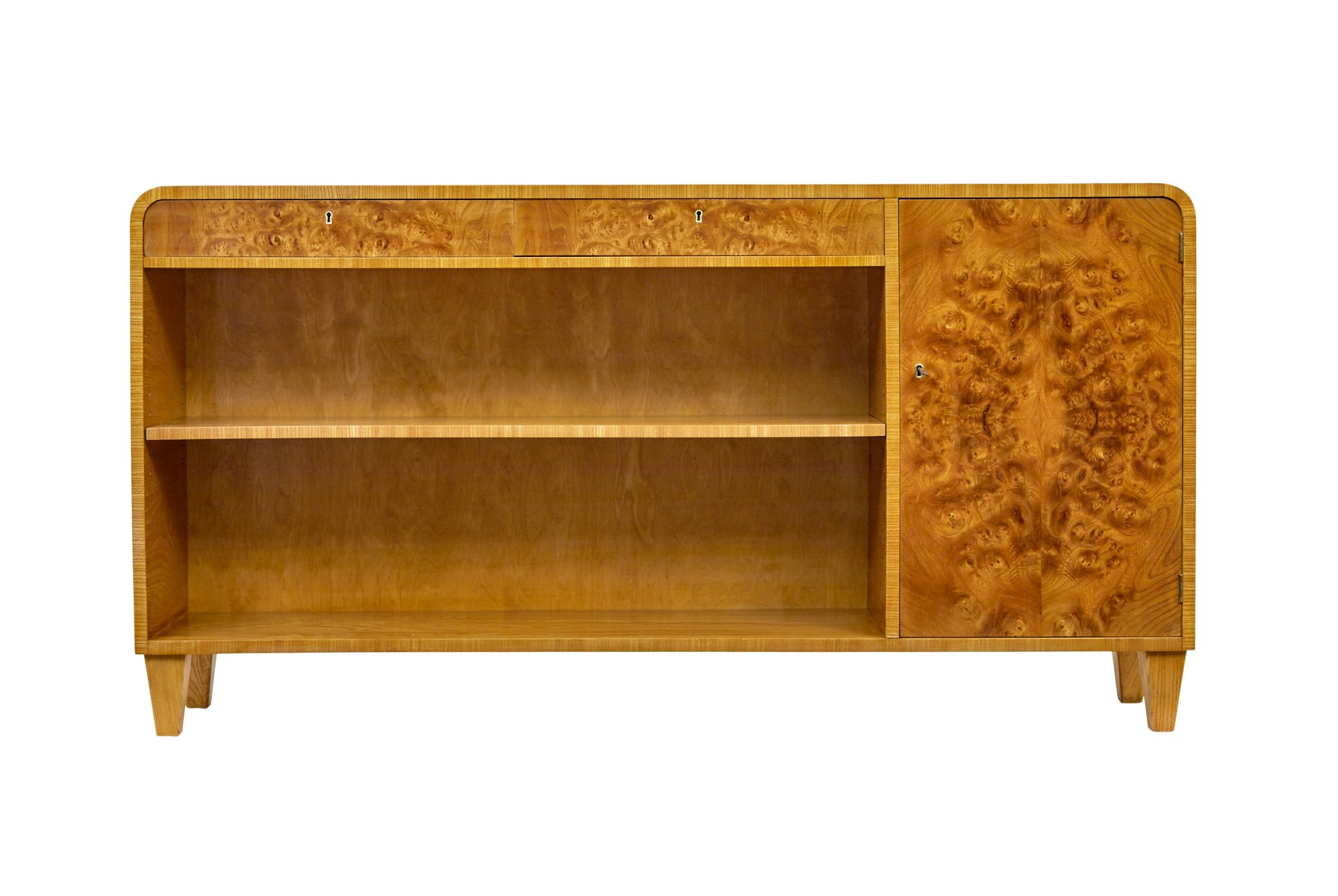 Mid-Century Swedish Burr Elm Low Open Bookcase, 1950