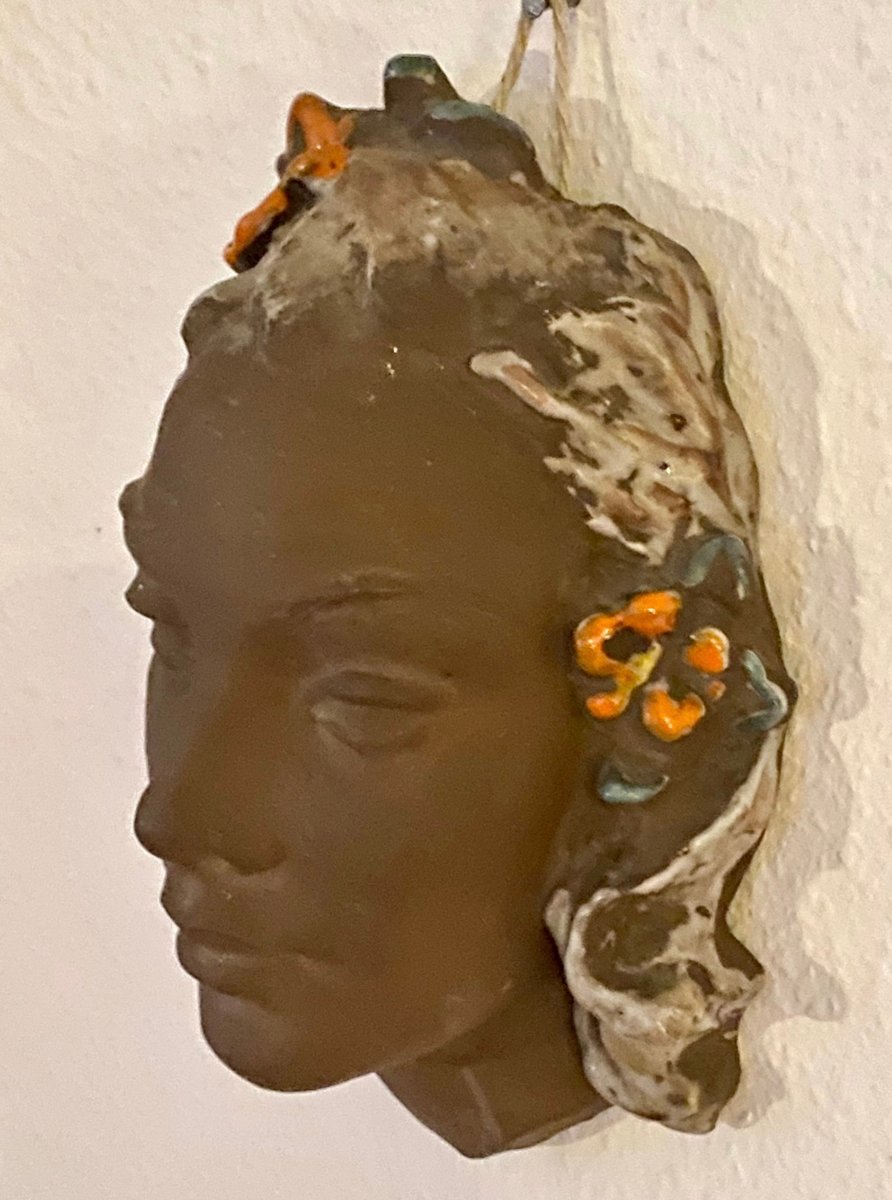 Mid-Century Wall Mask of Woman with Flower Wreath by Lore Friedrich-Gronau for Karlsruhe Majolika, 1958
