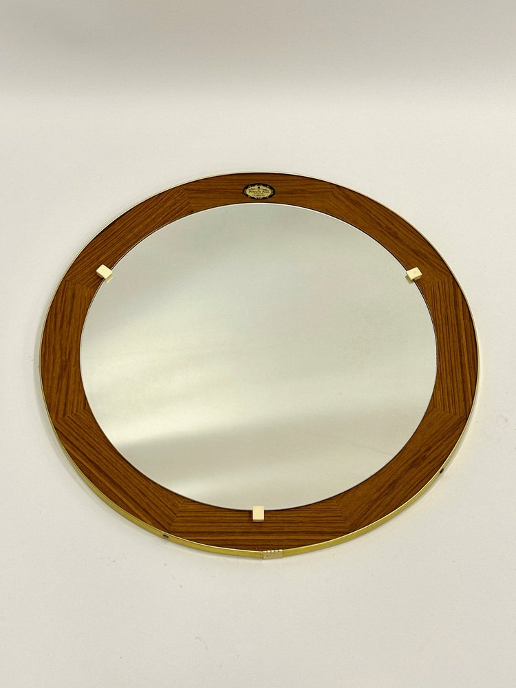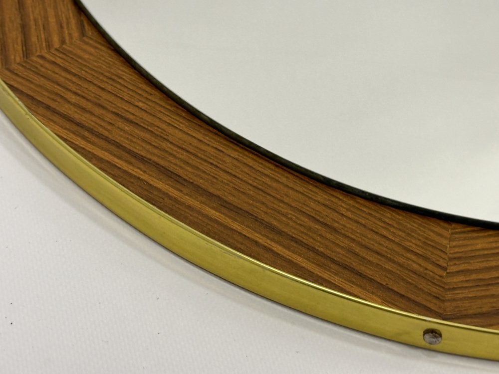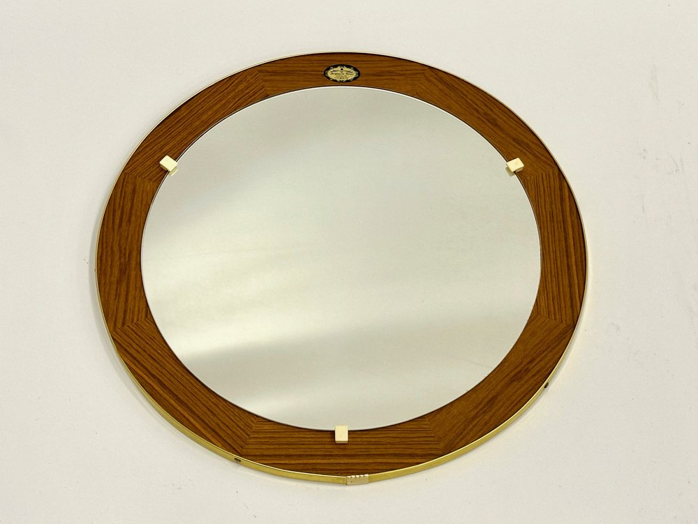Mid-Century Wall Round Mirror in Teak, 1970s