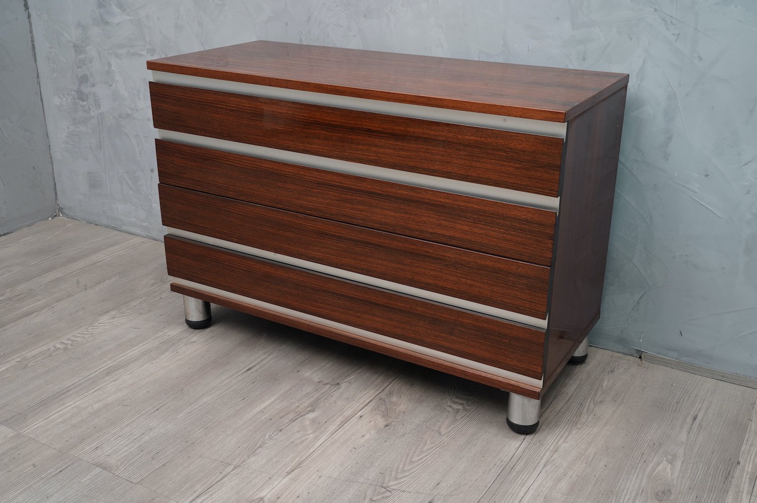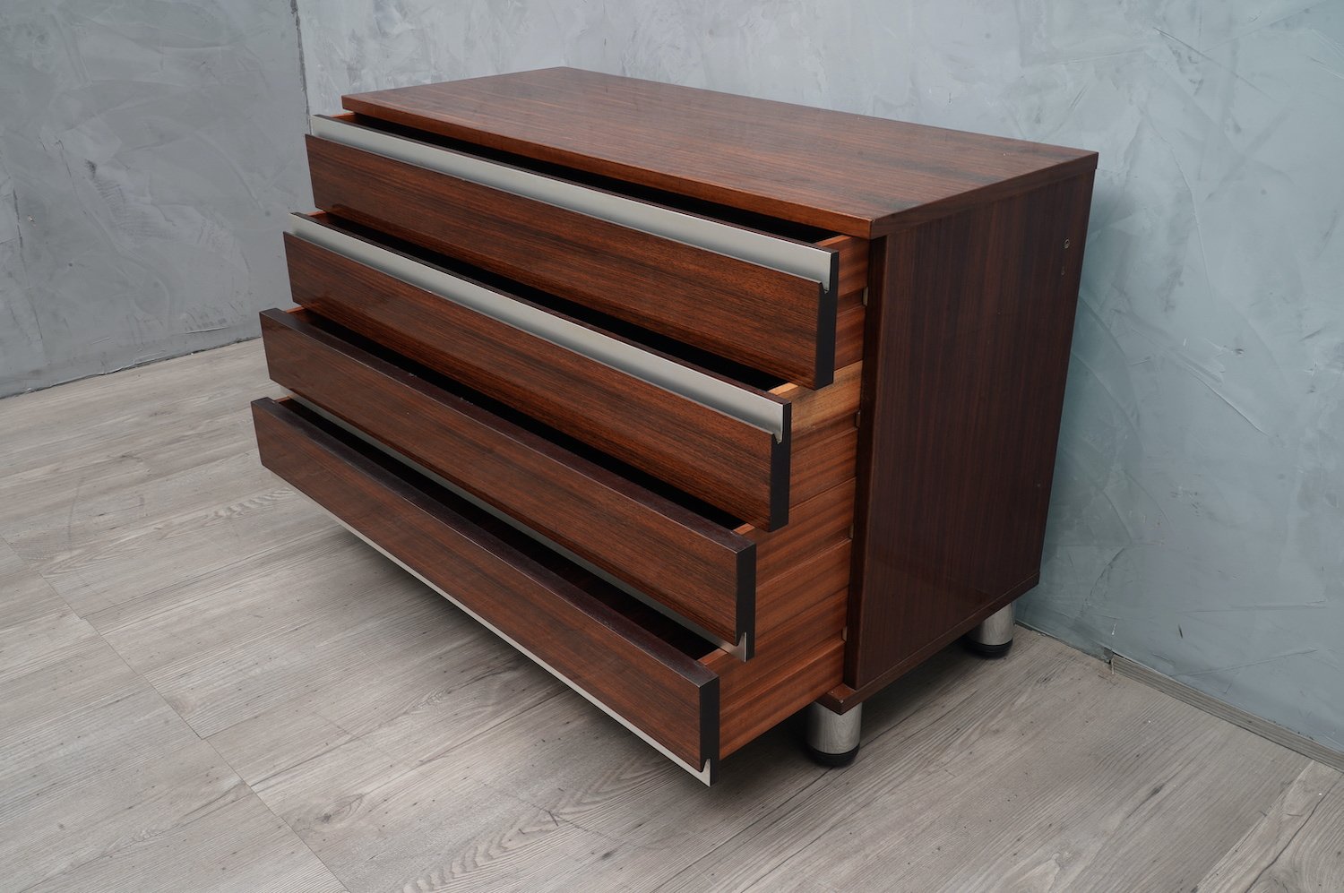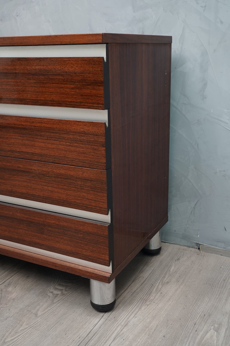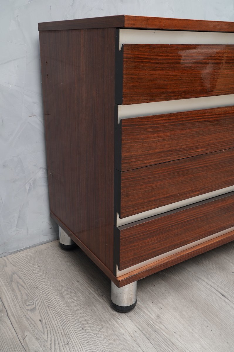 Mid-Century Walnut and Aluminum Office Chest of Drawers by Osvaldo Borsani for MiM, 1960s