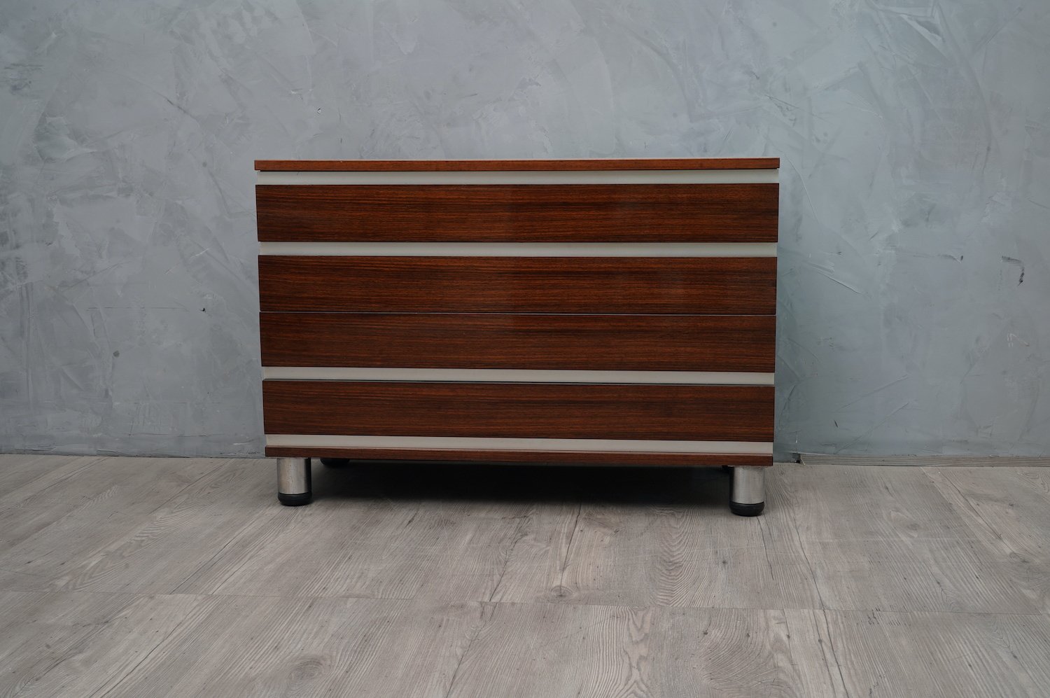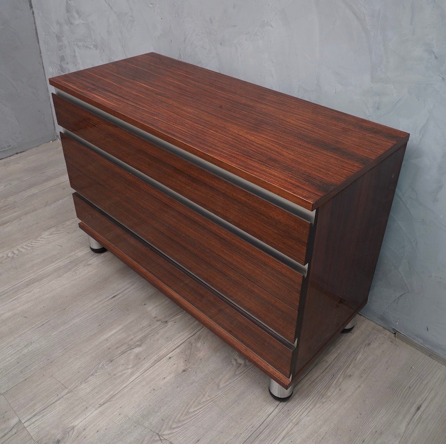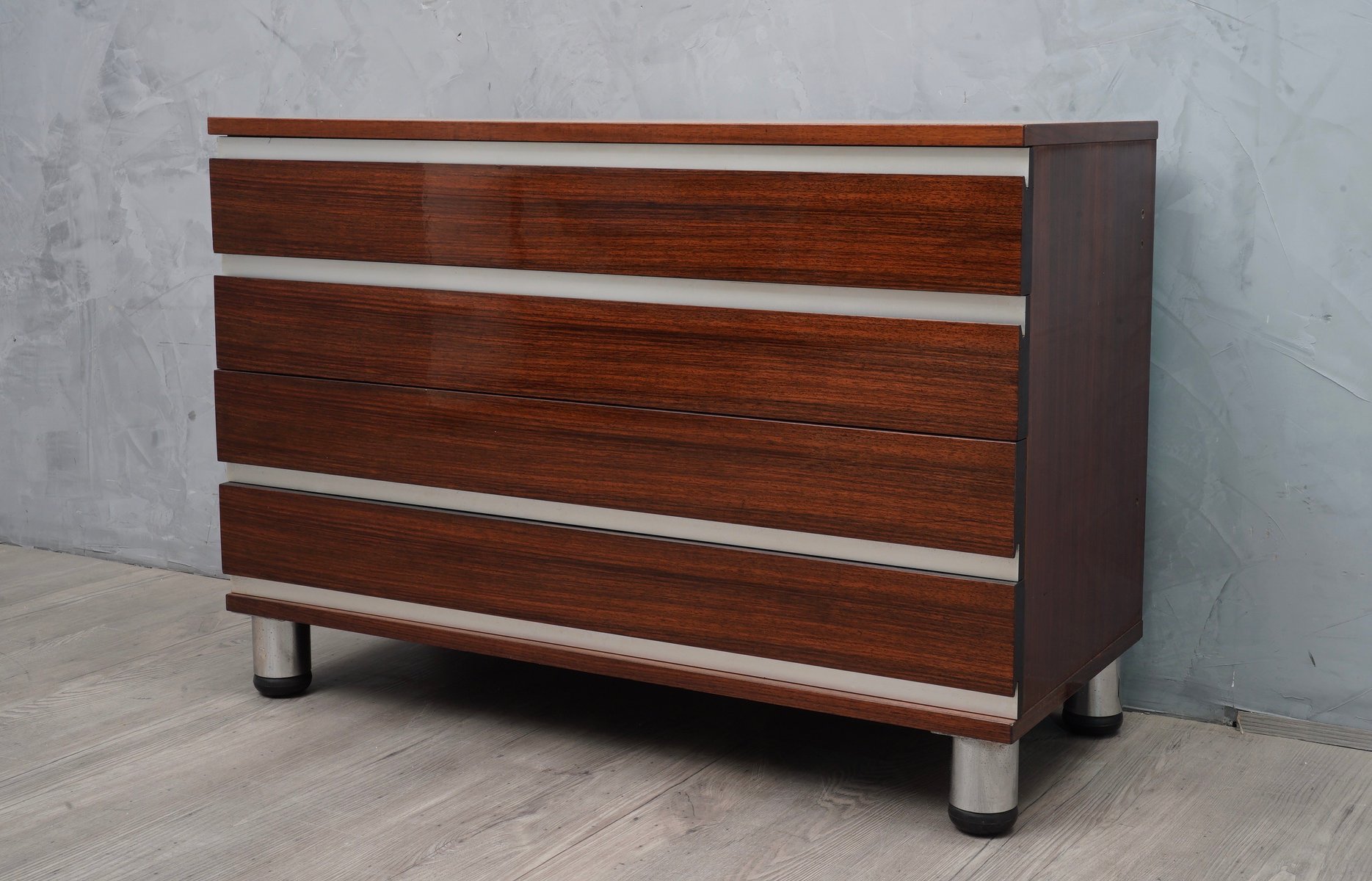 Mid-Century Walnut and Aluminum Office Chest of Drawers by Osvaldo Borsani for MiM, 1960s