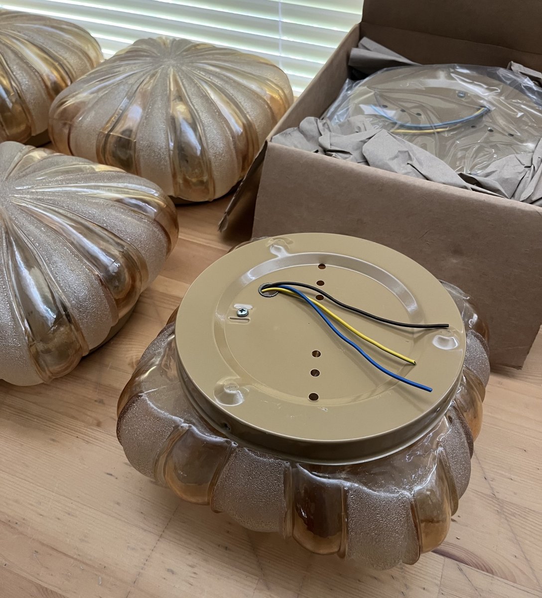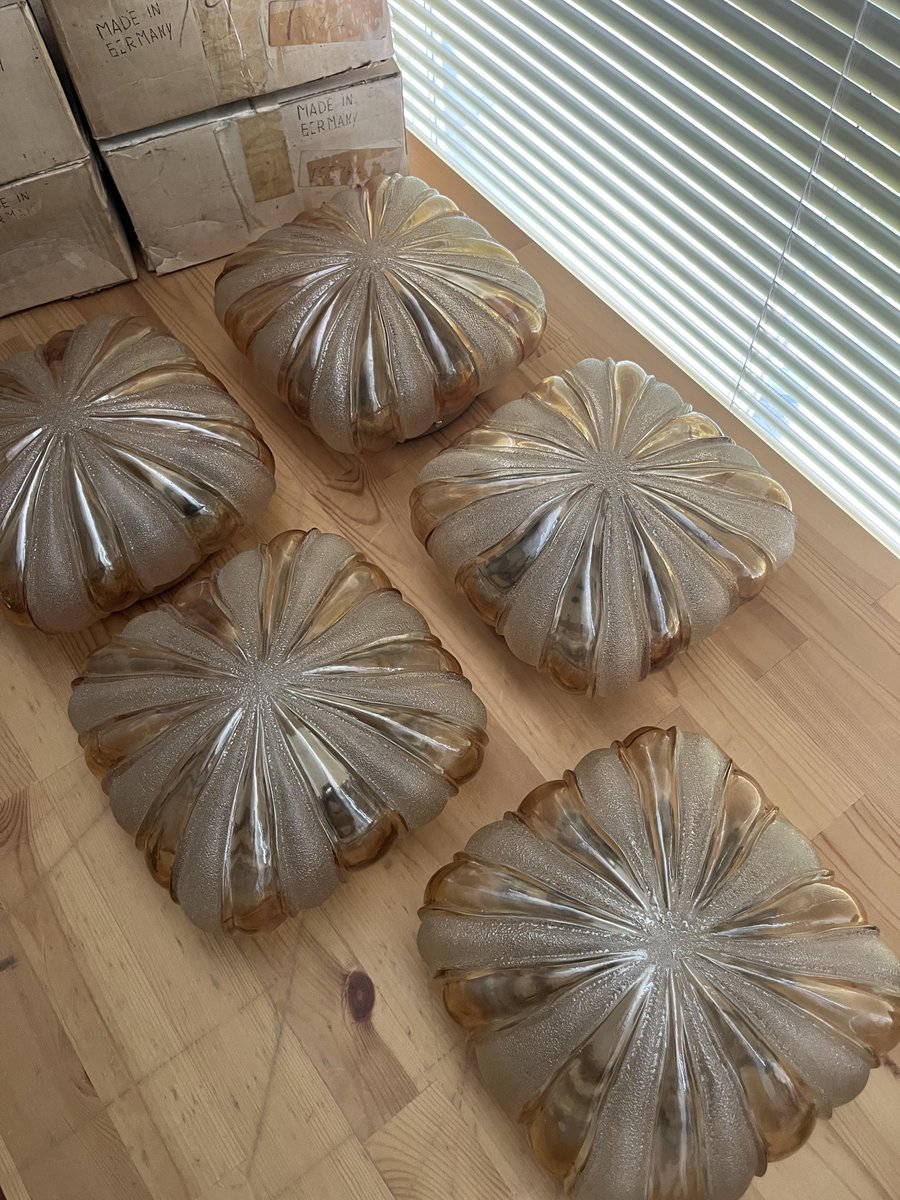 Midcentury Modern German Glass Flush Mounts by Wila Leuchten, 1970s, Set of 2