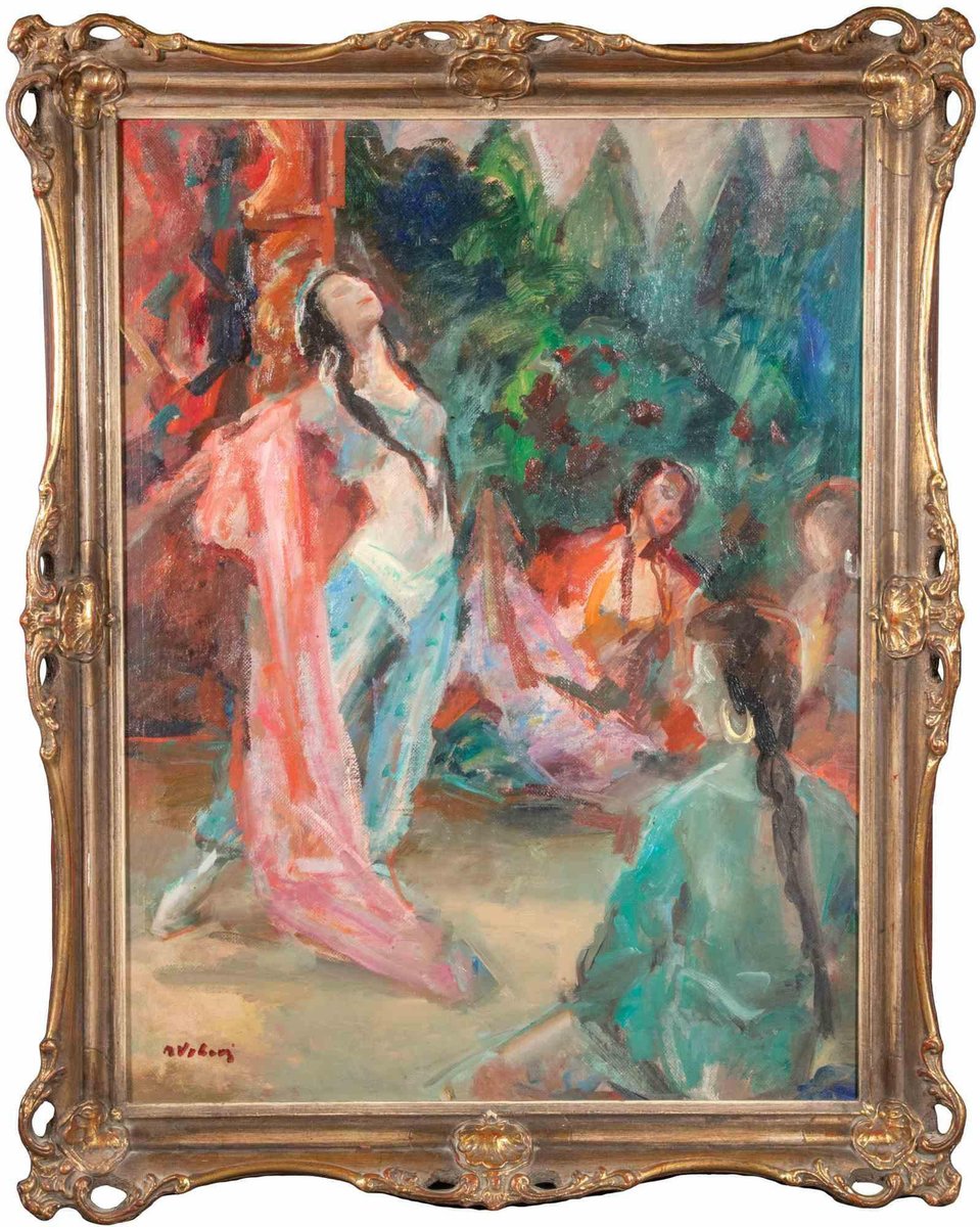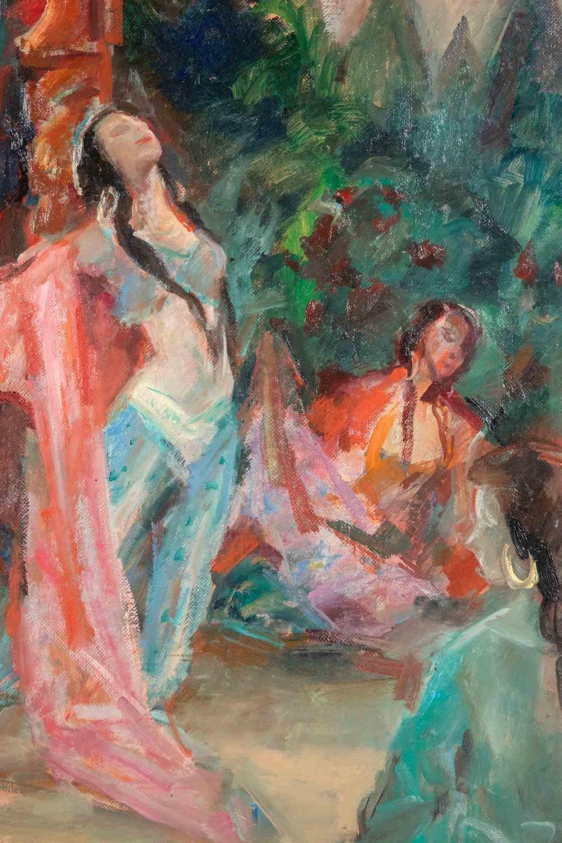 Miloslava Vrbova-Štefková, Orientalist Dance in a Harem, Oil Painting, Mid-20th Century