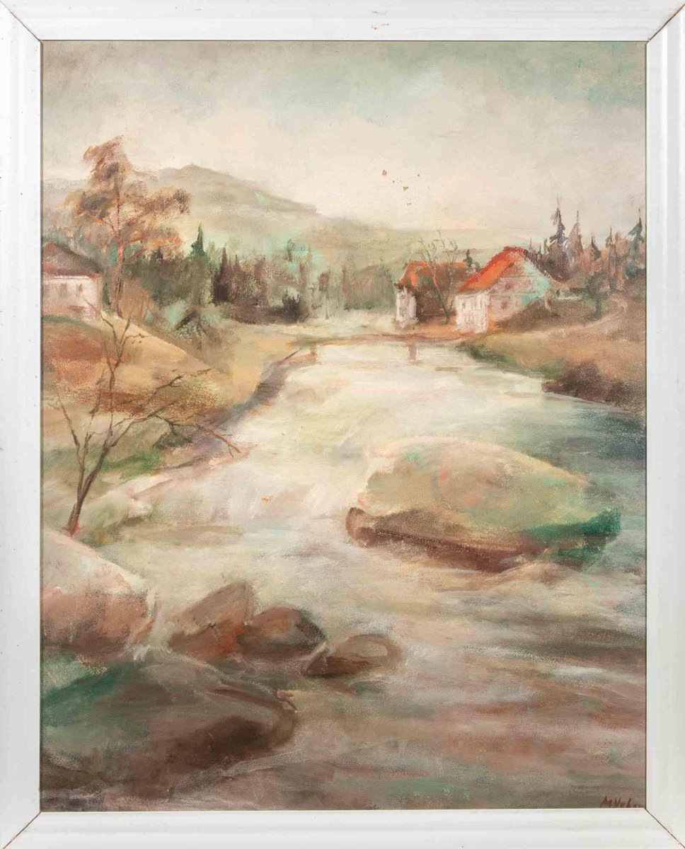 Miloslava Vrbova-Štefková, River Landscape, Oil Painting, Mid-20th Century