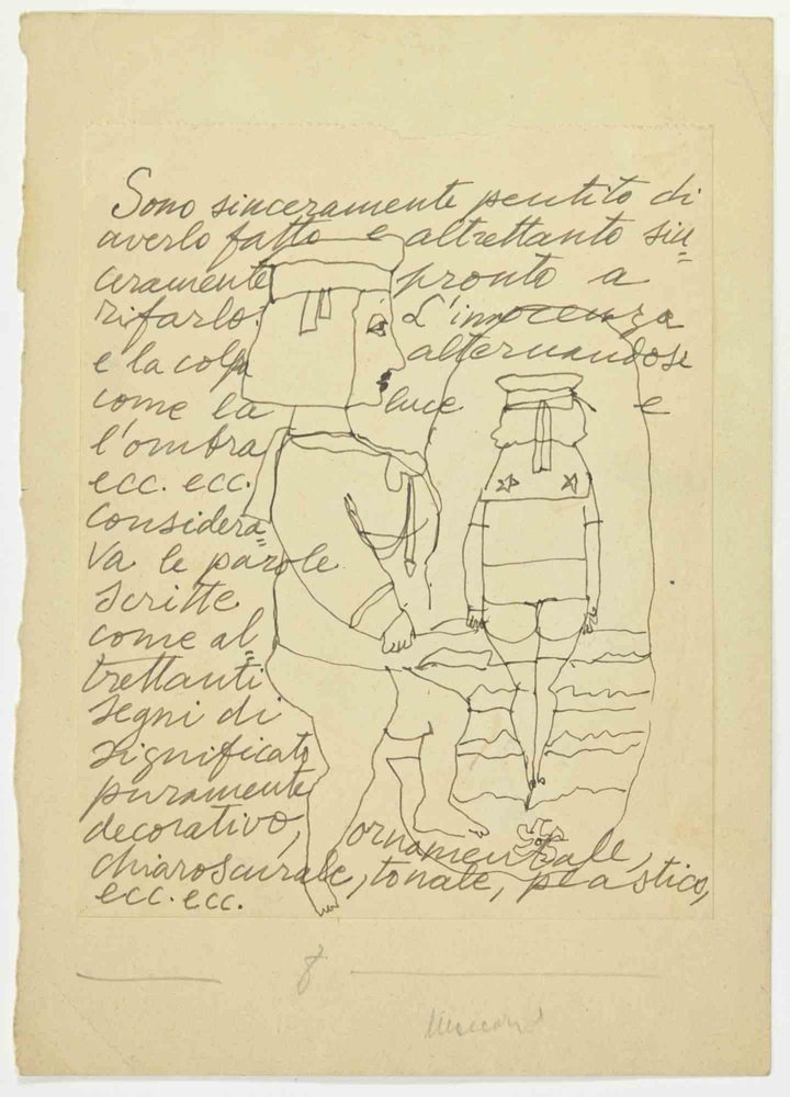 Bather is a Pencil Drawing realized by Mino Maccari (1924-1989) in the 1950s. Hand-signed on the lower. Good condition. Mino Maccari (Siena, 1924-Rome, June 16, 1989) was an Italian writer, painter, engraver and journalist, winner of the Feltrinelli Prize for Painting in 1963 and first winner of the Forte dei Marmi Satira Prize in 1973.After completing his secondary education, he enrolls in university. An interventionist like many young people of his time, he took part in the Great War at the age of nineteen as a field artillery officer. At the end of the conflict he resumed his university studies in Siena and in 1920 he graduated in law. In 1924 he was called by Angiolo Bencini to take care of the printing of the magazine Il Selvaggio, openly uncompromising fascist, revolutionary and anti-bourgeois, where his first engravings were published. After a few years of coexistence between work at the newspaper and the law firm, at the beginning of 1926 he left the legal profession to take over the direction of Il Selvaggio which he would hold until 1942. In 1928 he was the author of the small book published by Vallecchi (Florence), Il Trastullo di Strapaese (little songs and engraved woodwinds) which collected fascist songs (the same book was seized several times from Antonio Gramsci during his detention). with the transfer of the editorial staff of the Selvaggio in 1925 from Colle di Val d'Elsa to Florence, Maccari collaborated with Ardengo Soffici, Ottone Rosai and Achille Lega. In the meantime, between 1927 and 1930, he made himself known to the general public as a painter by participating in various national exhibitions. Also in 1930 Maccari works in Turin at La Stampa as editor-in-chief and has the writer Curzio Malaparte as director. His presence in the cultural and editorial world of the fascist regime is very intense, he writes and collaborates with various magazines: Quadrivio, L'Italia Letteraria, L'Italiano and Omnibus by Leo Longanesi; then, during the war, in il Primato di Bottai and, subsequently again, in Il Mondo di Pannunzio (from the first number, in 1949), up to Documento by Federigo Valli. His graphic production is also vast, ranging from the Album of Vallecchi (1925), Il trastullo di Strapaese (1928) to Linoleum (1931). Maccari illustrated in 1934 La vecchia del Bal Bullier by Antonio Baldini and in 1942 he published the Album folder, followed by Come quando fuori Piove and Il superfluo illustrata.For his pictorial work full of evident chromatic accentuations and fast brushstrokes, the violent drawing combined with the lively stroke of the graphic sign of his engravings, he is recognized by critics as a complete artist. In 1962 he was also entrusted with the presidency of the Accademia di San Luca in Rome and managed to obtain a personal exhibition at Gallery 63 in New York. His production of drawings, watercolors, temperas, etc. is endless, sometimes in collaboration with prestigious publishing houses; it is worth mentioning, just as an excellent example, the 32 b/w and color drawings with which he illustrated Il gusto di vivere, a volume that collects writings by Giancarlo Fusco, edited by Natalia Aspesi and published by Laterza in 1985. Maccari, Sienese and great contradaiolo della Torre, painted the Palio of 16 August 1970 won by Selva. In 1973 he was awarded the Political Satire Award of Forte dei Marmi, an award born in that year. He died without great fanfare, in silence, at the age of ninety, in Rome on June 16, 1989.