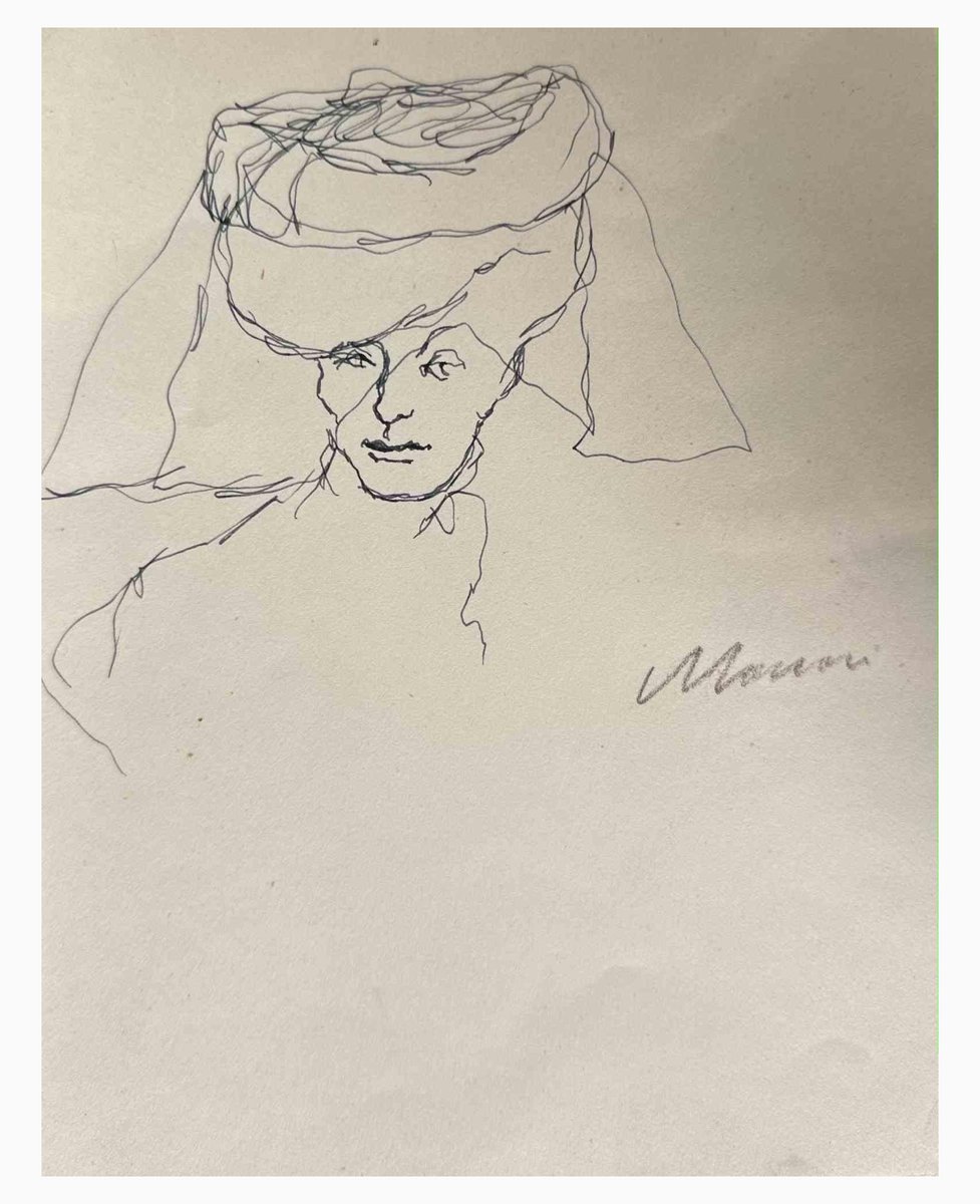 Lady with Lace Hat is a pen Drawing realized by Mino Maccari (1924-1989) in the 1960s. Hand-signed on the lower. Good conditions. Mino Maccari (Siena, 1924-Rome, June 16, 1989) was an Italian writer, painter, engraver and journalist, winner of the Feltrinelli Prize for Painting in 1963 and first winner of the Forte dei Marmi Satira Prize in 1973.After completing his secondary education, he enrolls in university. An interventionist like many young people of his time, he took part in the Great War at the age of nineteen as a field artillery officer. At the end of the conflict he resumed his university studies in Siena and in 1920 he graduated in law. In 1924 he was called by Angiolo Bencini to take care of the printing of the magazine Il Selvaggio, openly uncompromising fascist, revolutionary and anti-bourgeois, where his first engravings were published. After a few years of coexistence between work at the newspaper and the law firm, at the beginning of 1926 he left the legal profession to take over the direction of Il Selvaggio which he would hold until 1942. In 1928 he was the author of the small book published by Vallecchi (Florence), Il Trastullo di Strapaese (little songs and engraved woodwinds) which collected fascist songs (the same book was seized several times from Antonio Gramsci during his detention). with the transfer of the editorial staff of the Selvaggio in 1925 from Colle di Val d'Elsa to Florence, Maccari collaborated with Ardengo Soffici, Ottone Rosai and Achille Lega. In the meantime, between 1927 and 1930, he made himself known to the general public as a painter by participating in various national exhibitions. Also in 1930 Maccari works in Turin at La Stampa as editor-in-chief and has the writer Curzio Malaparte as director. His presence in the cultural and editorial world of the fascist regime is very intense, he writes and collaborates with various magazines: Quadrivio, L'Italia Letteraria, L'Italiano and Omnibus by Leo Longanesi; then, during the war, in il Primato di Bottai and, subsequently again, in Il Mondo di Pannunzio (from the first number, in 1949), up to Documento by Federigo Valli. His graphic production is also vast, ranging from the Album of Vallecchi (1925), Il trastullo di Strapaese (1928) to Linoleum (1931). Maccari illustrated in 1934 La vecchia del Bal Bullier by Antonio Baldini and in 1942 he published the Album folder, followed by Come quando fuori Piove and Il superfluo illustrata.For his pictorial work full of evident chromatic accentuations and fast brushstrokes, the violent drawing combined with the lively stroke of the graphic sign of his engravings, he is recognized by critics as a complete artist. In 1962 he was also entrusted with the presidency of the Accademia di San Luca in Rome and managed to obtain a personal exhibition at Gallery 63 in New York. His production of drawings, watercolors, temperas, etc. is endless, sometimes in collaboration with prestigious publishing houses; it is worth mentioning, just as an excellent example, the 32 b/w and color drawings with which he illustrated Il gusto di vivere, a volume that collects writings by Giancarlo Fusco, edited by Natalia Aspesi and published by Laterza in 1985. Maccari, Sienese and great contradaiolo della Torre, painted the Palio of 16 August 1970 won by Selva. In 1973 he was awarded the Political Satire Award of Forte dei Marmi, an award born in that year. He died without great fanfare, in silence, at the age of ninety, in Rome on June 16, 1989.