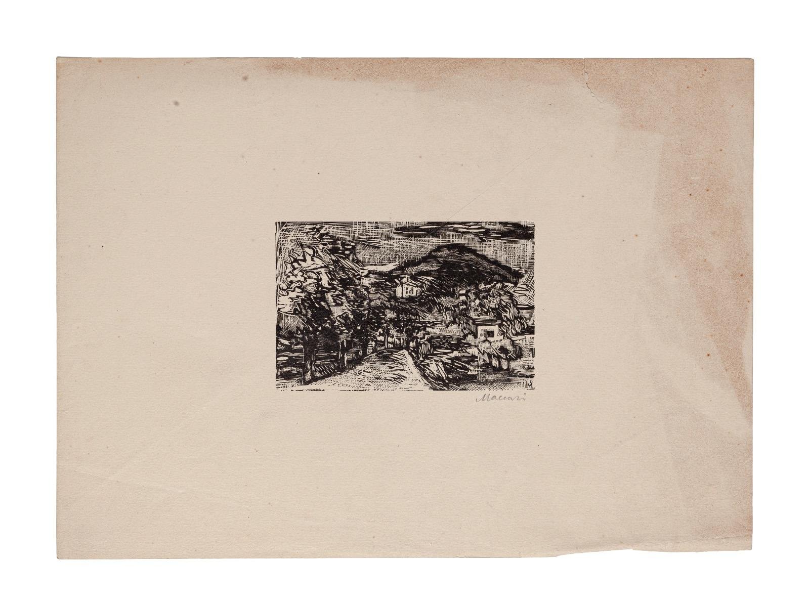 Mino Maccari, Landscape, Original Woodcut Print on Paper, Mid-20th Century