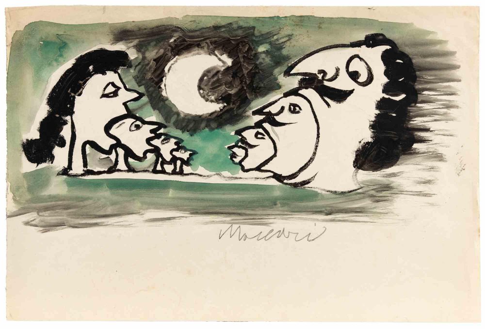 Mino Maccari, Lunar Landscape, Drawing on Paper, 1950s