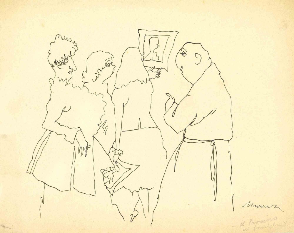 The Exhibition is a China ink Drawing realized by Mino Maccari (1924-1989) in the 1960s. Hand-signed on the lower. Good condition. Mino Maccari (Siena, 1924-Rome, June 16, 1989) was an Italian writer, painter, engraver and journalist, winner of the Feltrinelli Prize for Painting in 1963 and first winner of the Forte dei Marmi Satira Prize in 1973.After completing his secondary education, he enrolls in university. An interventionist like many young people of his time, he took part in the Great War at the age of nineteen as a field artillery officer. At the end of the conflict he resumed his university studies in Siena and in 1920 he graduated in law. In 1924 he was called by Angiolo Bencini to take care of the printing of the magazine Il Selvaggio, openly uncompromising fascist, revolutionary and anti-bourgeois, where his first engravings were published. After a few years of coexistence between work at the newspaper and the law firm, at the beginning of 1926 he left the legal profession to take over the direction of Il Selvaggio which he would hold until 1942. In 1928 he was the author of the small book published by Vallecchi (Florence), Il Trastullo di Strapaese (little songs and engraved woodwinds) which collected fascist songs (the same book was seized several times from Antonio Gramsci during his detention). with the transfer of the editorial staff of the Selvaggio in 1925 from Colle di Val d'Elsa to Florence, Maccari collaborated with Ardengo Soffici, Ottone Rosai and Achille Lega. In the meantime, between 1927 and 1930, he made himself known to the general public as a painter by participating in various national exhibitions. Also in 1930 Maccari works in Turin at La Stampa as editor-in-chief and has the writer Curzio Malaparte as director. His presence in the cultural and editorial world of the fascist regime is very intense, he writes and collaborates with various magazines: Quadrivio, L'Italia Letteraria, L'Italiano and Omnibus by Leo Longanesi; then, during the war, in il Primato di Bottai and, subsequently again, in Il Mondo di Pannunzio (from the first number, in 1949), up to Documento by Federigo Valli. His graphic production is also vast, ranging from the Album of Vallecchi (1925), Il trastullo di Strapaese (1928) to Linoleum (1931). Maccari illustrated in 1934 La vecchia del Bal Bullier by Antonio Baldini and in 1942 he published the Album folder, followed by Come quando fuori Piove and Il superfluo illustrata.For his pictorial work full of evident chromatic accentuations and fast brushstrokes, the violent drawing combined with the lively stroke of the graphic sign of his engravings, he is recognized by critics as a complete artist. In 1962 he was also entrusted with the presidency of the Accademia di San Luca in Rome and managed to obtain a personal exhibition at Gallery 63 in New York. His production of drawings, watercolors, temperas, etc. is endless, sometimes in collaboration with prestigious publishing houses; it is worth mentioning, just as an excellent example, the 32 b/w and color drawings with which he illustrated Il gusto di vivere, a volume that collects writings by Giancarlo Fusco, edited by Natalia Aspesi and published by Laterza in 1985. Maccari, Sienese and great contradaiolo della Torre, painted the Palio of 16 August 1970 won by Selva. In 1973 he was awarded the Political Satire Award of Forte dei Marmi, an award born in that year. He died without great fanfare, in silence, at the age of ninety, in Rome on June 16, 1989.