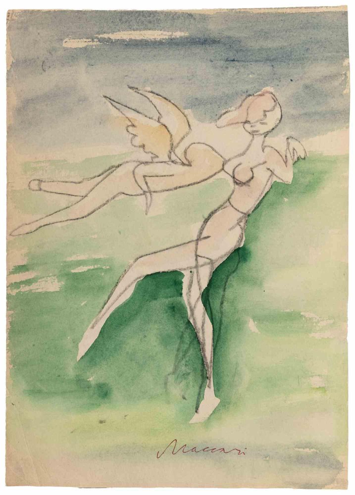 Mino Maccari, The Kiss of the Angel, Nude, Drawing on Paper, 1955