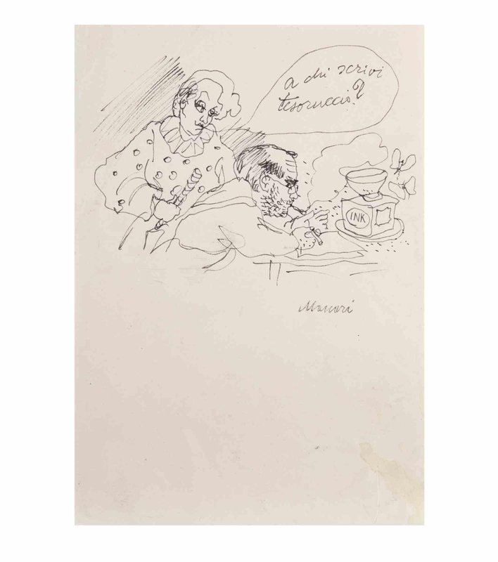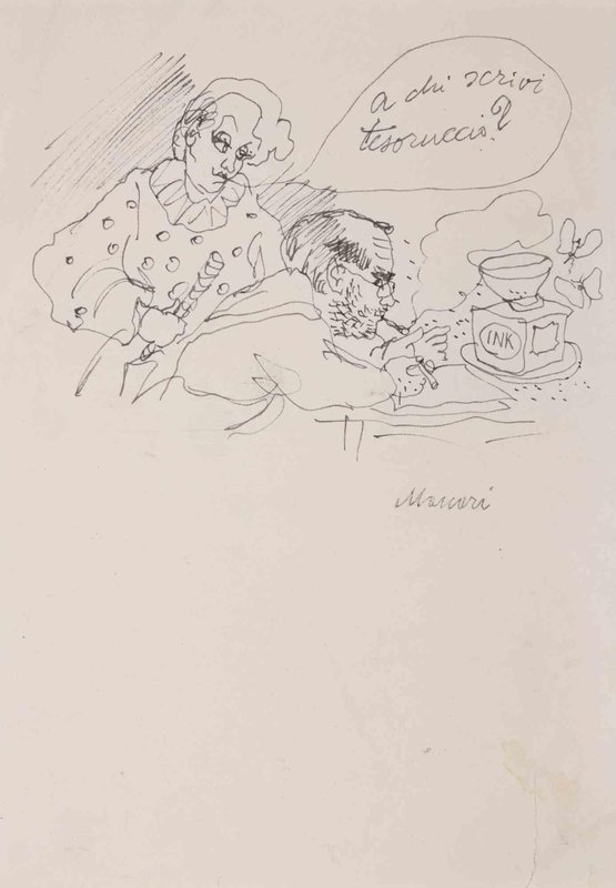 Mino Maccari, Who are you writing to, darling?, 1960s, Paper