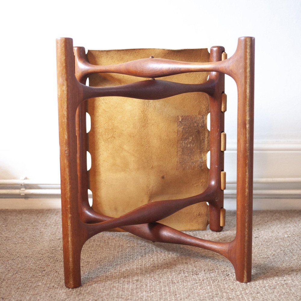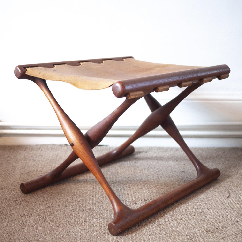 In 1960, Hundevad began production of the Guldhøj Chair (1950s), a reinterpretation of an ancient Nordic folding chair of the same name. The original version was first excavated in 1891 from a burial mound in Vamdrup and is the oldest preserved piece of furniture in Scandinavia, dating back to the Scandinavian Bronze Age, around the second half of the 1400s BC. Working with the National Museum of Denmark where the relic is housed, Hundevad took precise measurements and calculated ways to streamline the design for production. Using four types of wood—oak, teak, wenge, and rosewood—along with leather for the seat, Hundevad’s reproduction was an instant success, producing more than 15,000 copies, which were sold worldwide. The chair is still in production and can be purchased at the National Museum of Denmark’s gift shop.