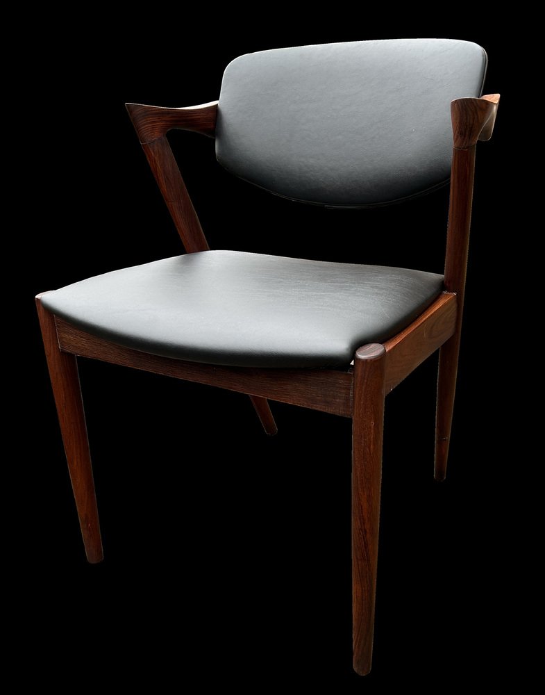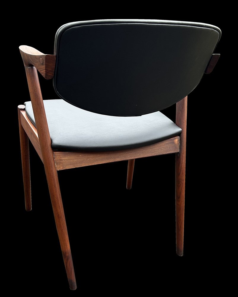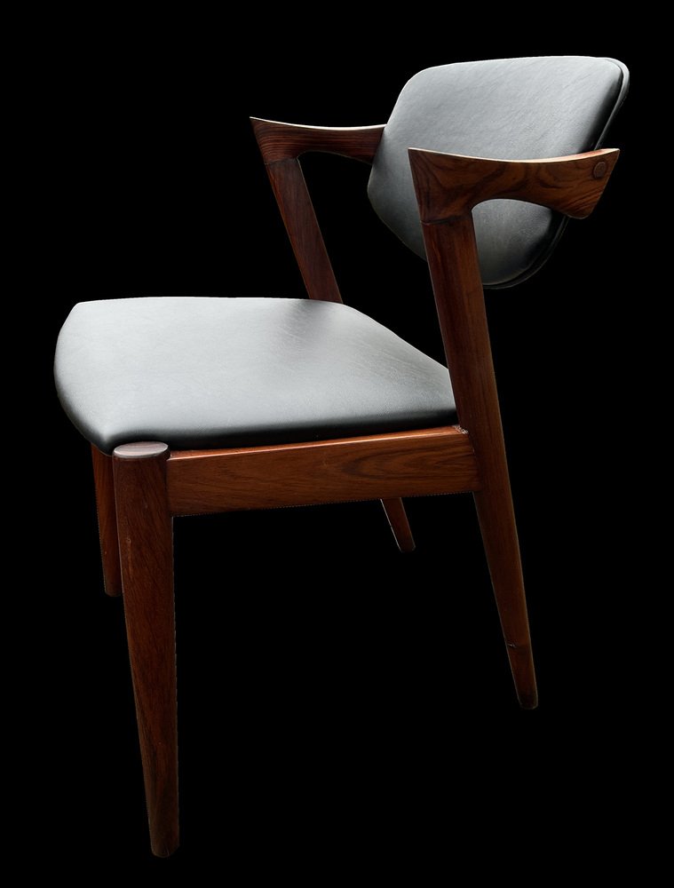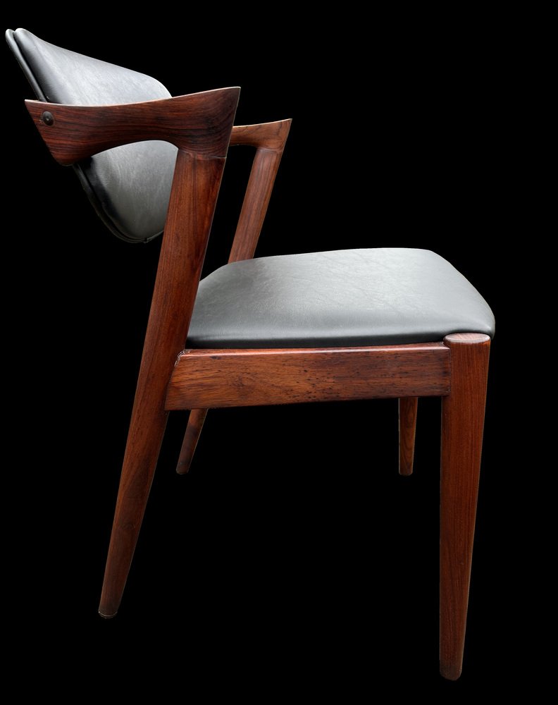In true Danish modern fashion, Kristiansen favored well-joined teak and rosewood, evident equally in his chairs, desks, sideboards, and wall units. In 1956, he designed his most celebrated work, the No. 42 Chair for Schou Andersen. The organically curved back and pivoted armrests form a chair that is as beautiful as it is comfortable. The No. 42 was well-received by critics and enjoyed continued success as one of the most enduring Danish designs of the 20th century.