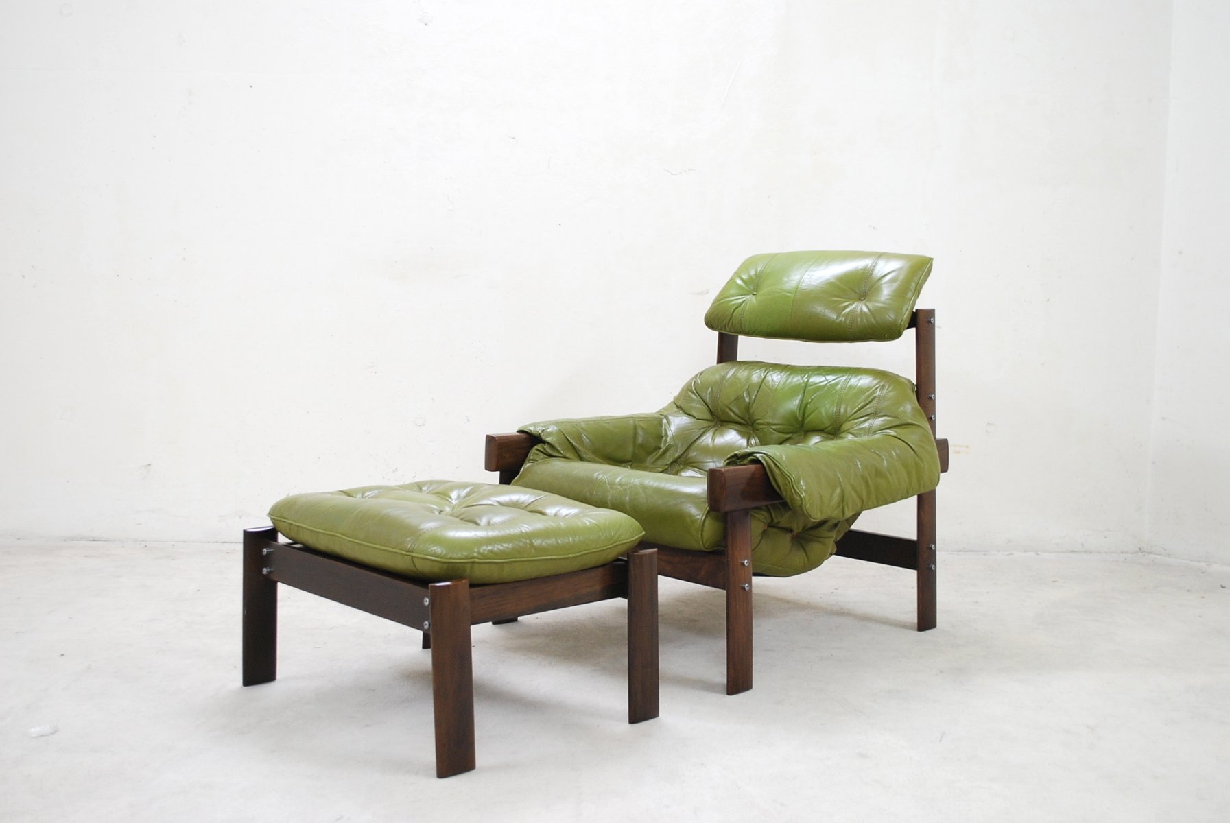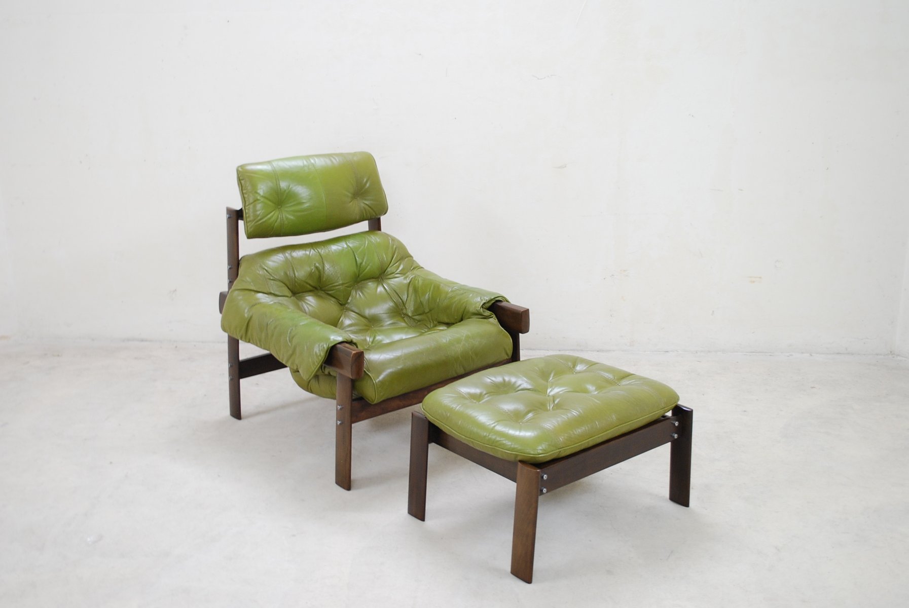 Model MP 041 Lime Green Leather Lounge Chair & Ottoman from Percival Lafer, 1961