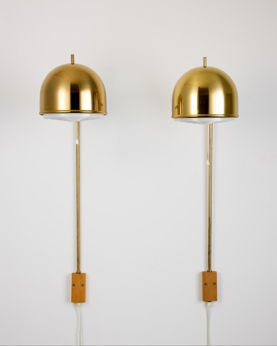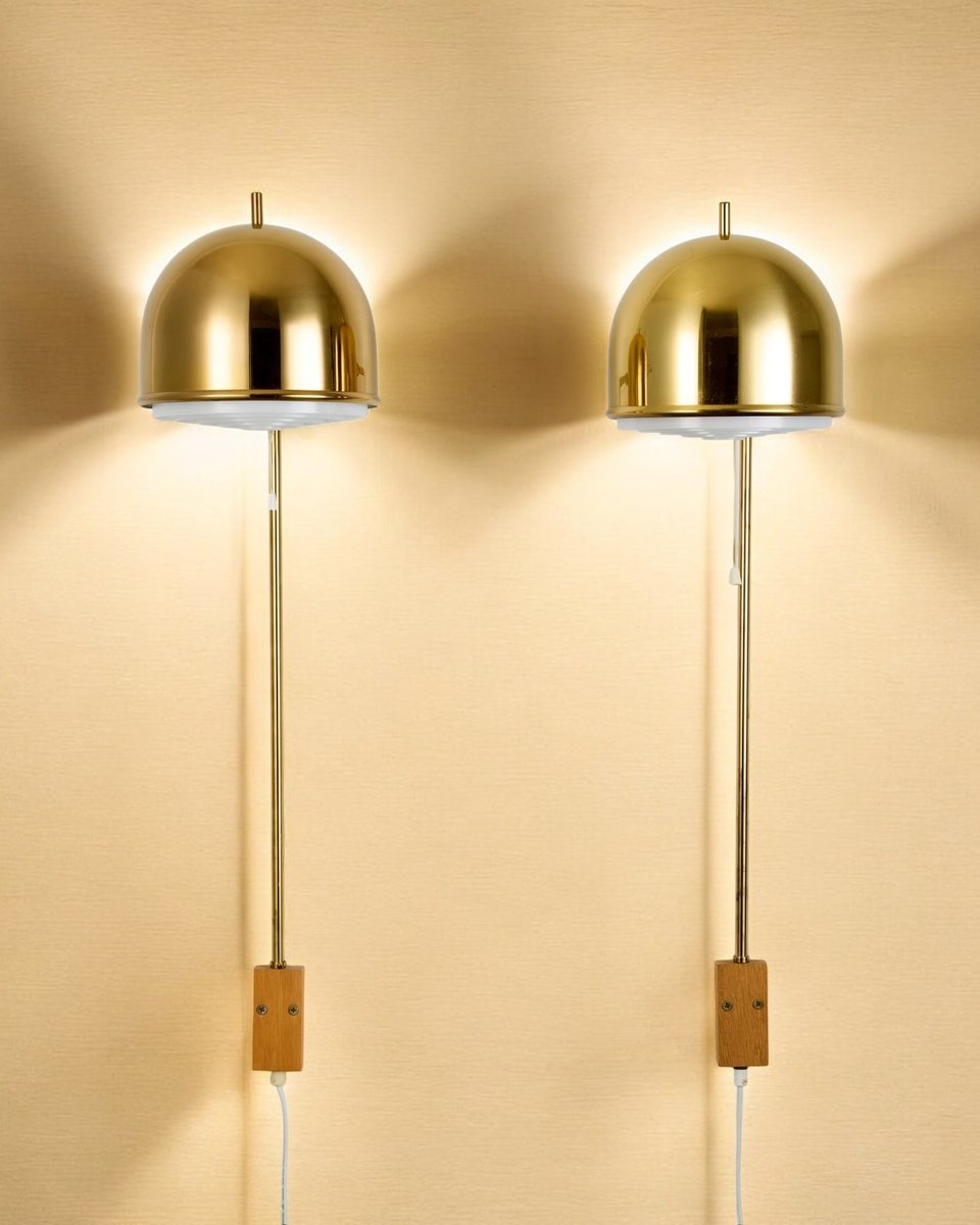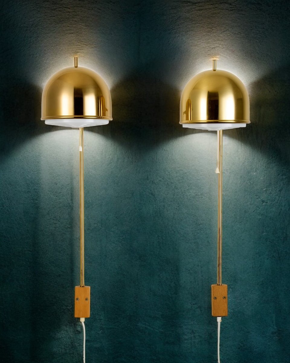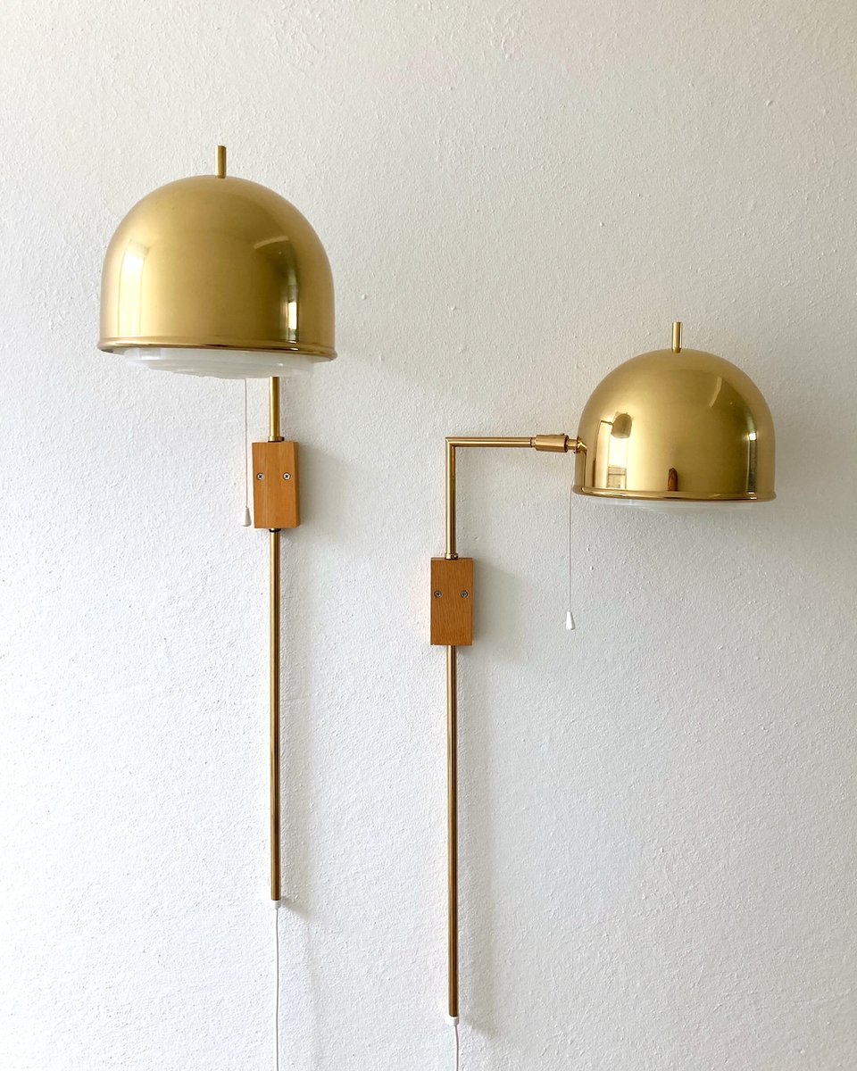 Model V-75 Wall Lamps in Brass by Eje Ahlgren for Bergboms, 1960s, Set of 2