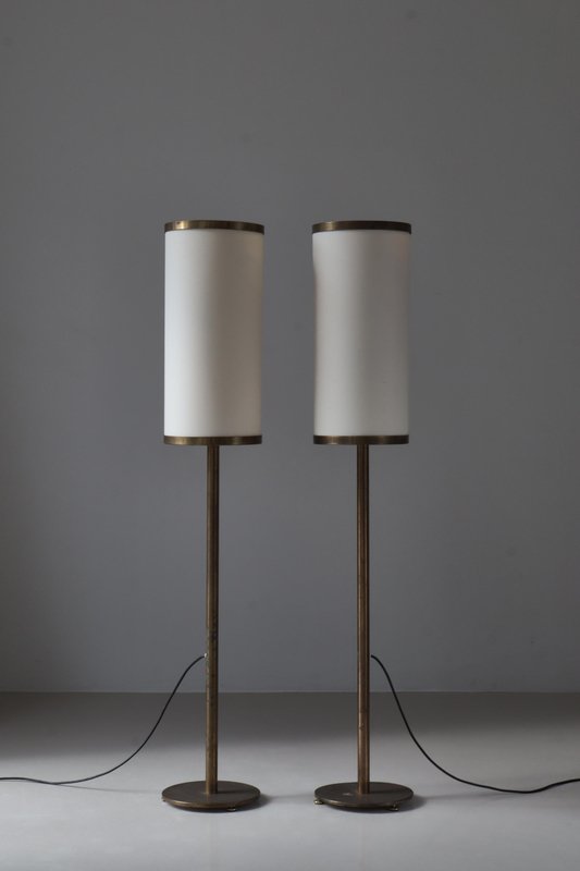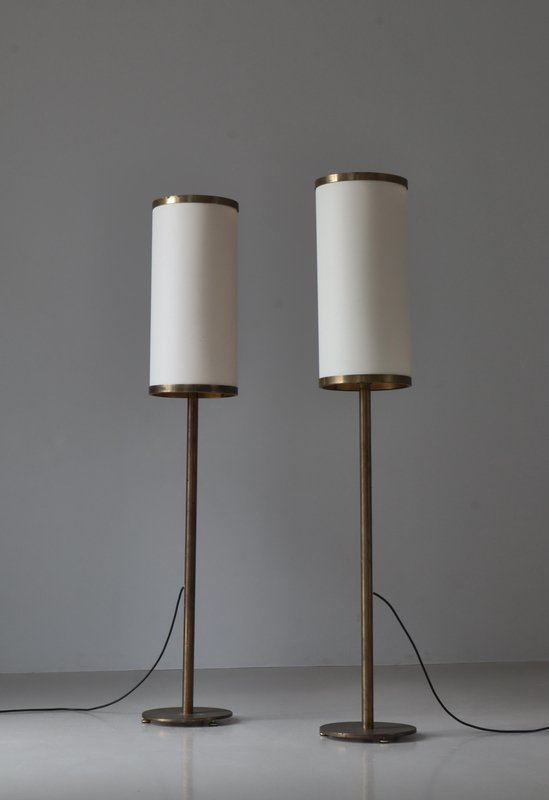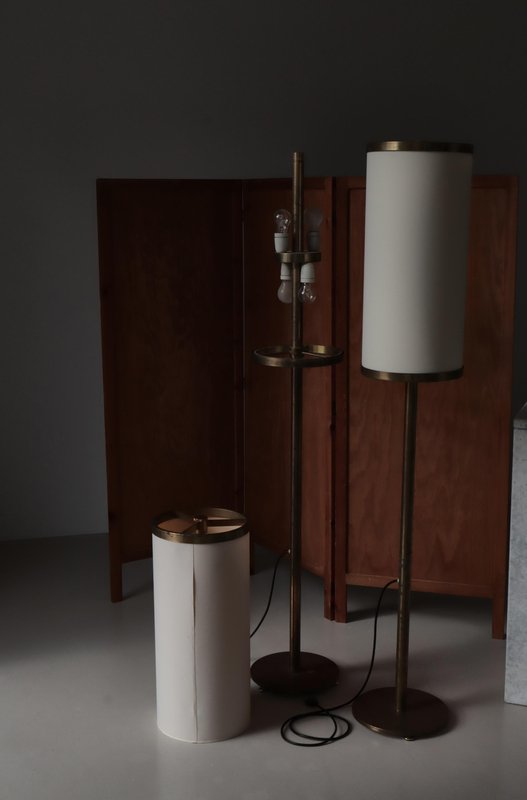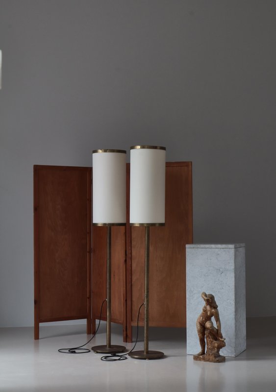 Modern Danish Large Floor Lamps in Patinated Brass by Kay Kørbing, 1960s, Set of 2