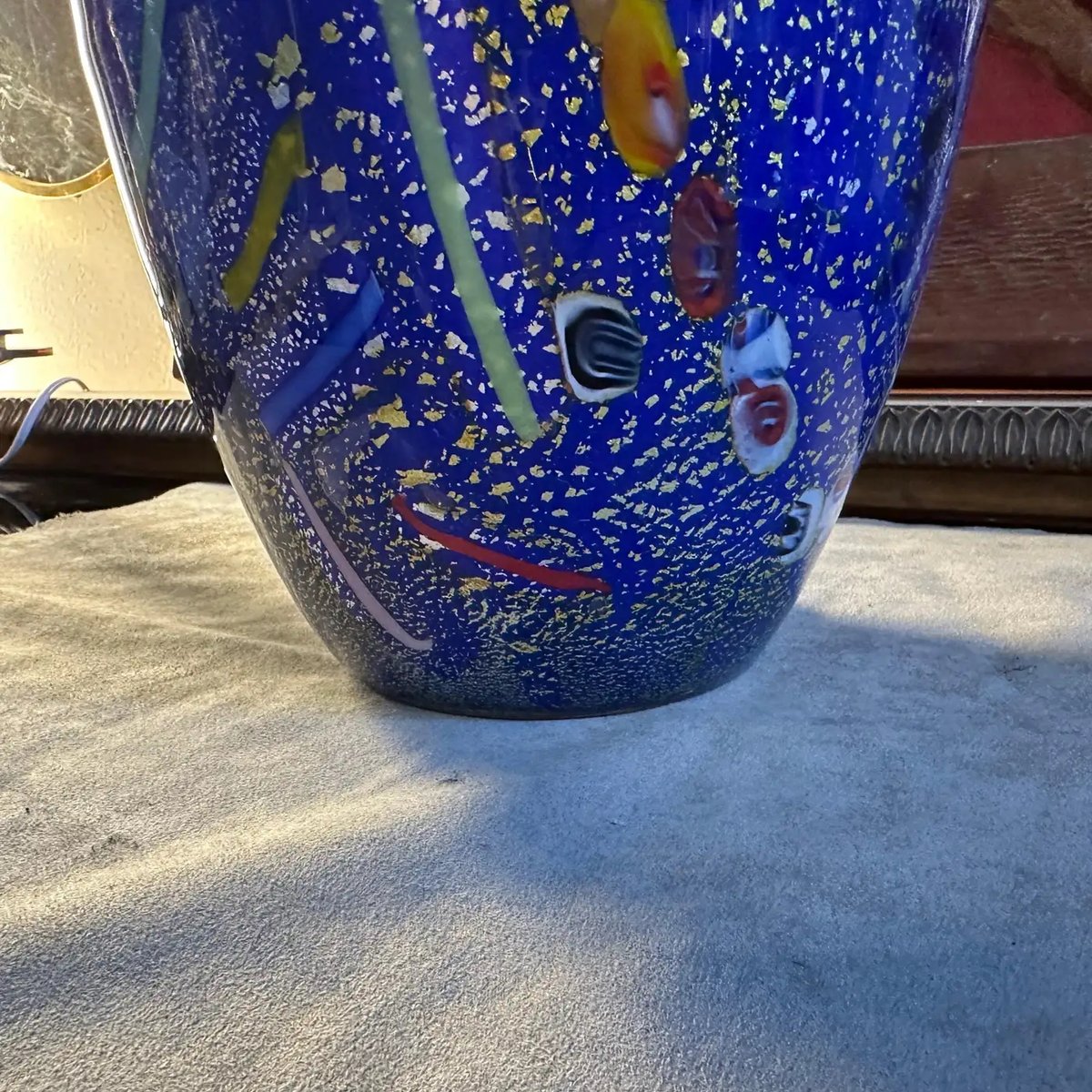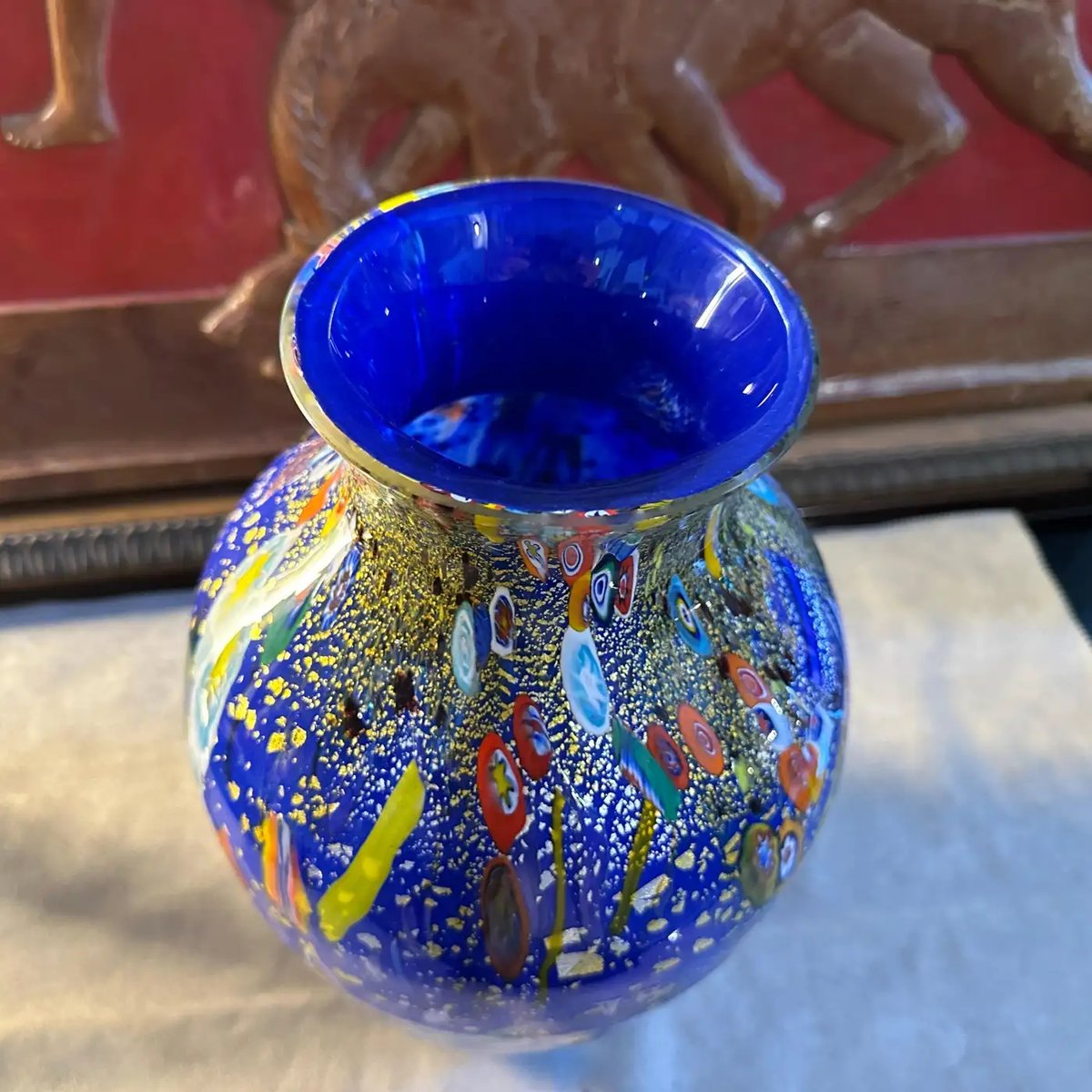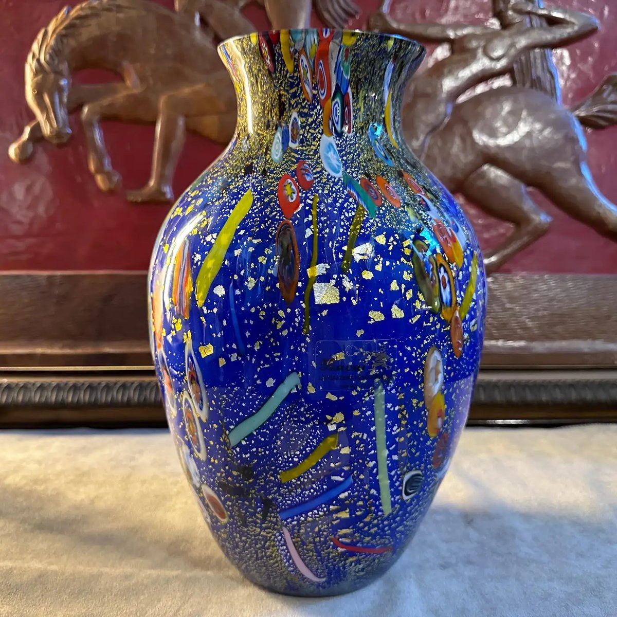 Modernist Blue Murano Glass with Murrine Inserts Vase in the style of Dino Martens, 1980s