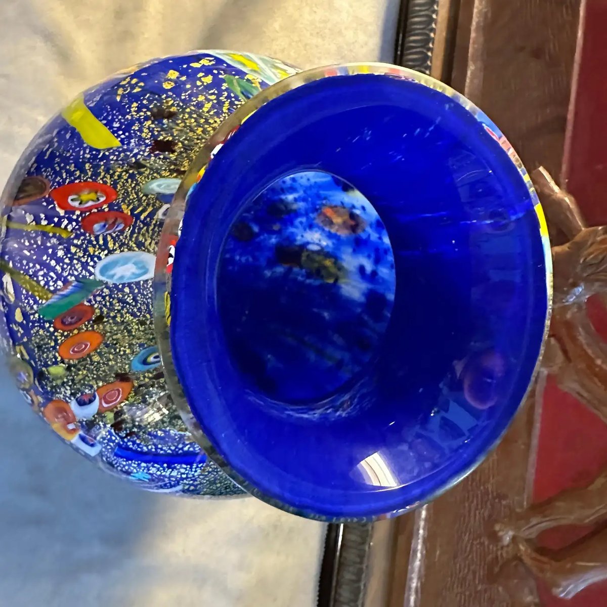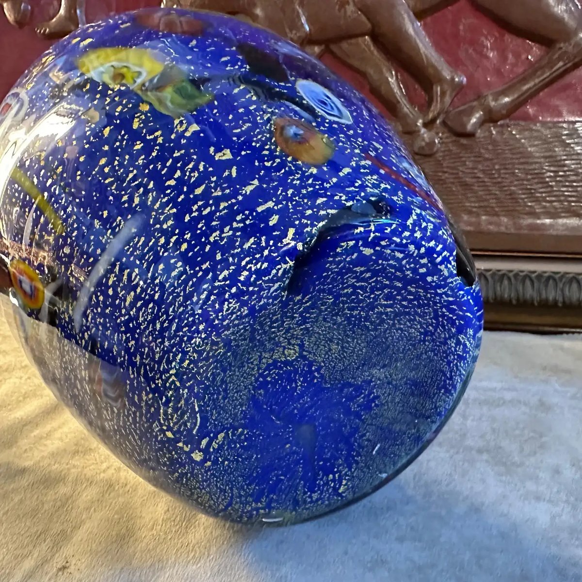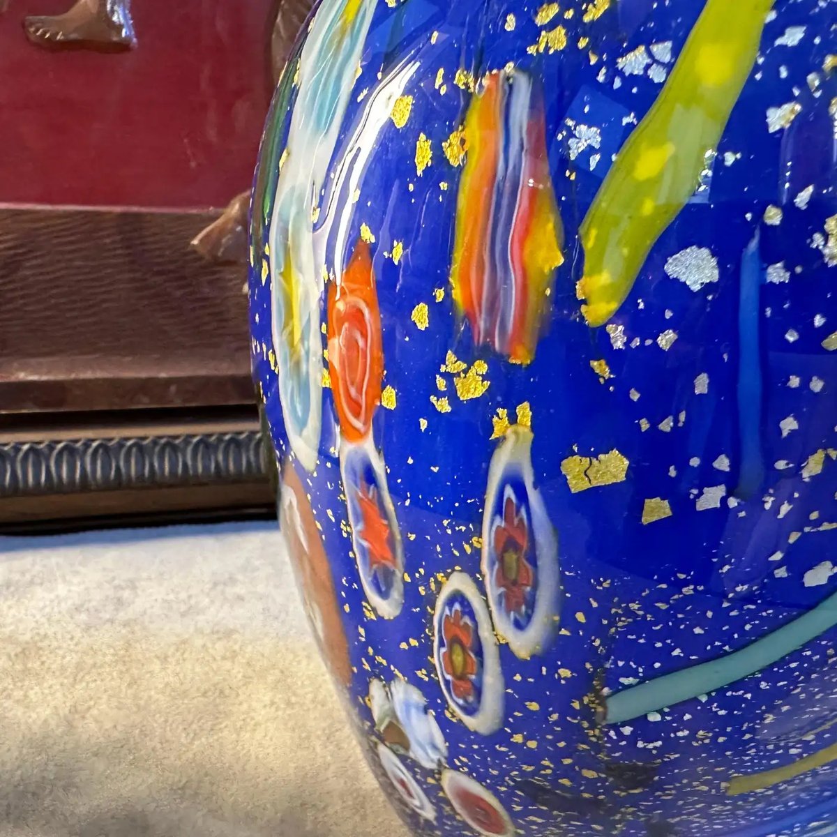 Modernist Blue Murano Glass with Murrine Inserts Vase in the style of Dino Martens, 1980s