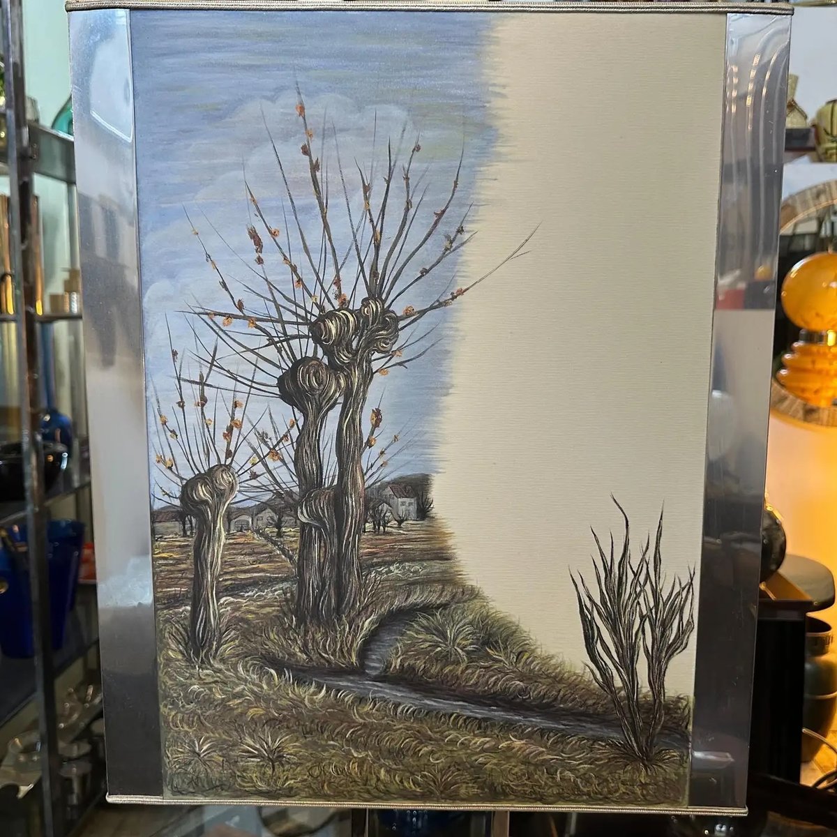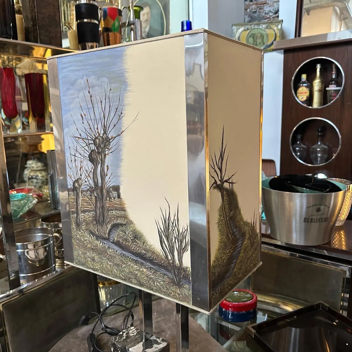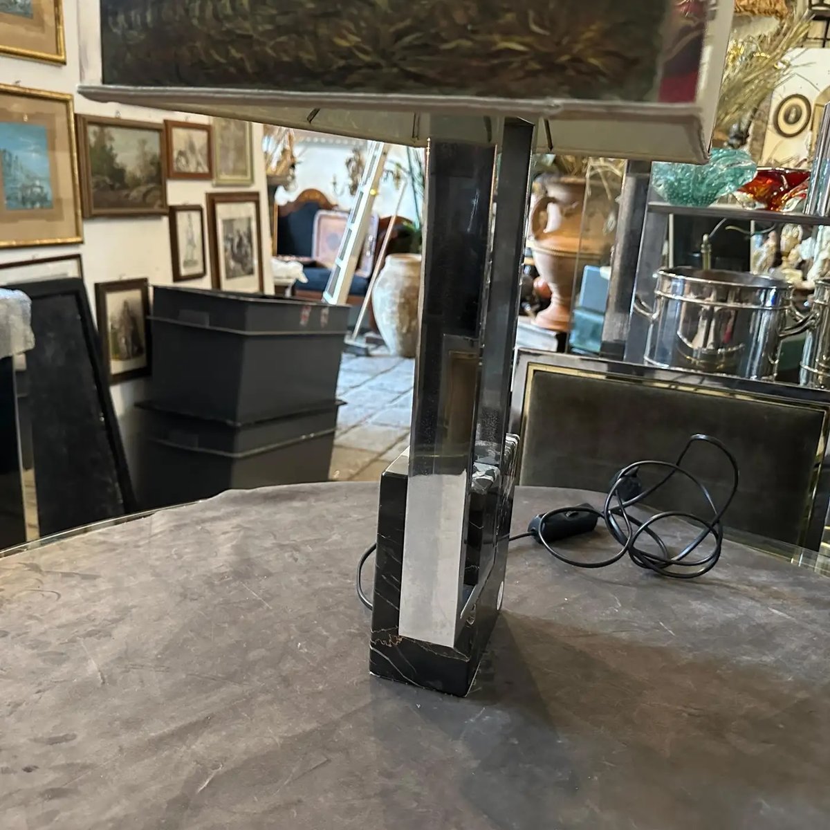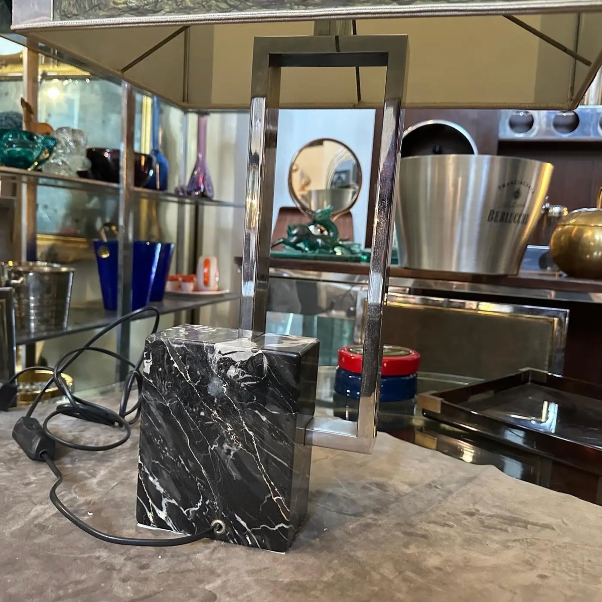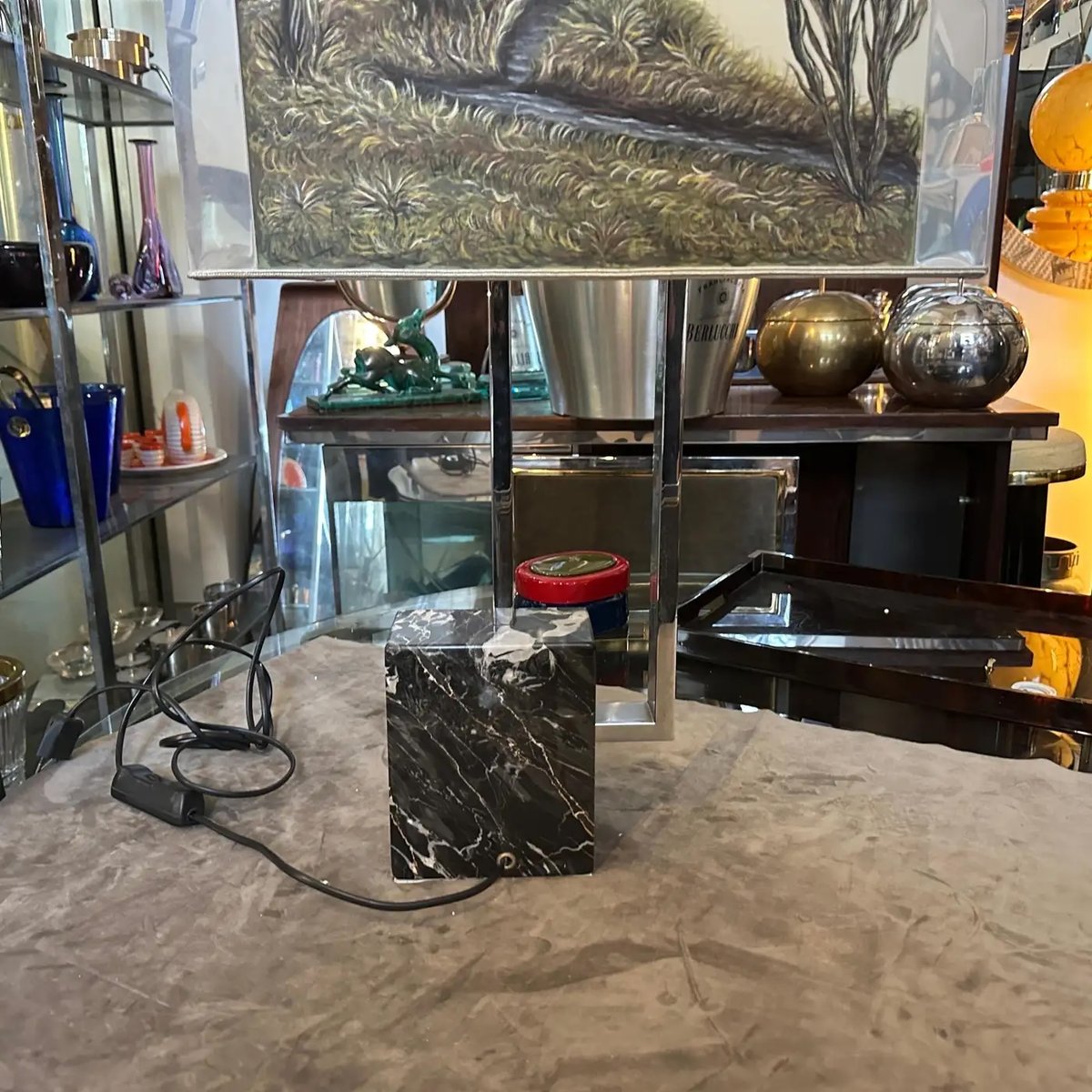 Modernist Chromed Metal and Marble Table Lamp with Hand Painted Lampshade from Banci Firenze, 1970s